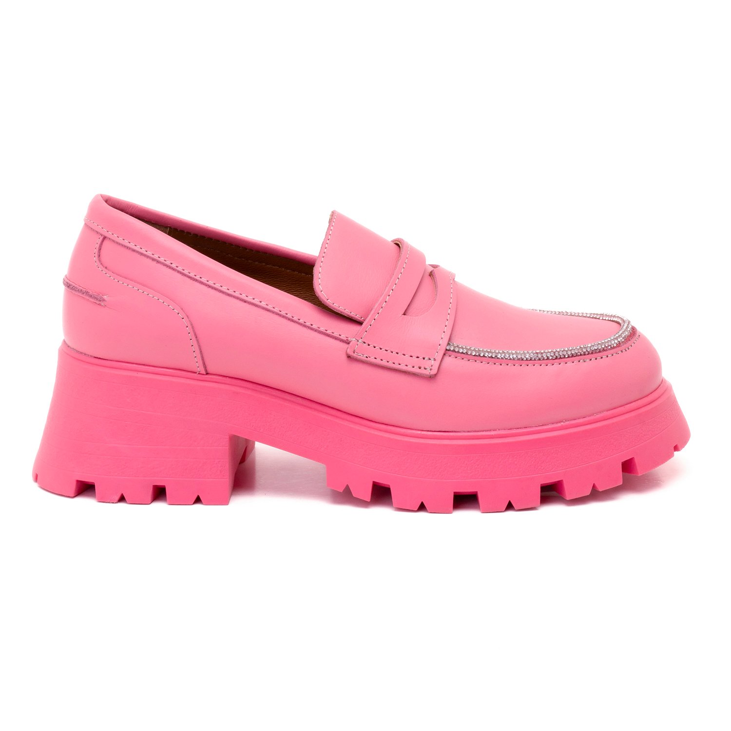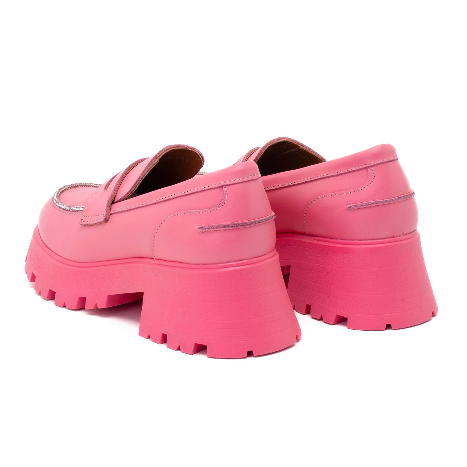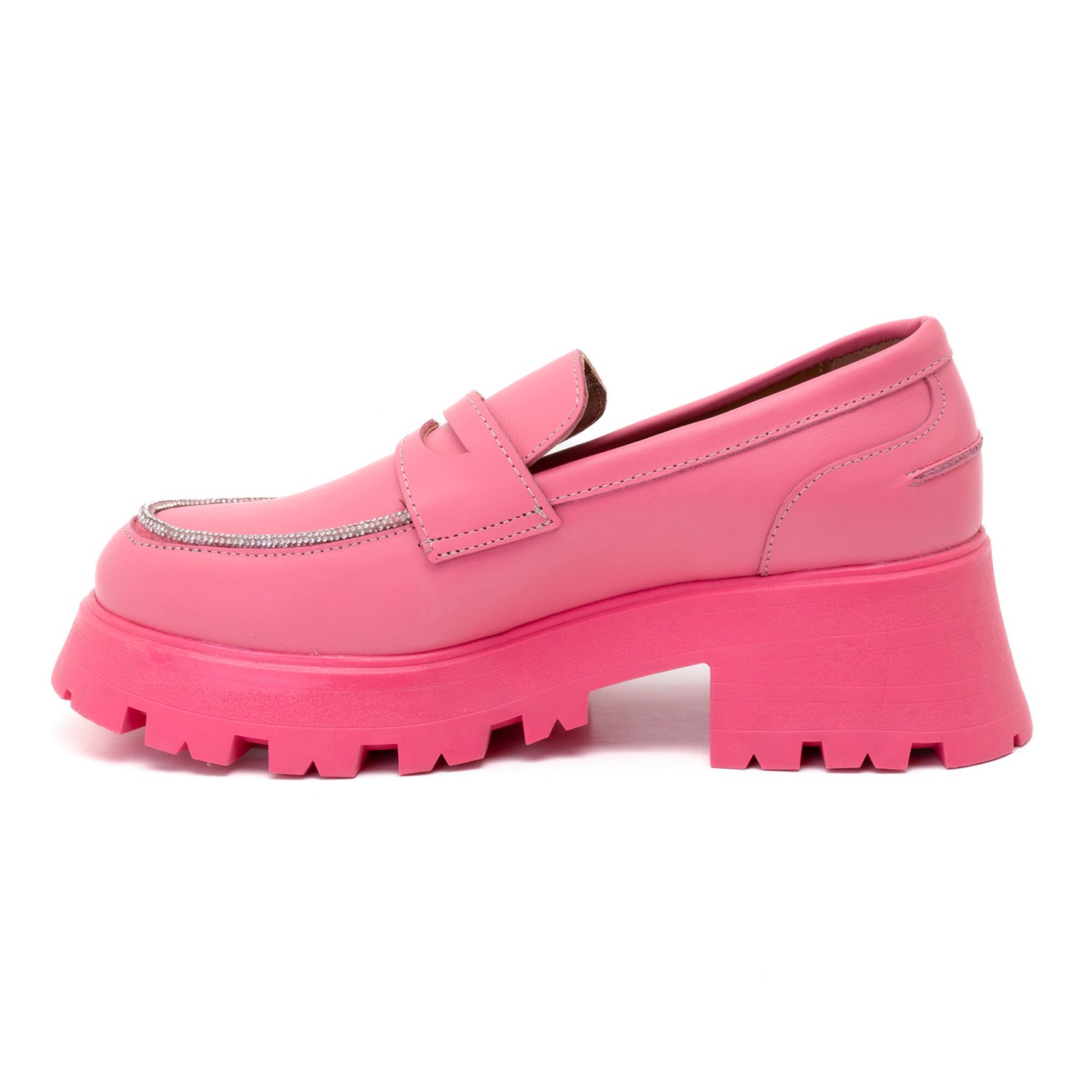 Kadın Pembe Taşlı Deri Loafer