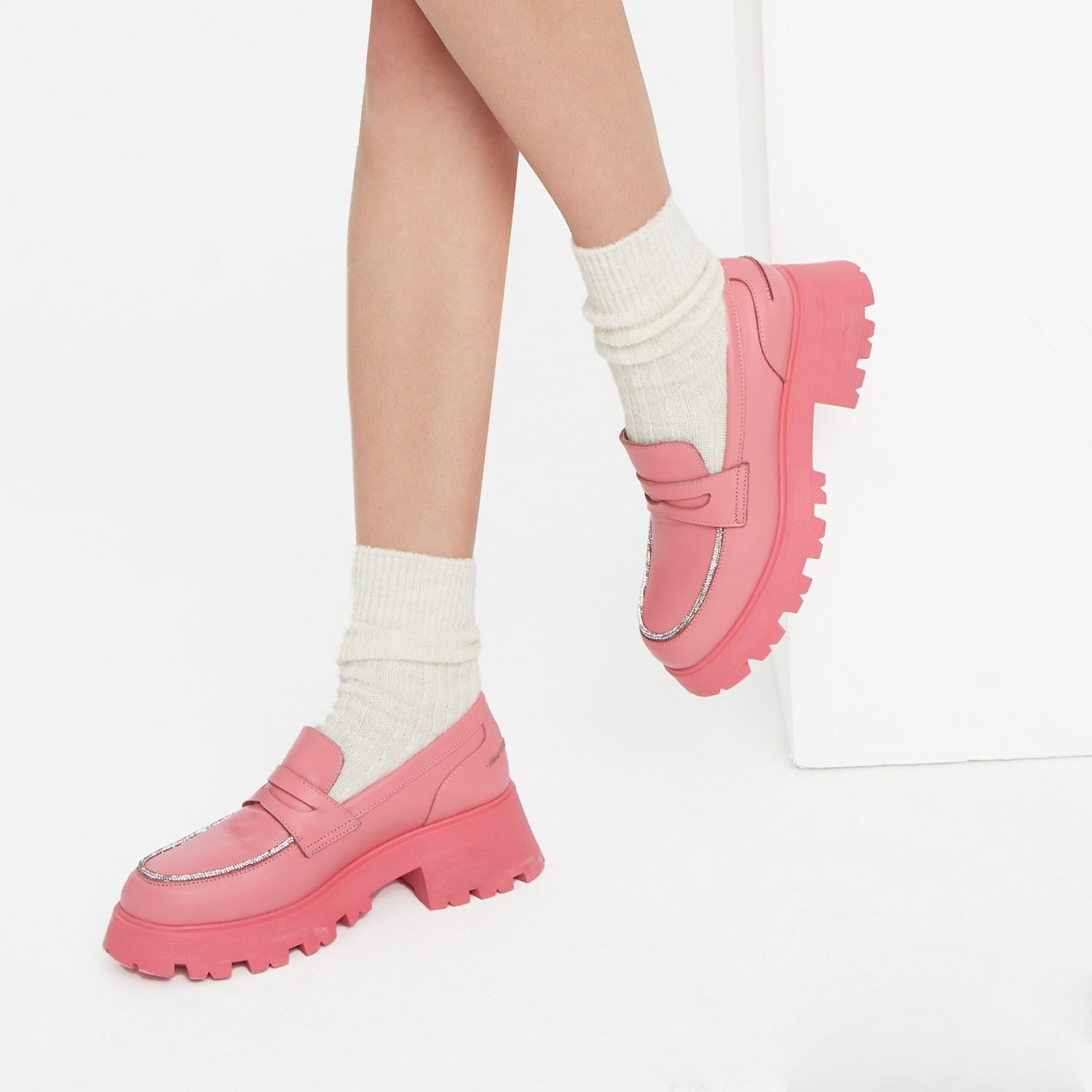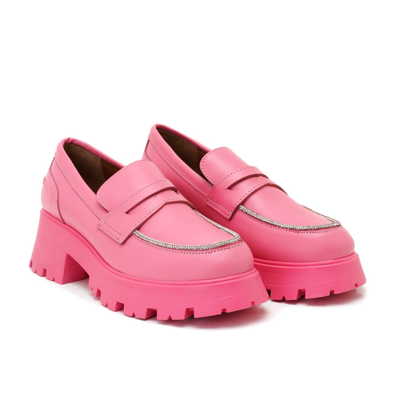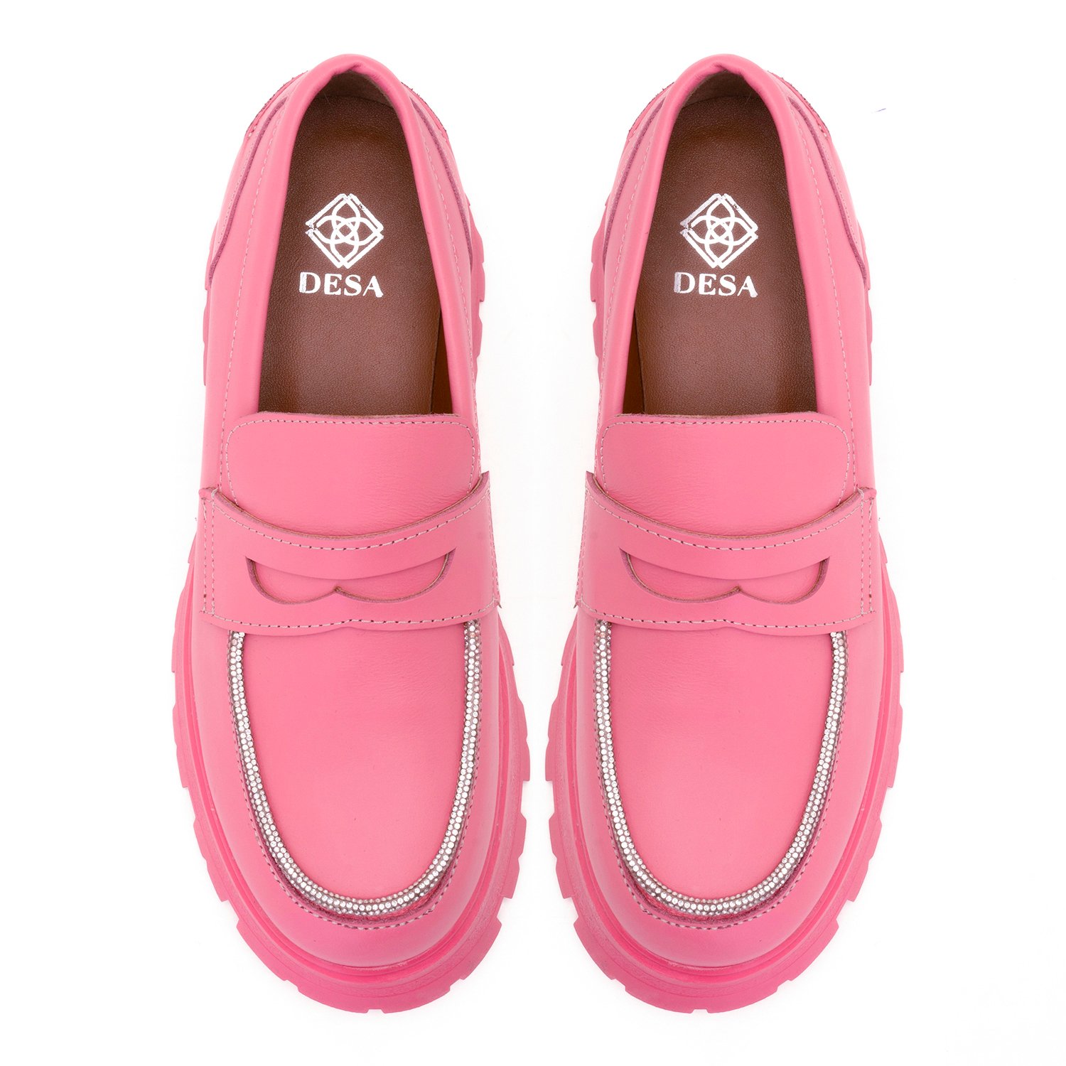 Kadın Pembe Taşlı Deri Loafer