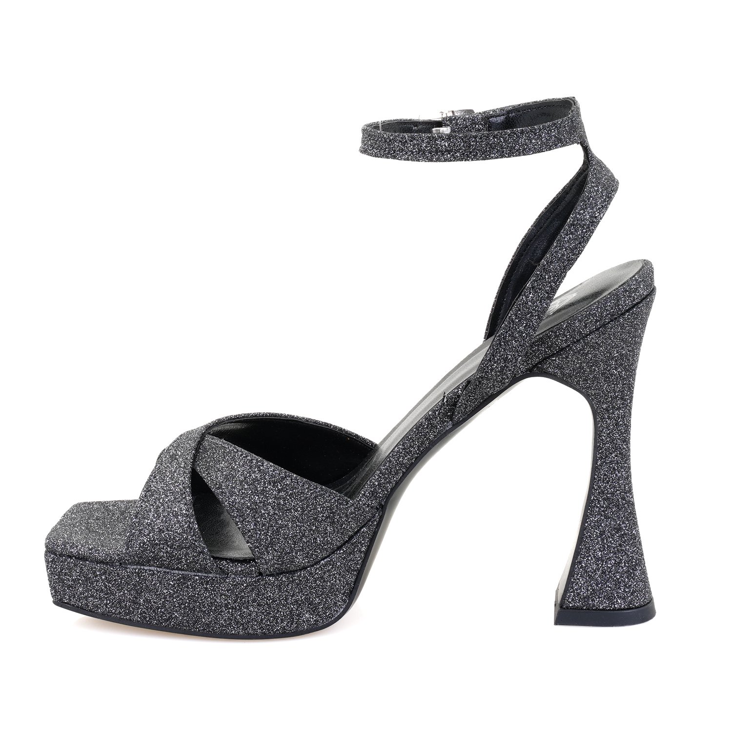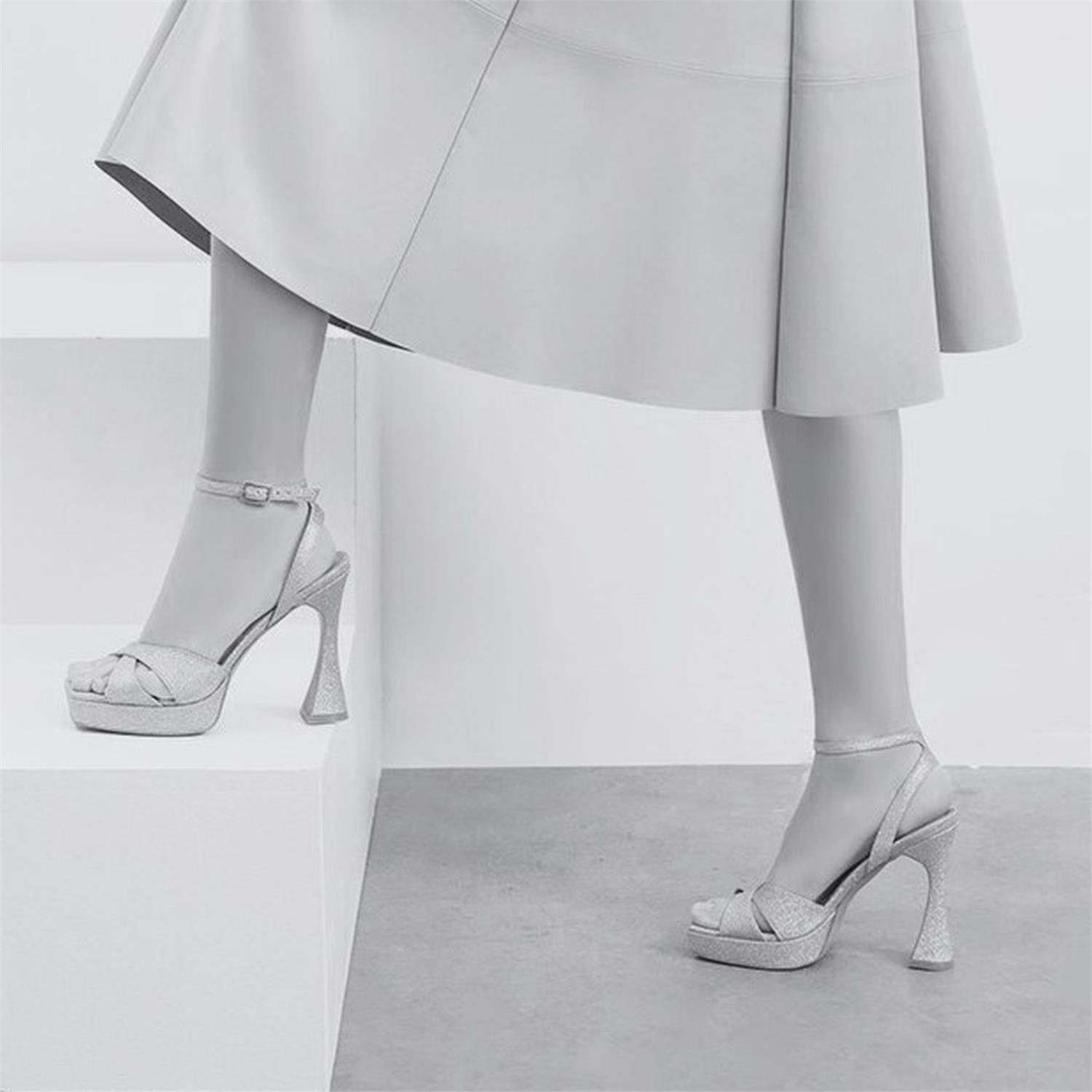 Kadın Platin Platform Topuklu Abiye Sandalet