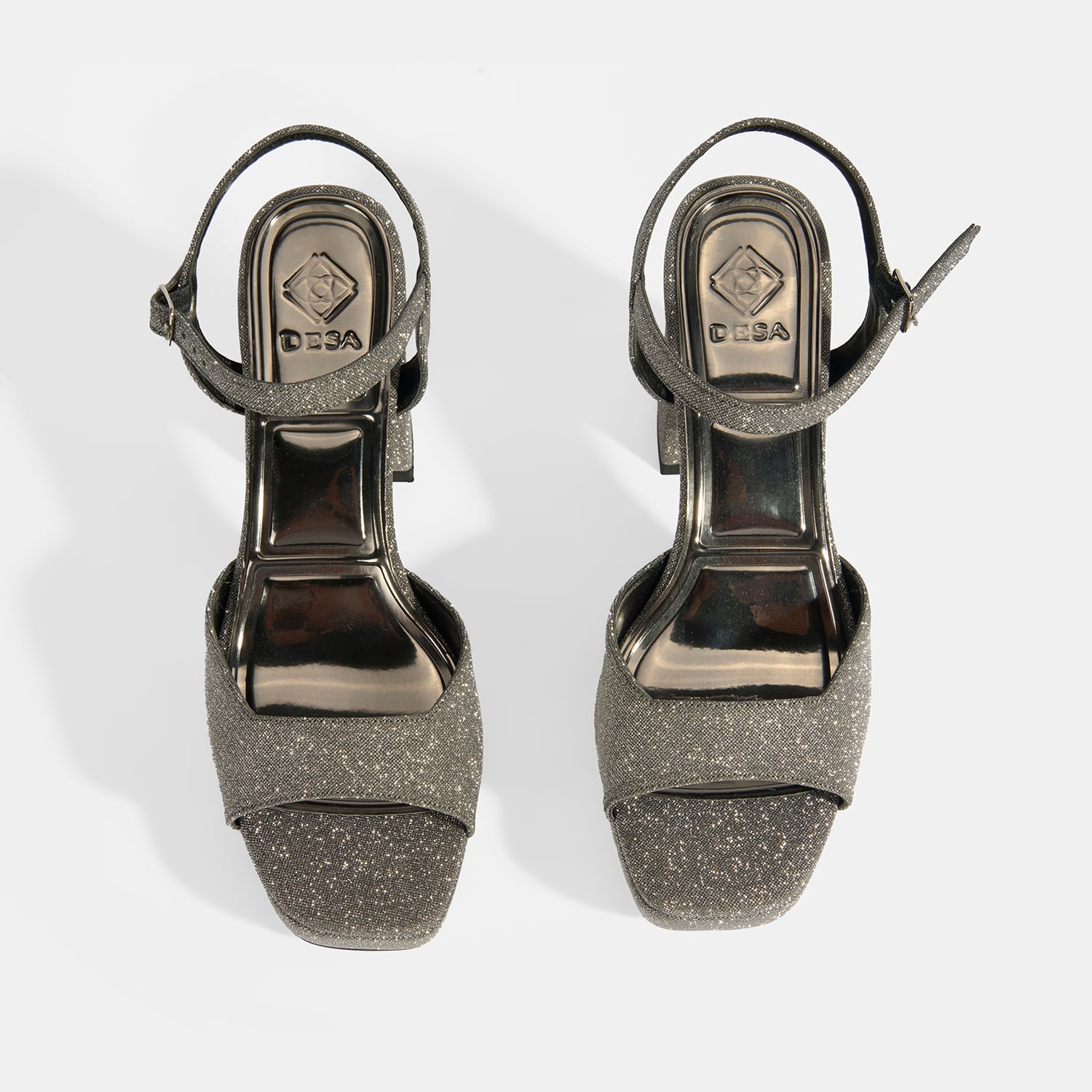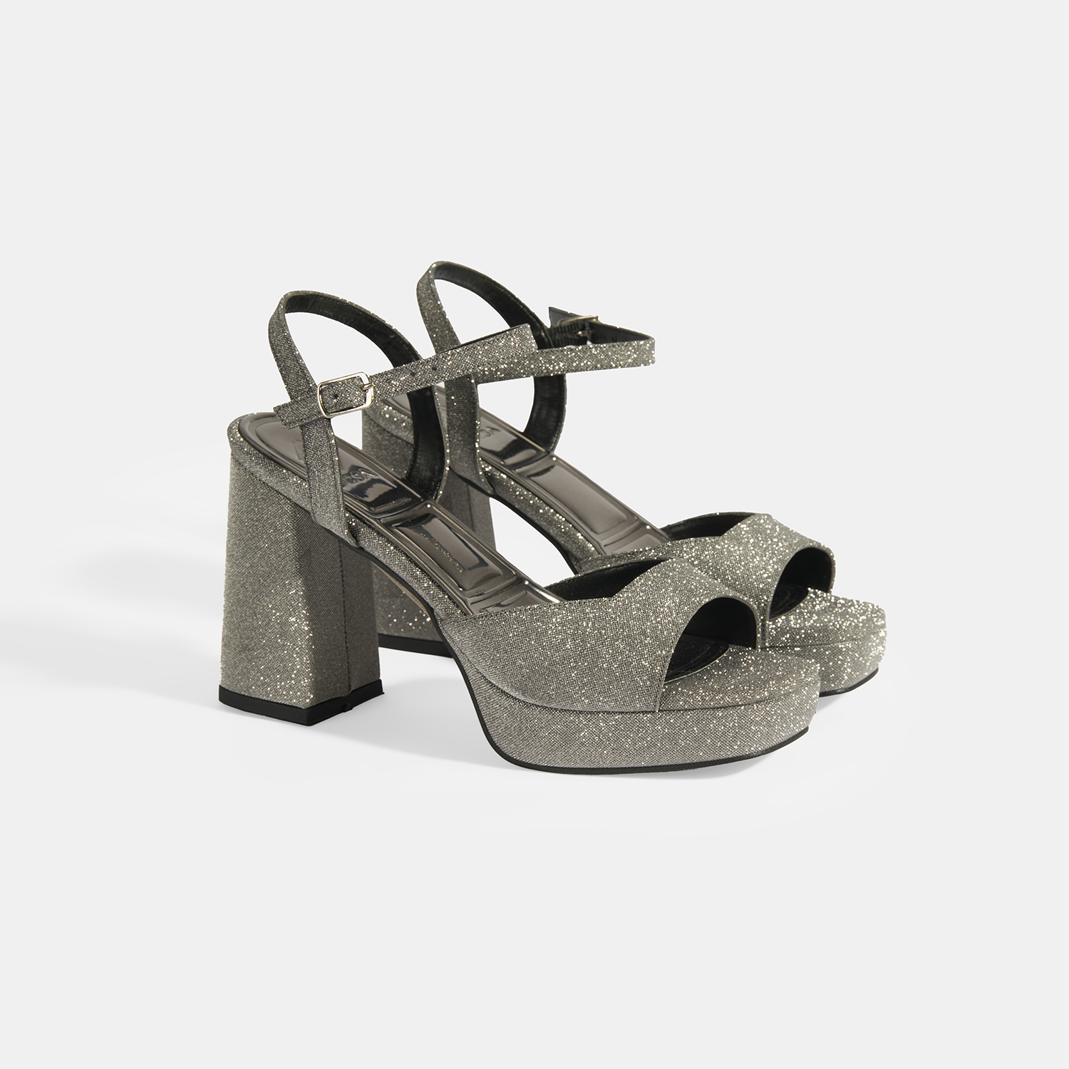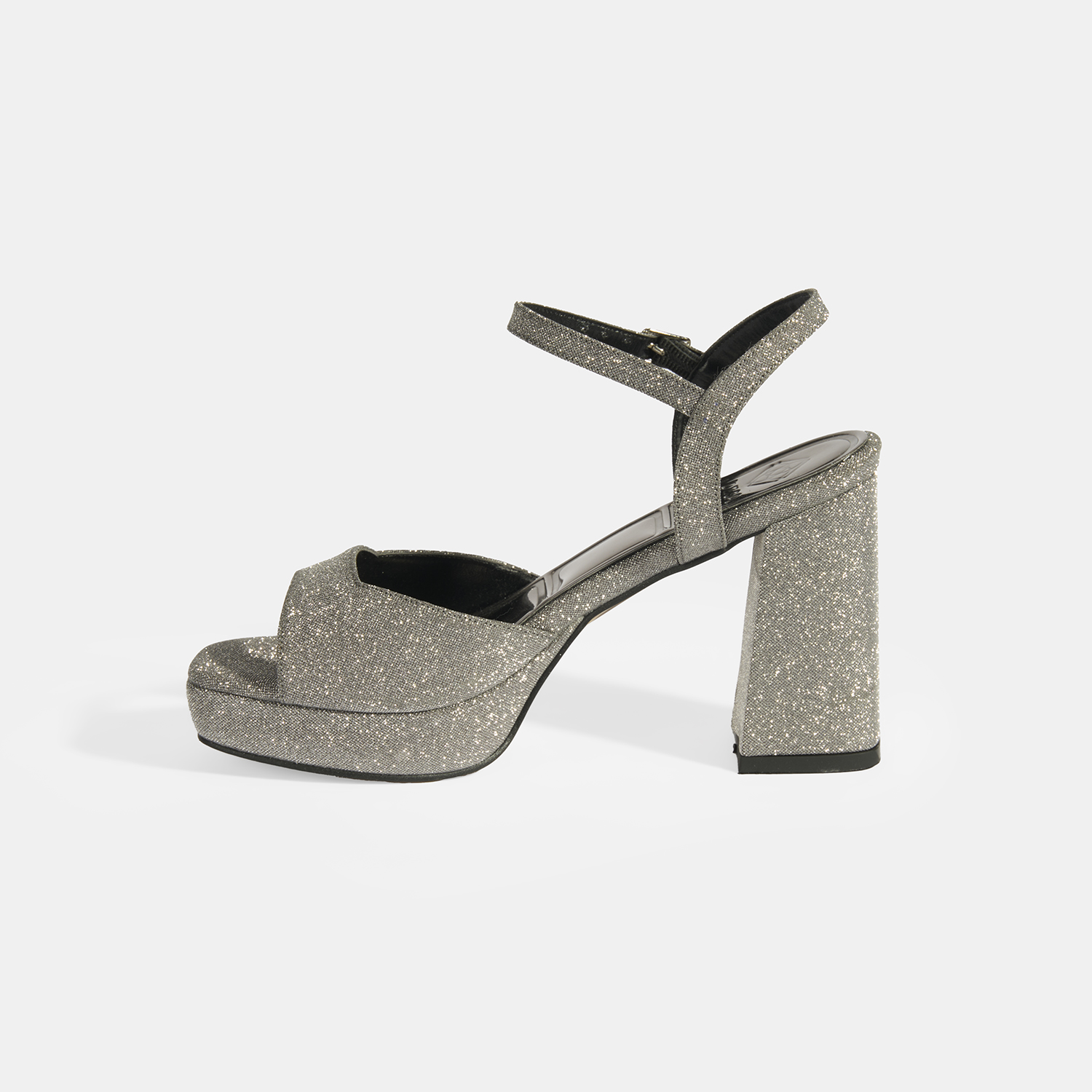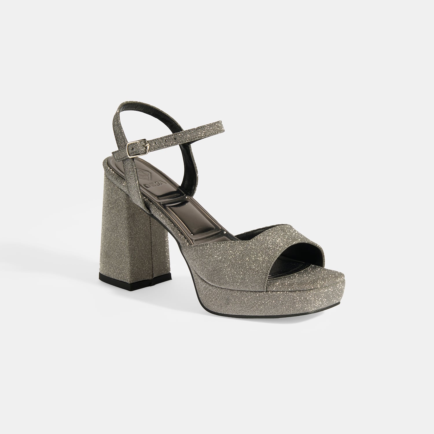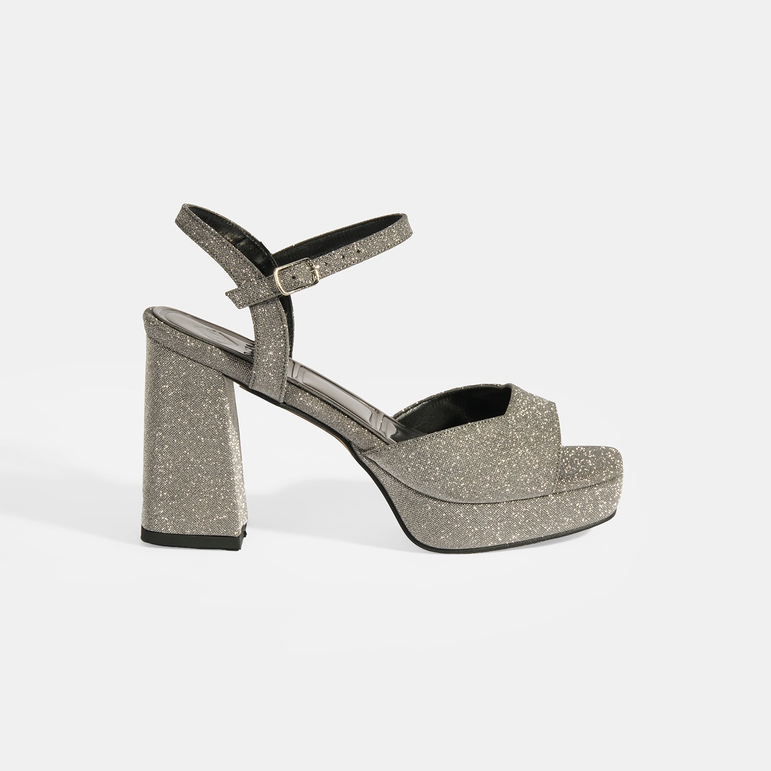 Kadın Platin Toka Detaylı Topuklu Abiye Sandalet