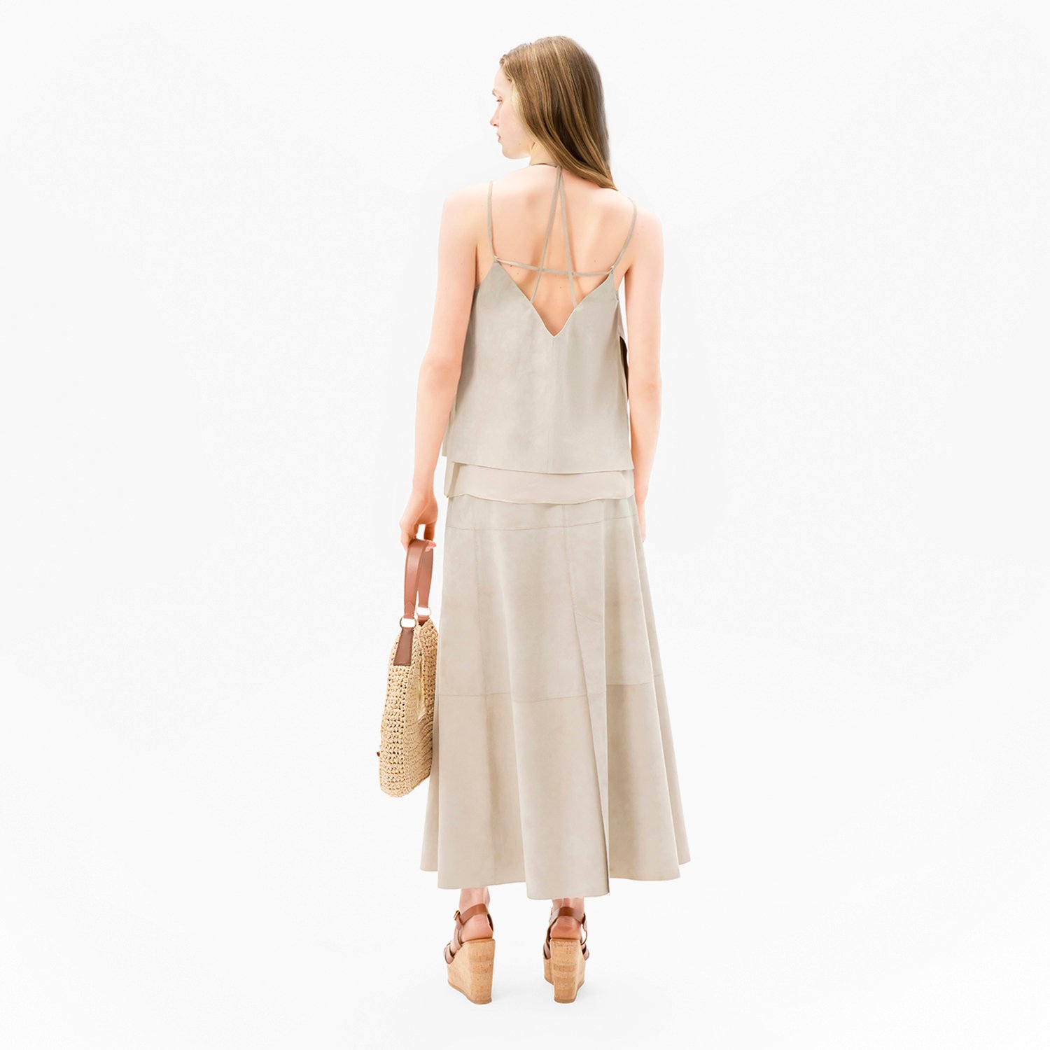 Ürüne ince askı detayları ile hareketlilik katılmıştır.