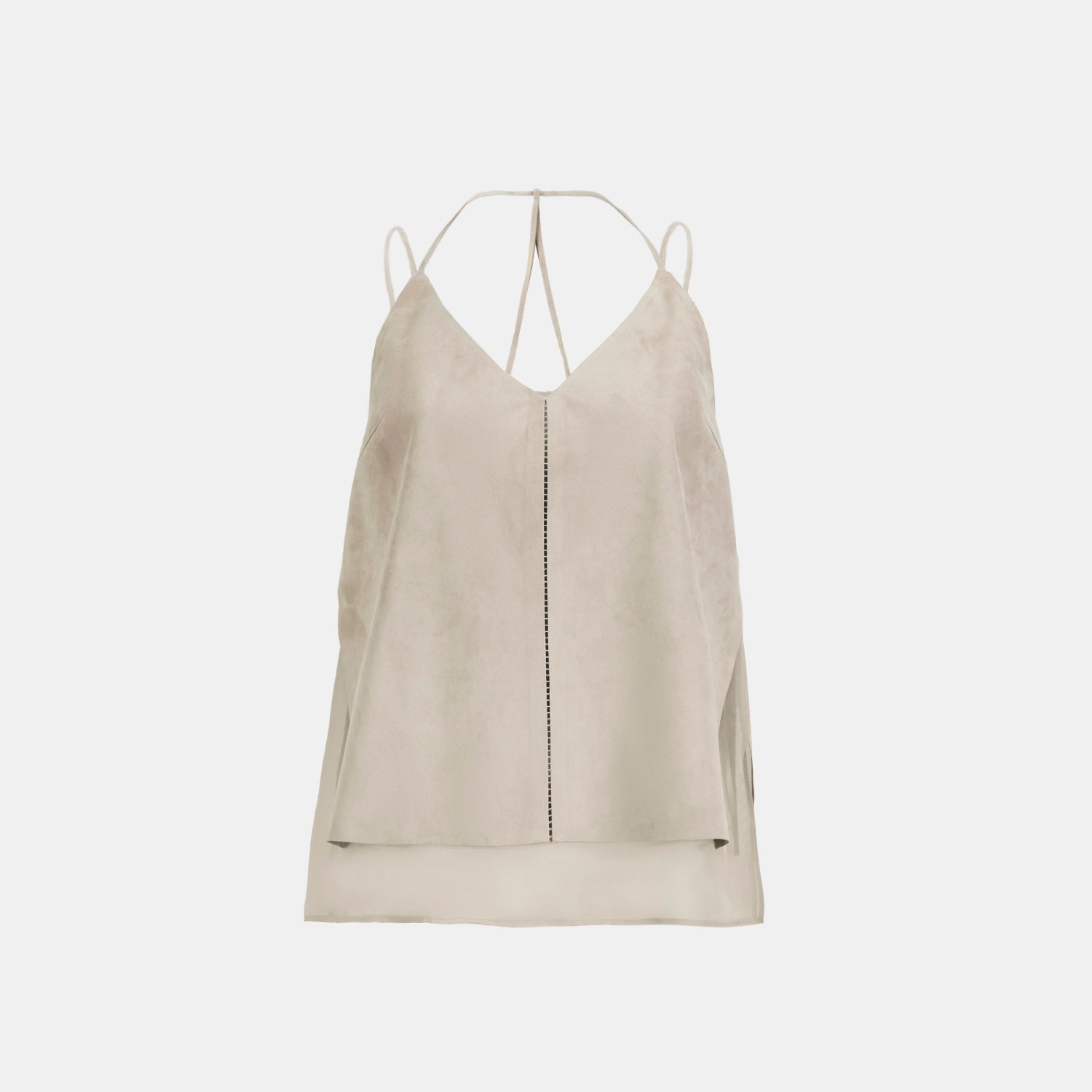 Kadın Pudra Askılı V Yaka Süet Bluz