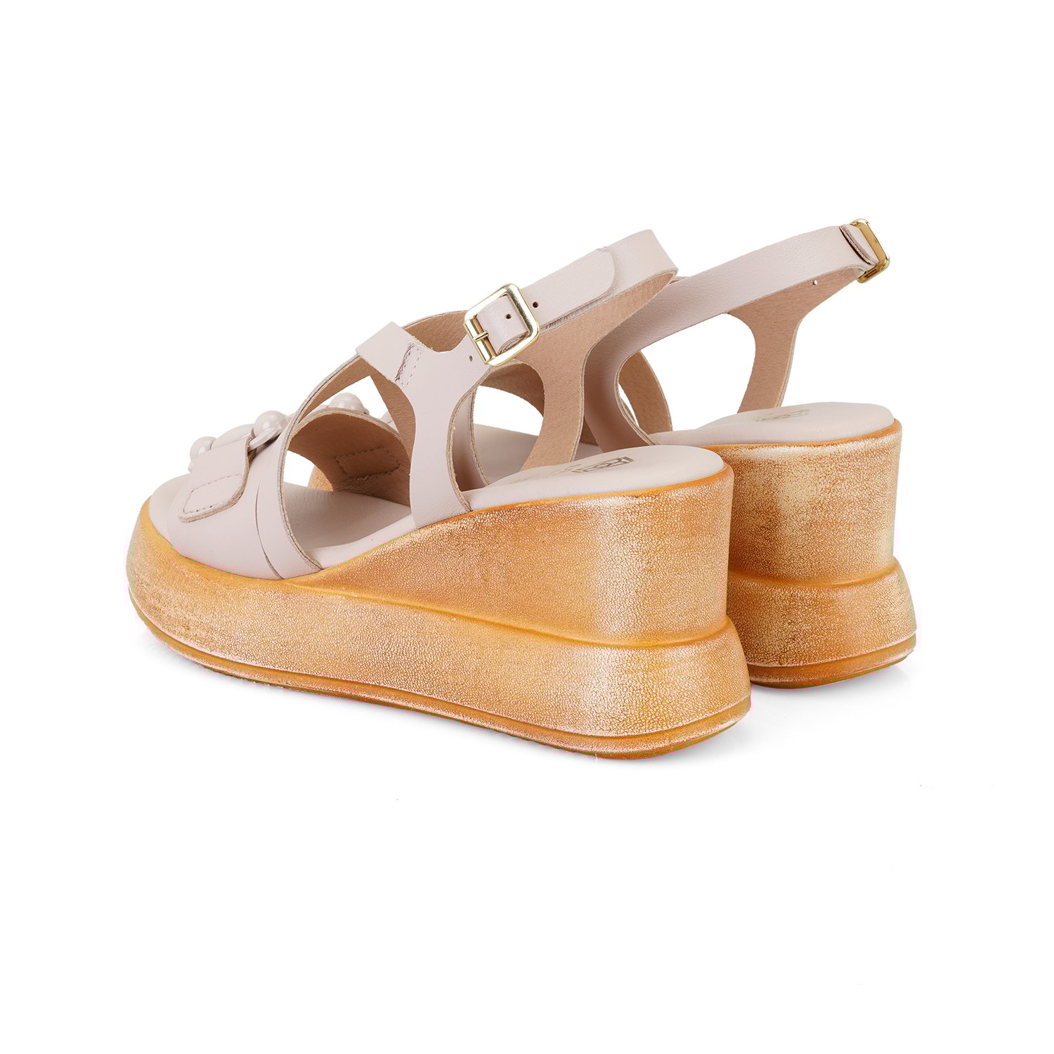 %100 deri, iç astarlı, mostra deri, kadın dolgu topuklu deri sandalet.