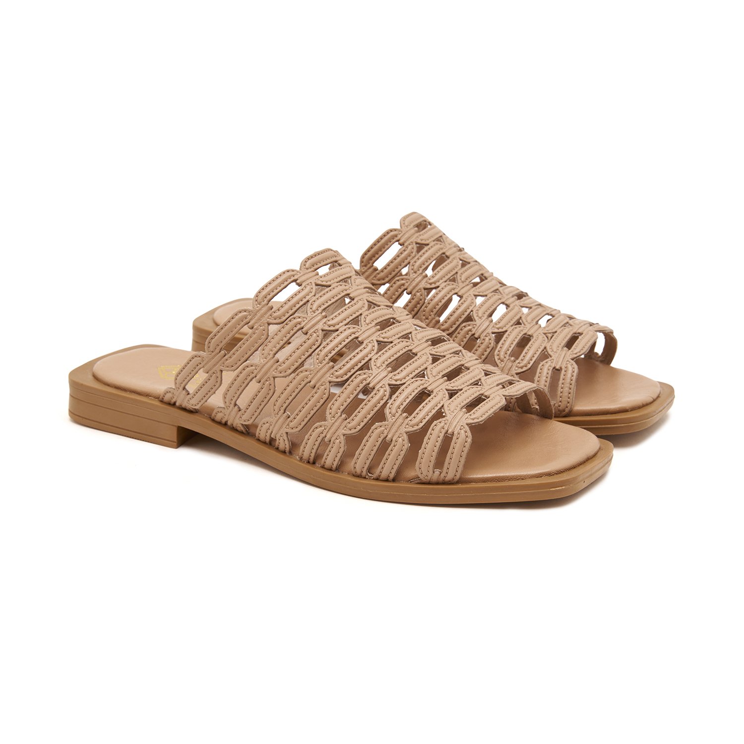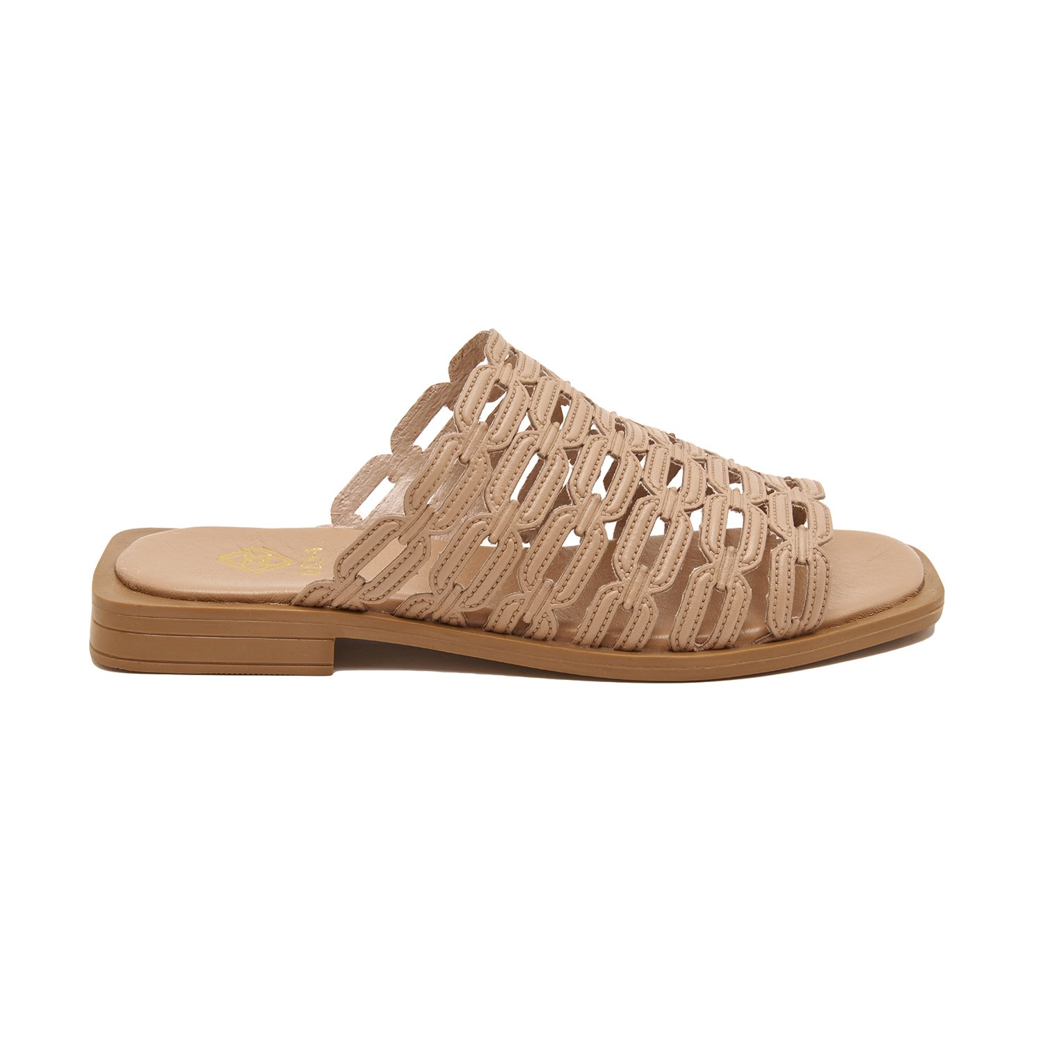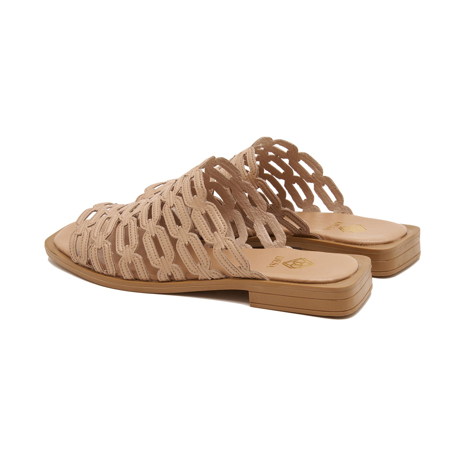 Deri iç tabanlı, dayanıklı termo tabanlı kadın terlik.