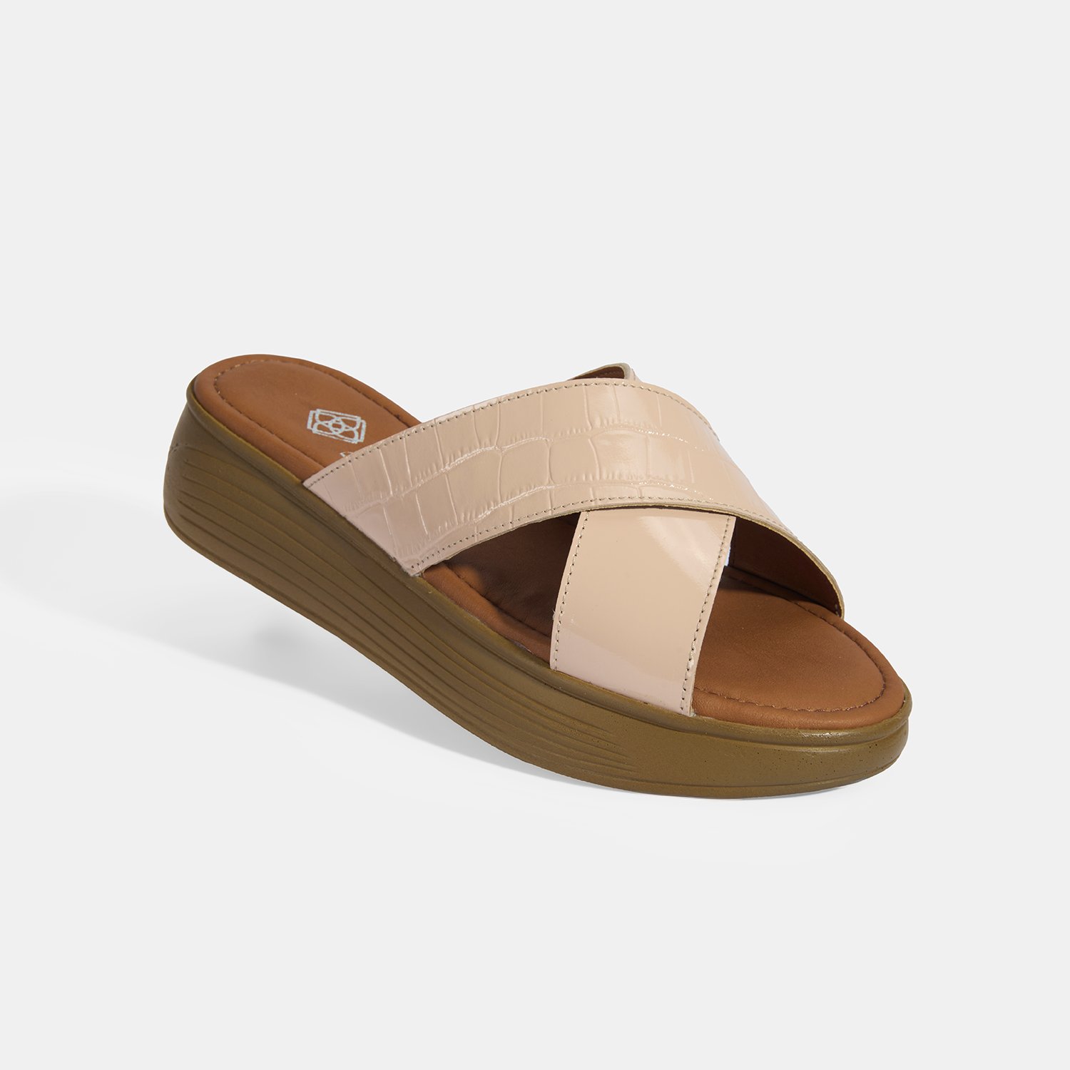 %50 kroko baskılı deri, %50 deri, deri iç tabanlı, deri astarlı, pu tabanlı, kadın terlik.