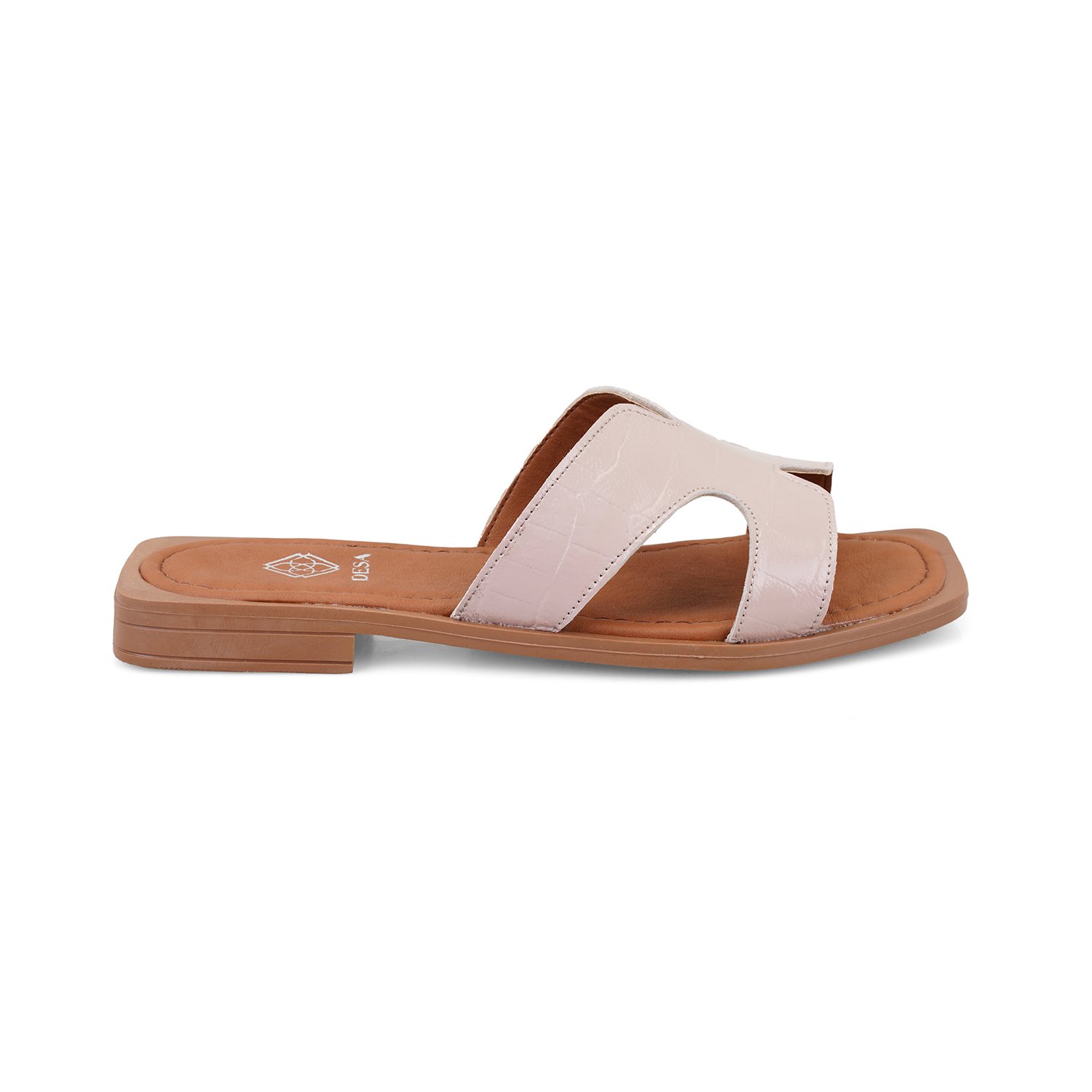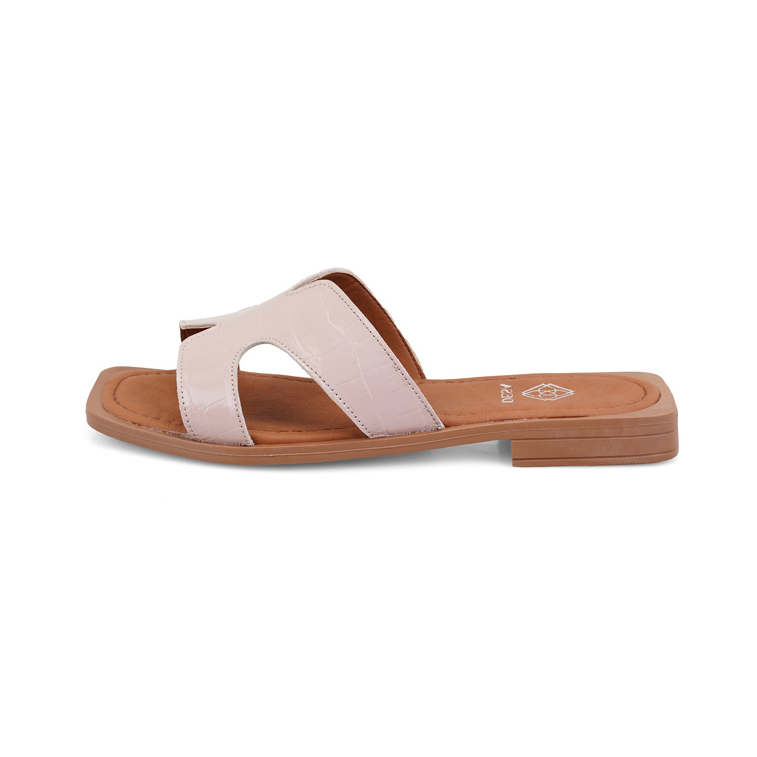 Kadın Pudra Kroko Baskılı Deri Terlik