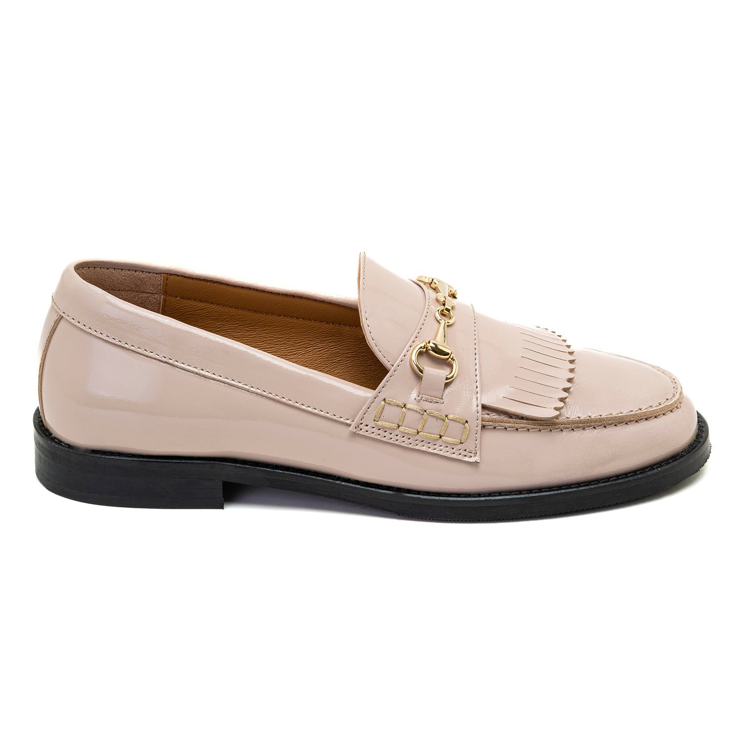 %100 rugan deri, deri iç astarlı, deri iç tabanlı, metal aksesuar detaylı, neolit tabanlı, püsküllü kadın laofer.