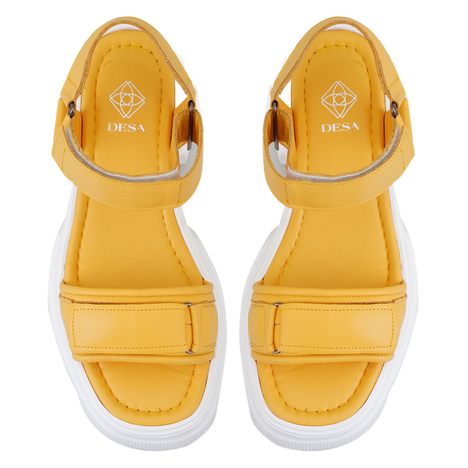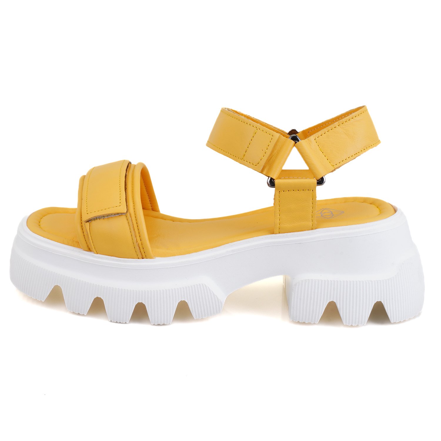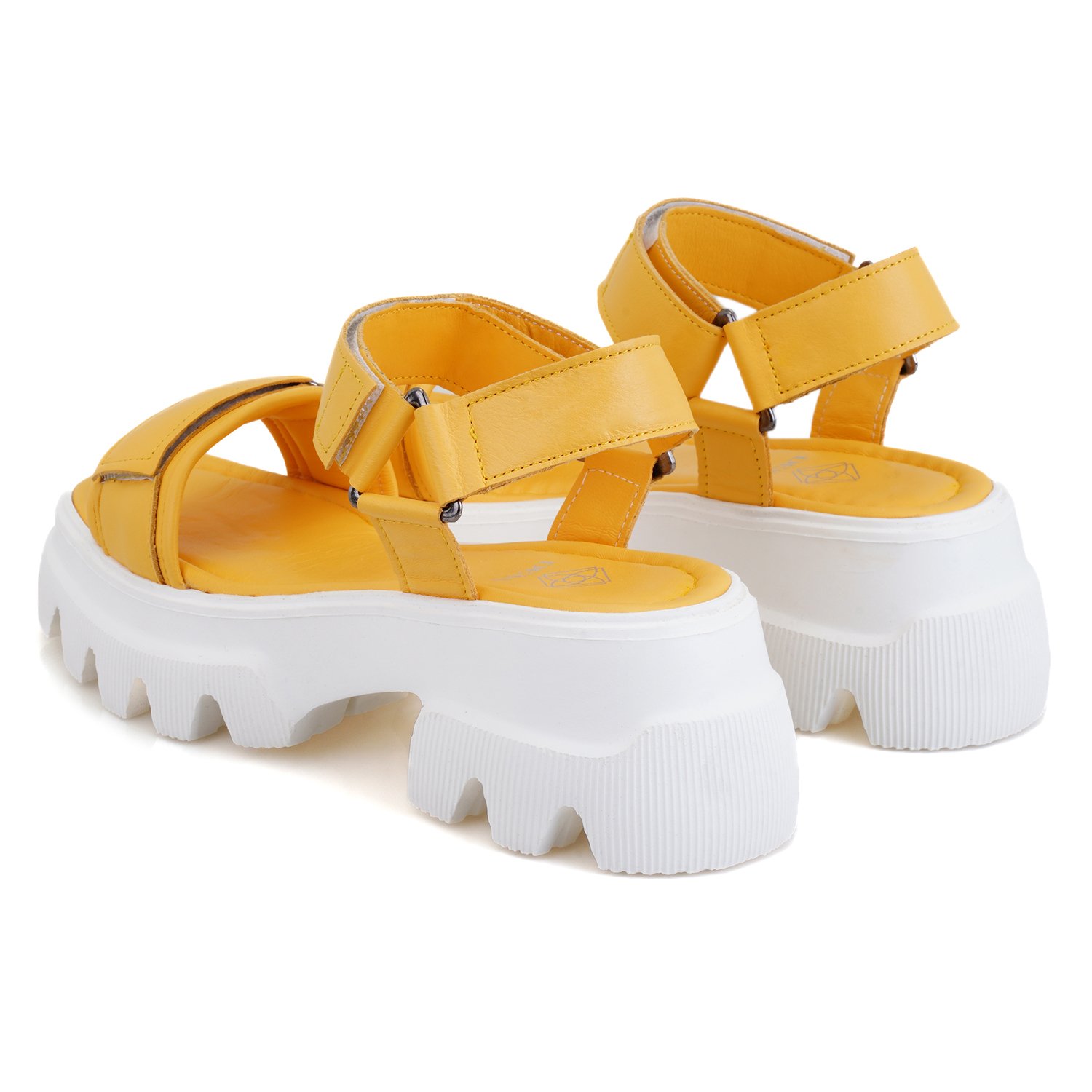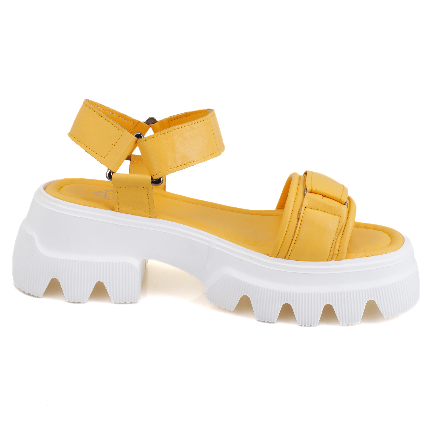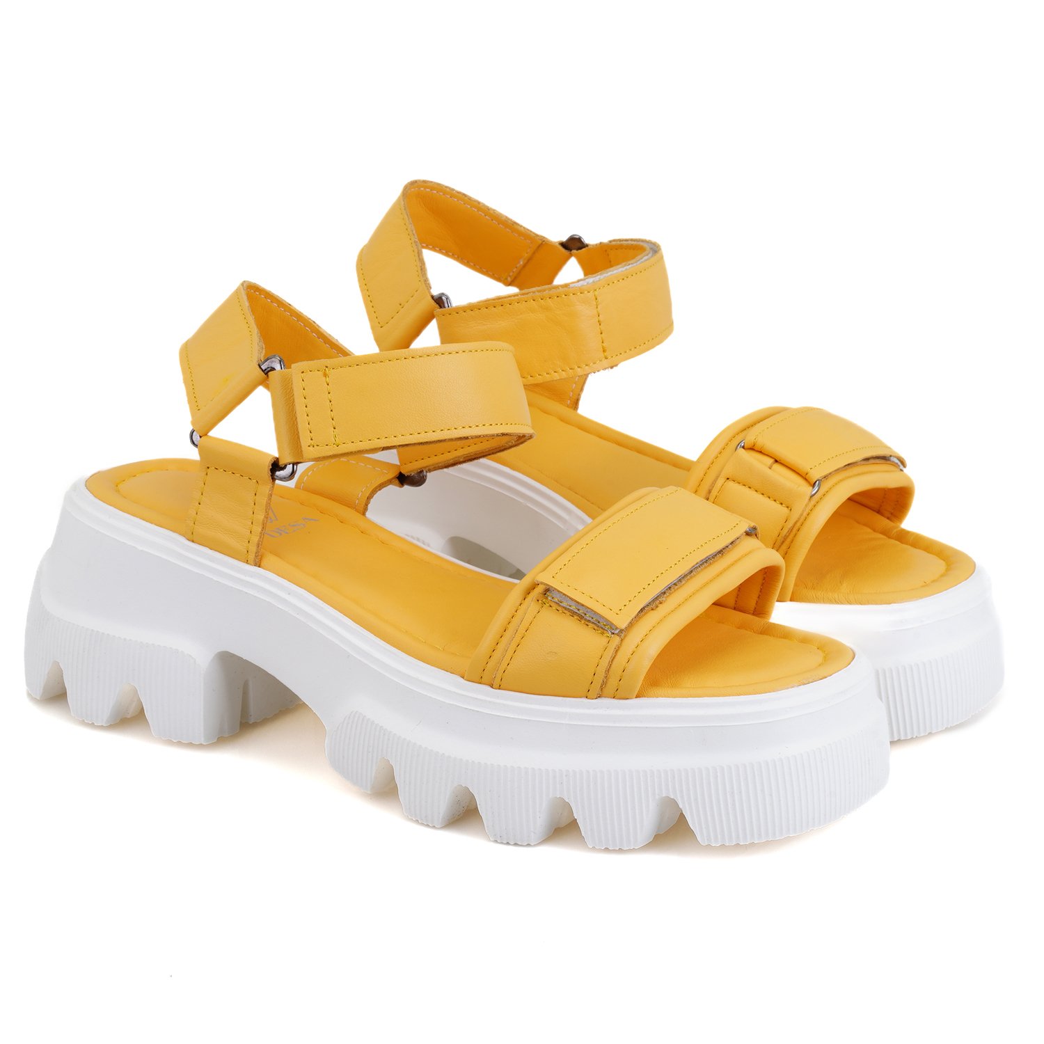 Kadın Sarı Cırt Cırtlı Dolgu Topuklu Sandalet