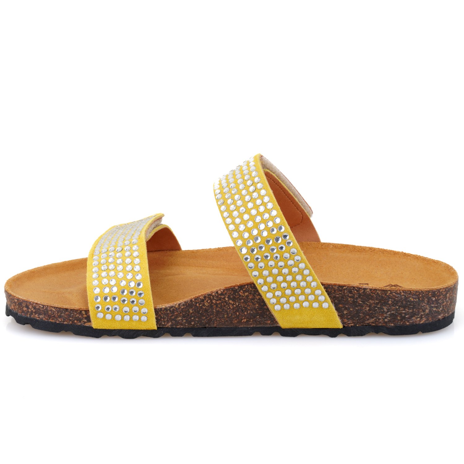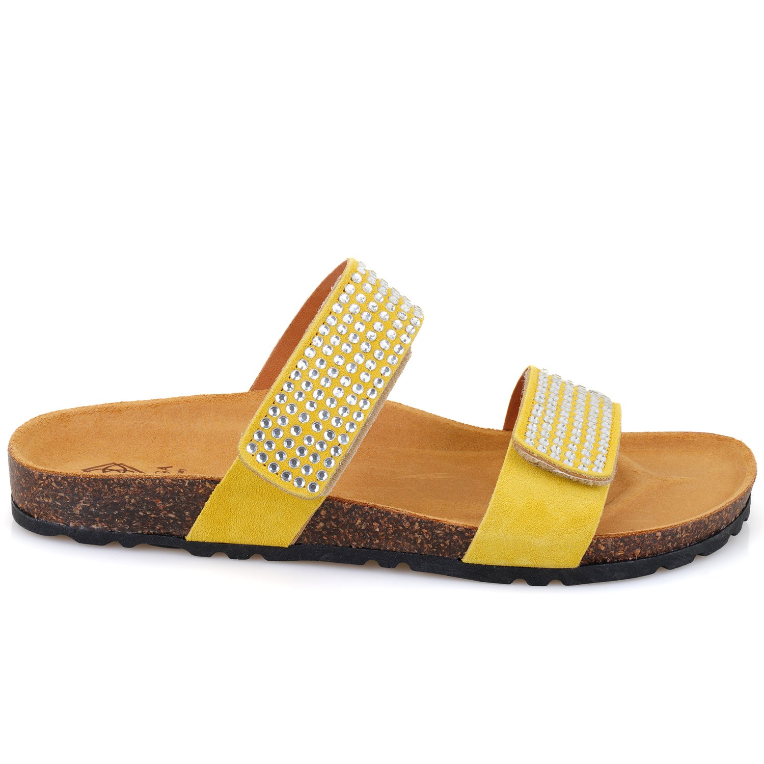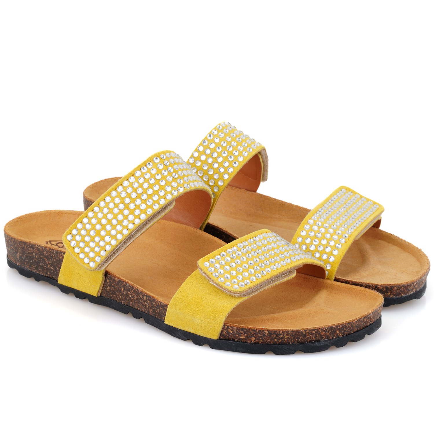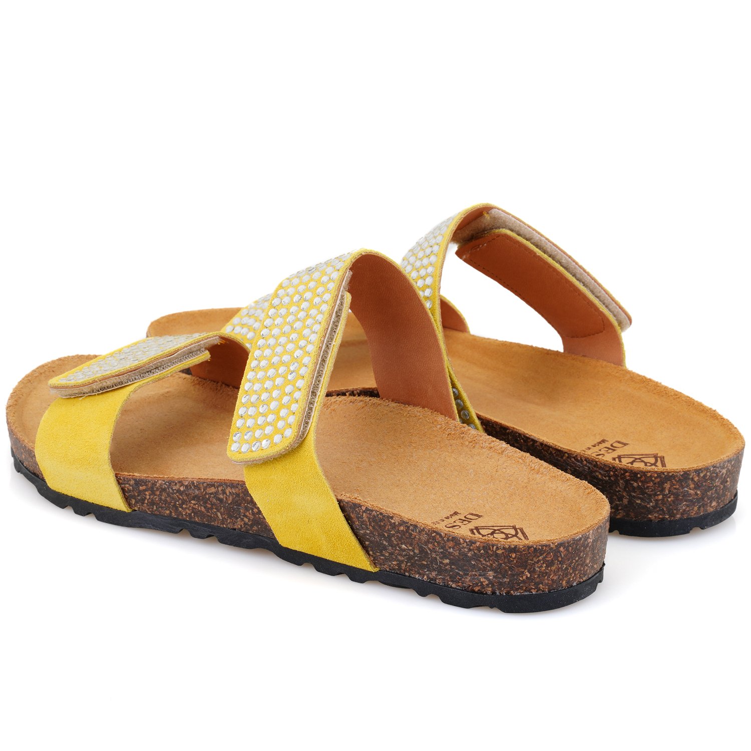 Kadın Sarı Cırt Cırtlı Süet Deri Terlik