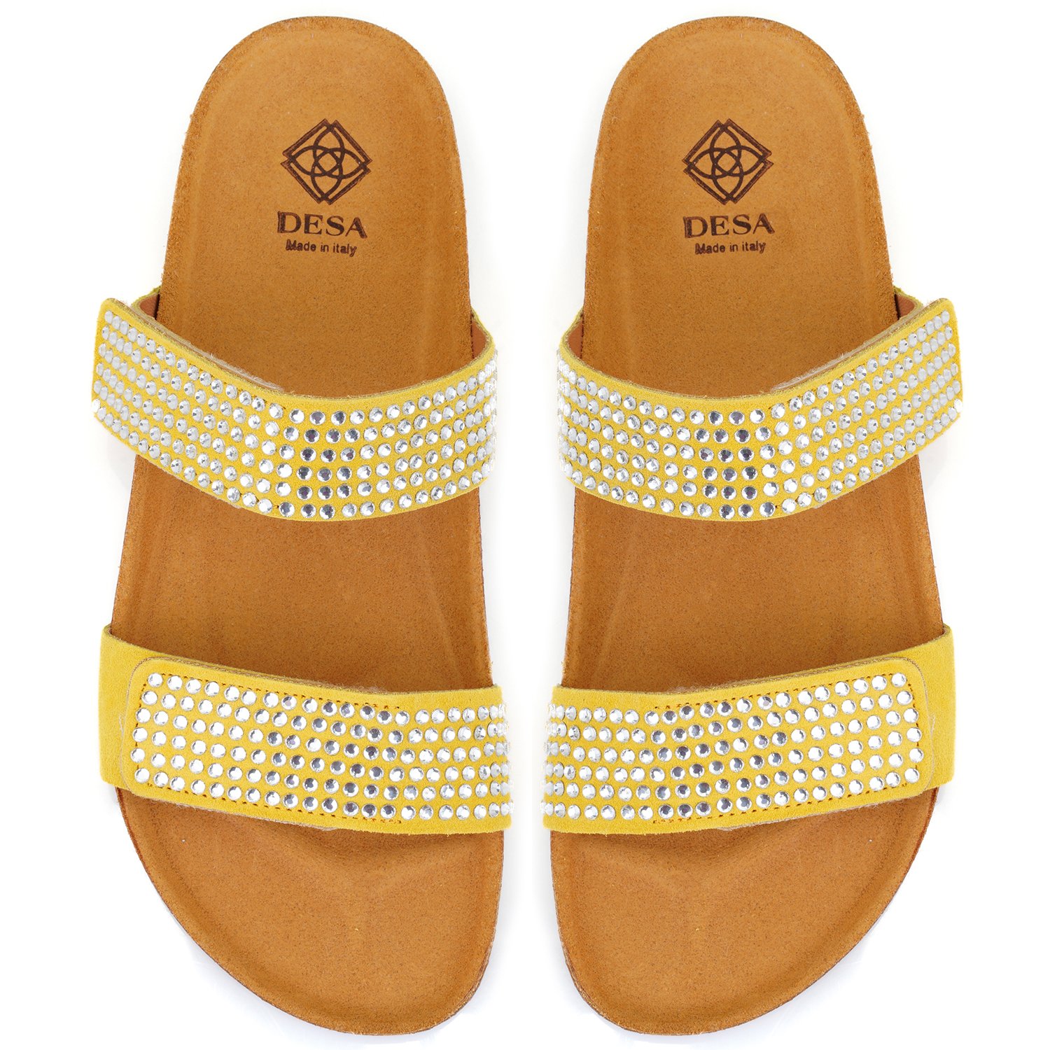 %100 süet, deri iç astarlı, deri iç tabanlı, parlak taş detaylı, mantar pu tabanlı,cırt cırtlı kadın terlik.