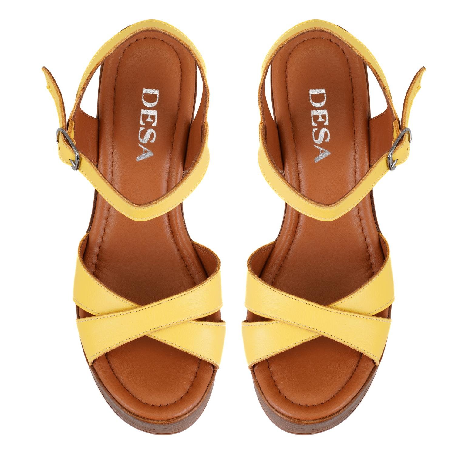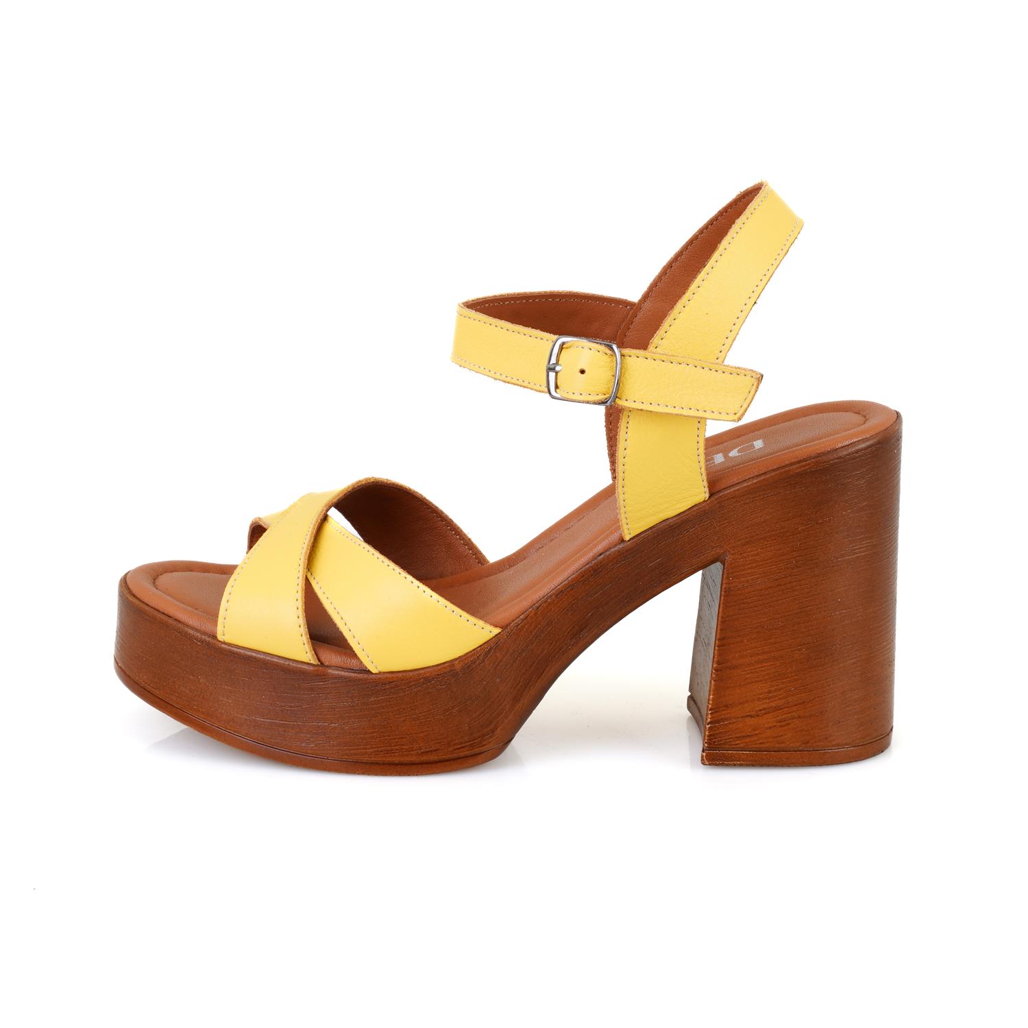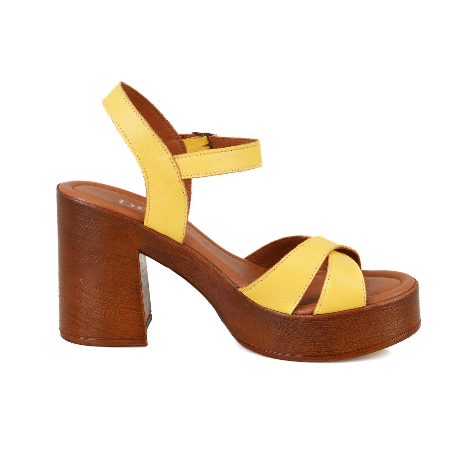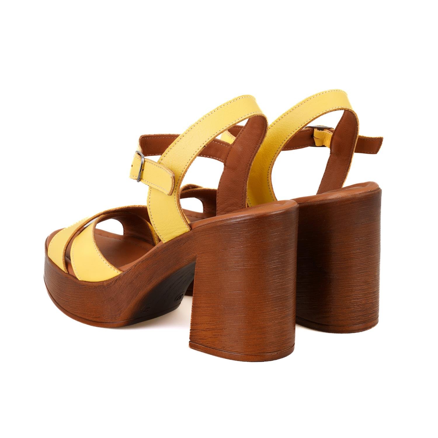 Kadın Sarı Platform Topuklu Deri Sandalet