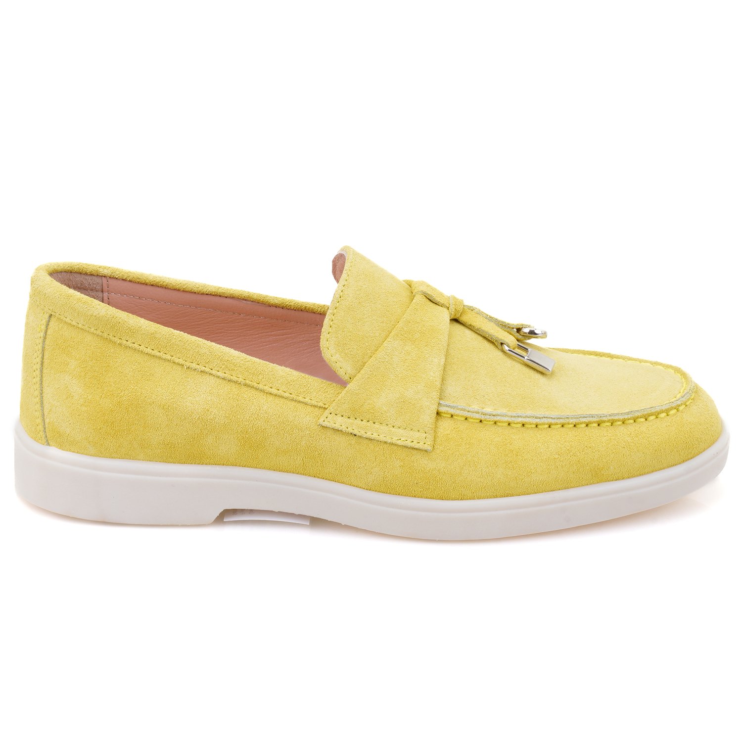 Kadın Pembe Süet Deri Loafer Kadın Sarı Süet Deri Loafer