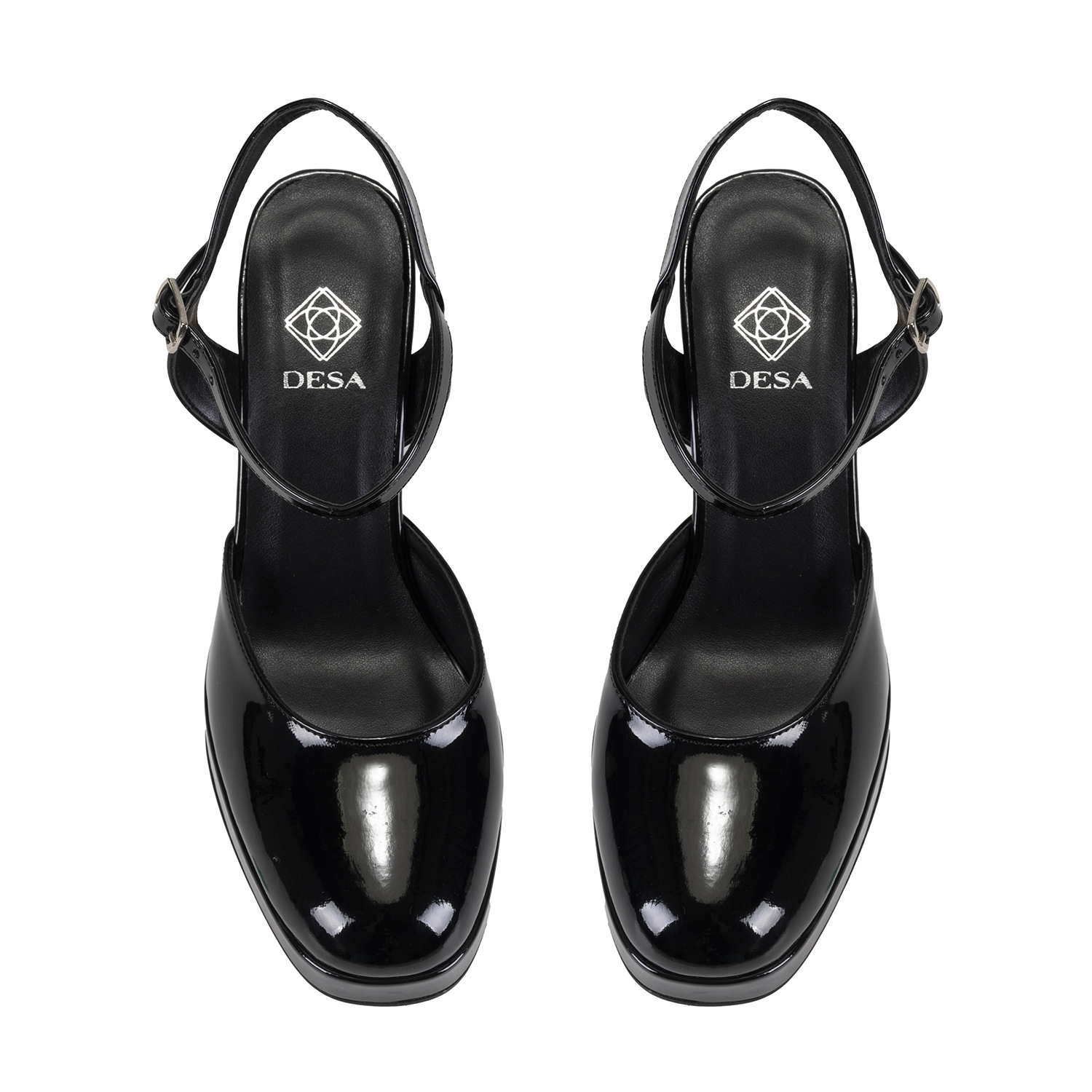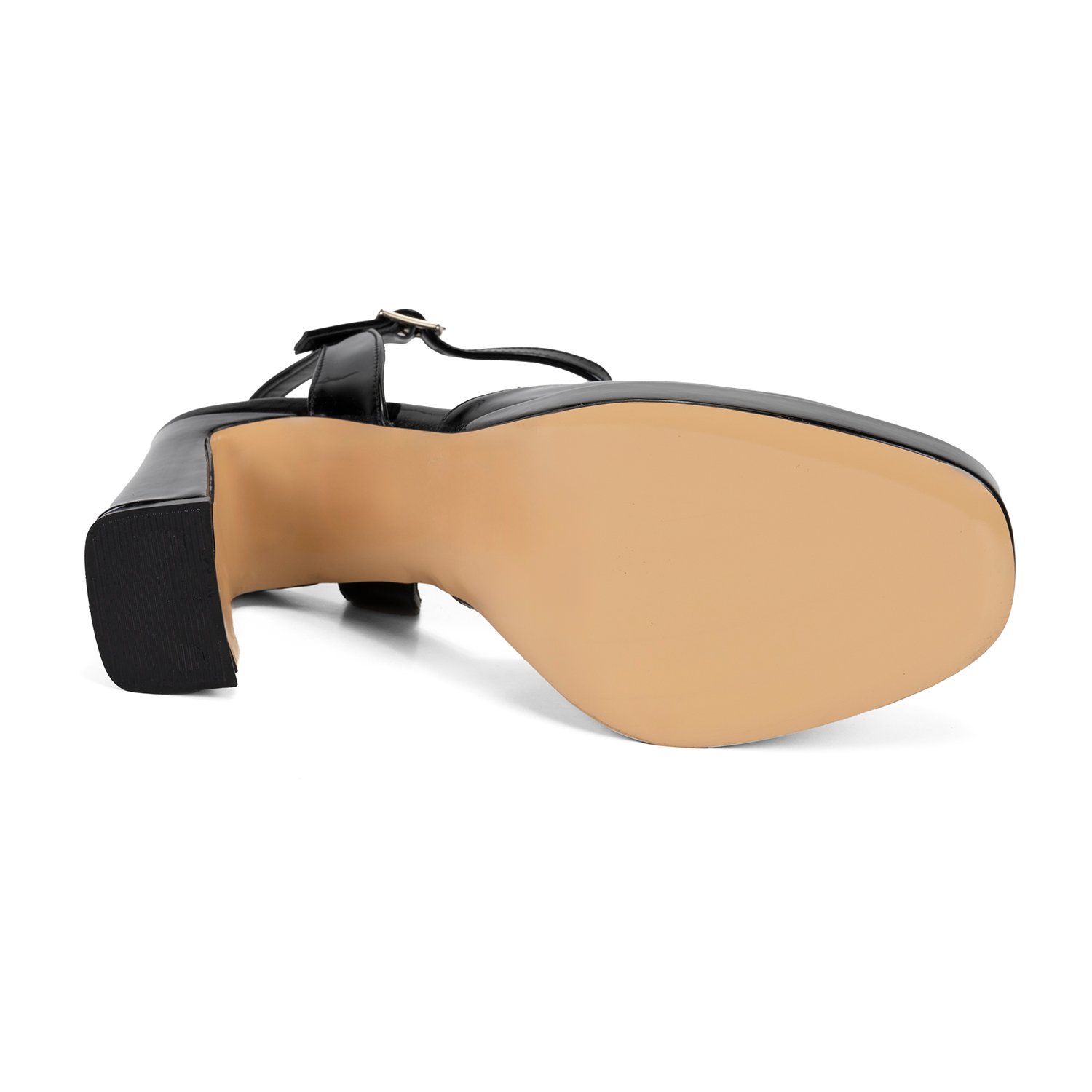 PU iç tabanlı, PU astarlı, neolit tabanlı, ayarlanabilir çift metal toka detaylı, kadın arkası açık topuklu ayakkabı.
