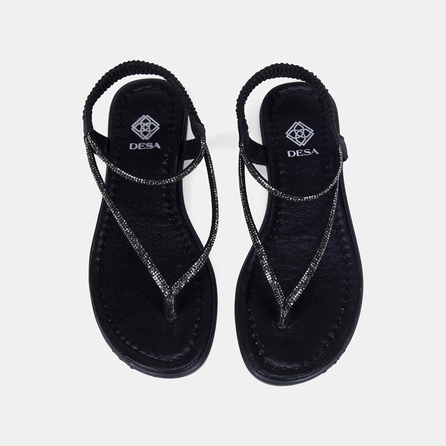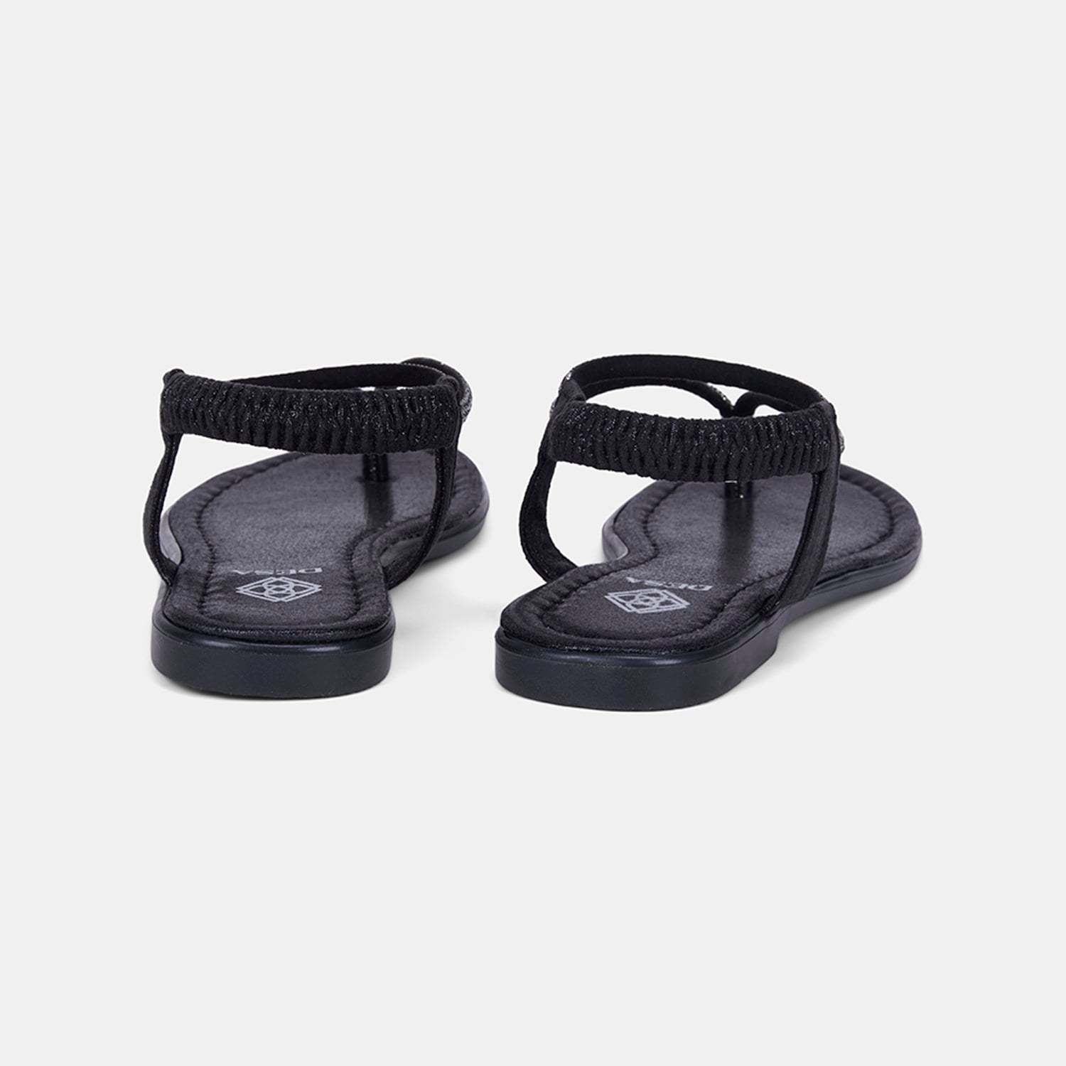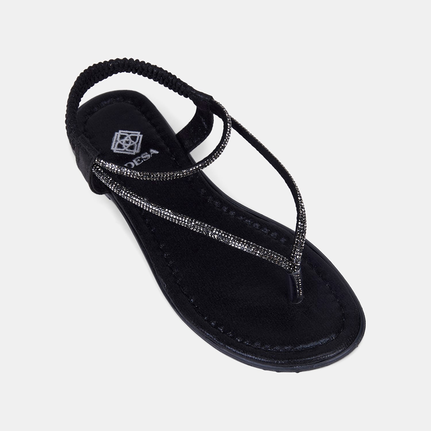 Kadın Siyah Arkası Lastikli Taş Detaylı Parmak Arası Sandalet