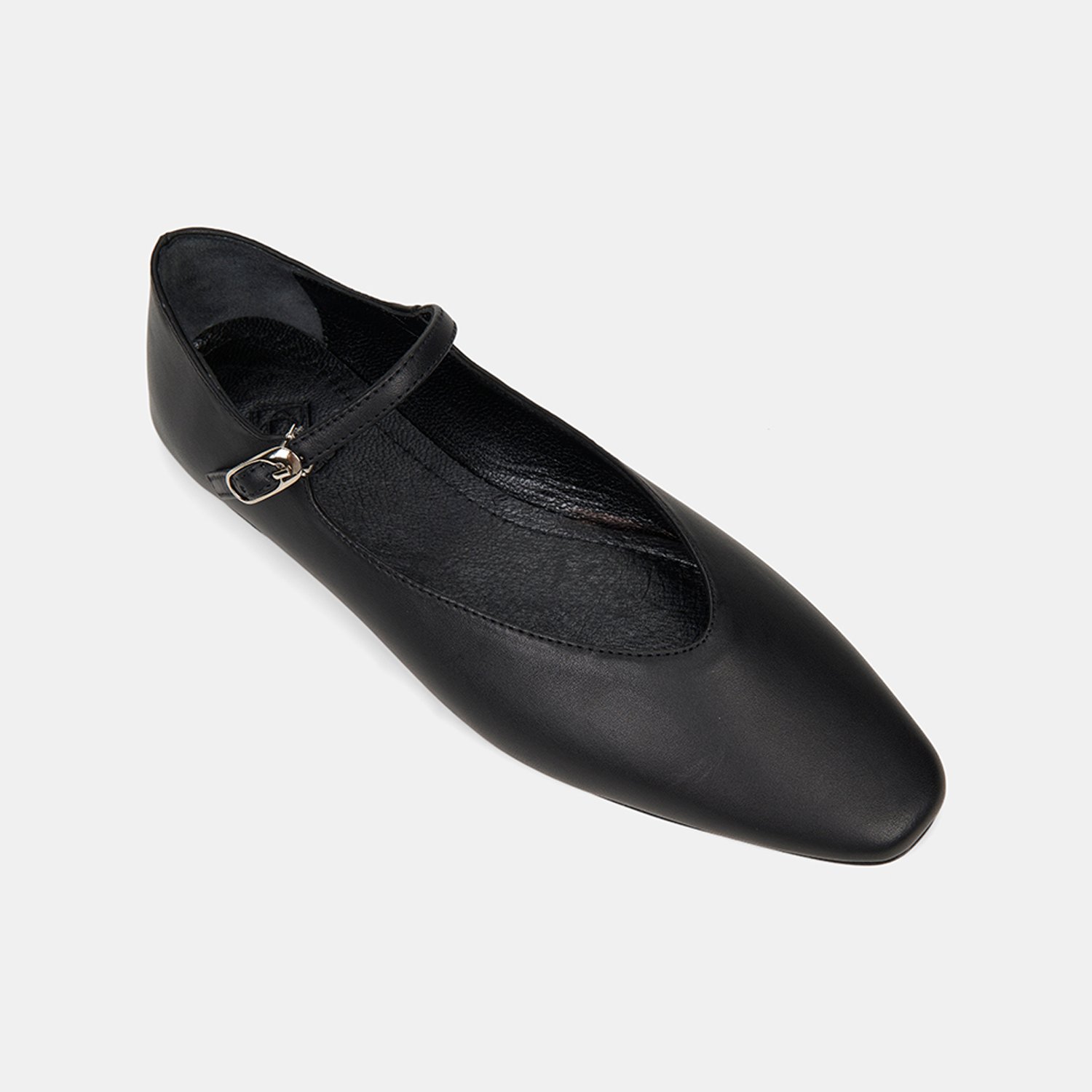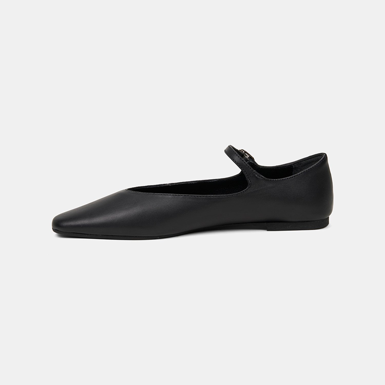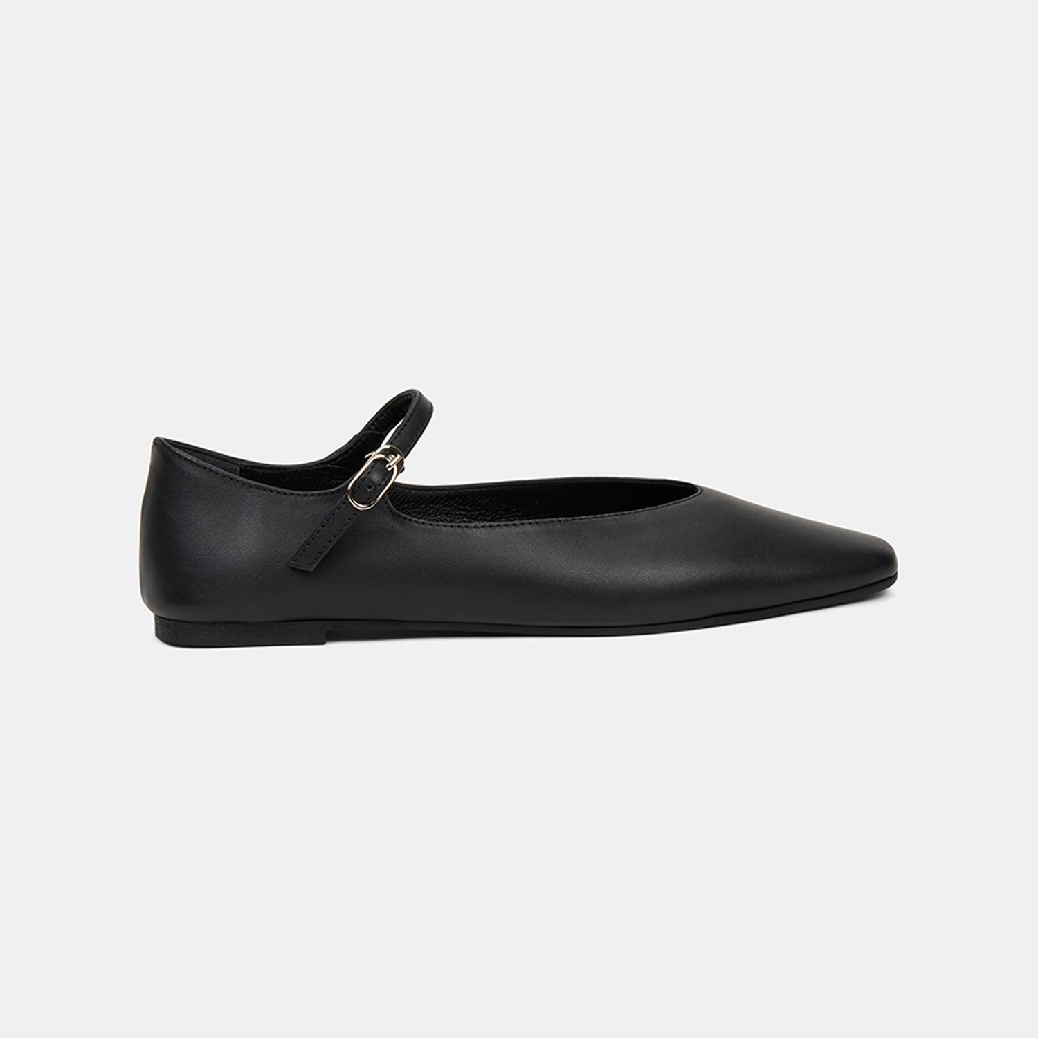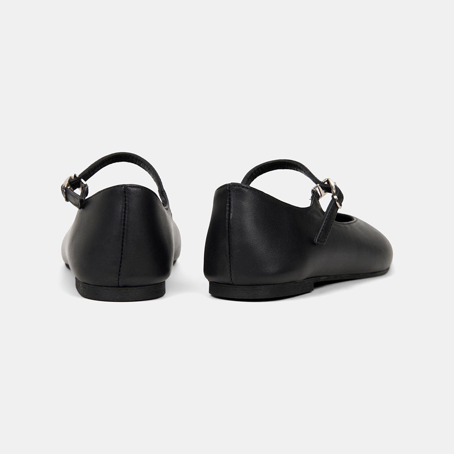 Kadın Siyah Ayarlanabilir Metal Tokalı Mary Jane Deri Babet