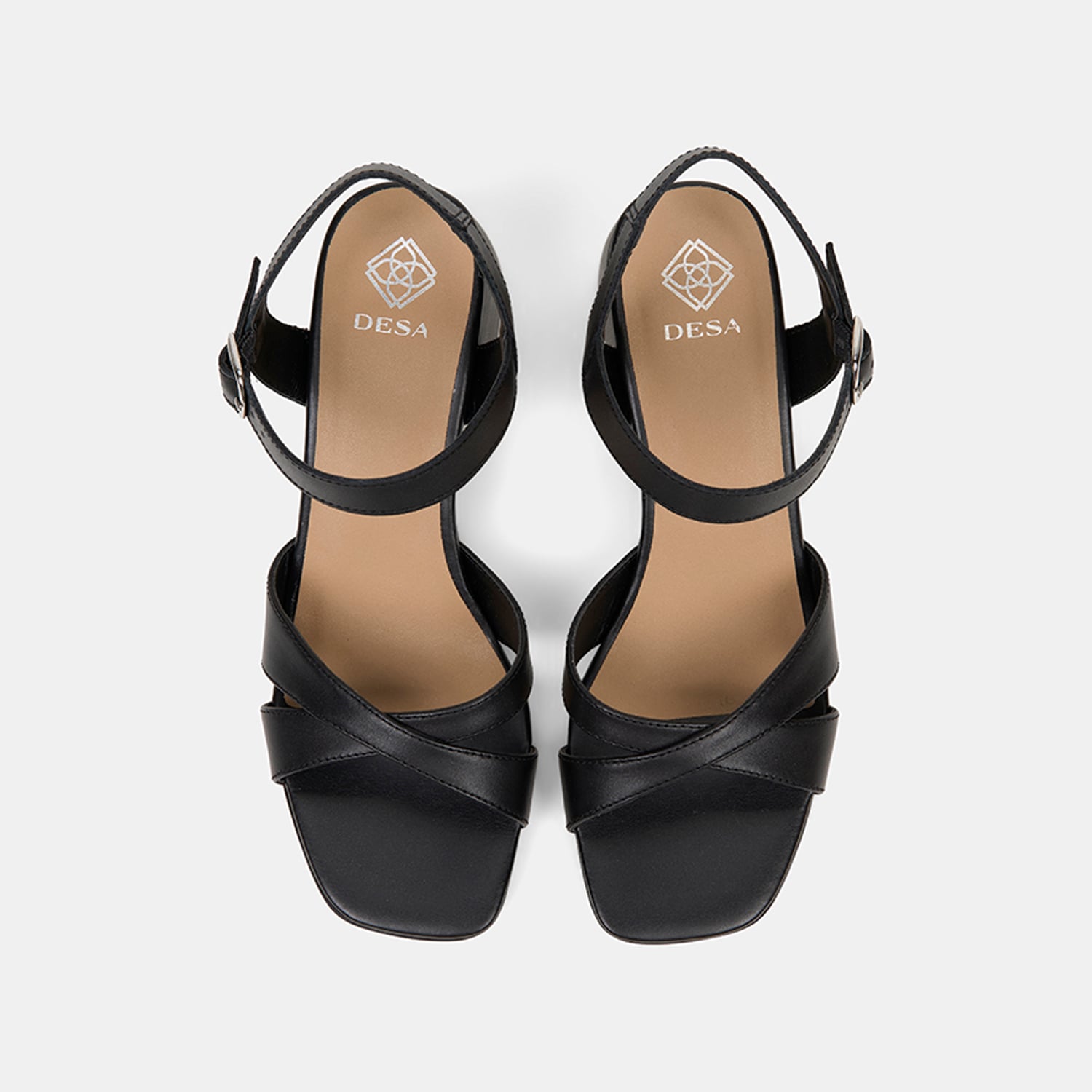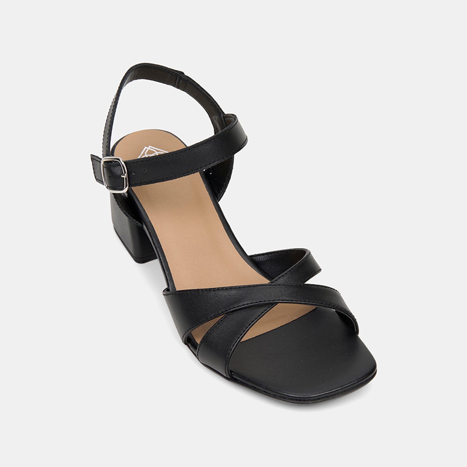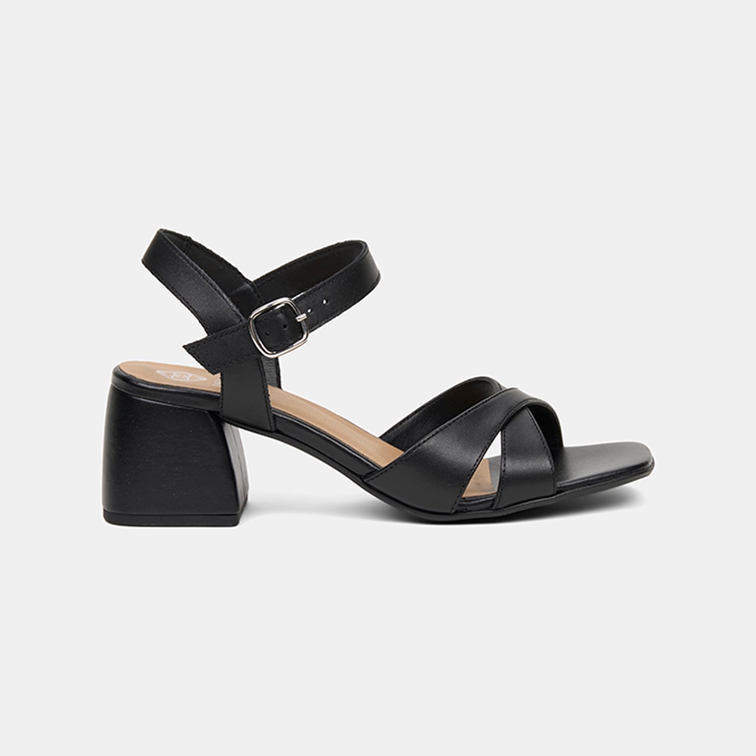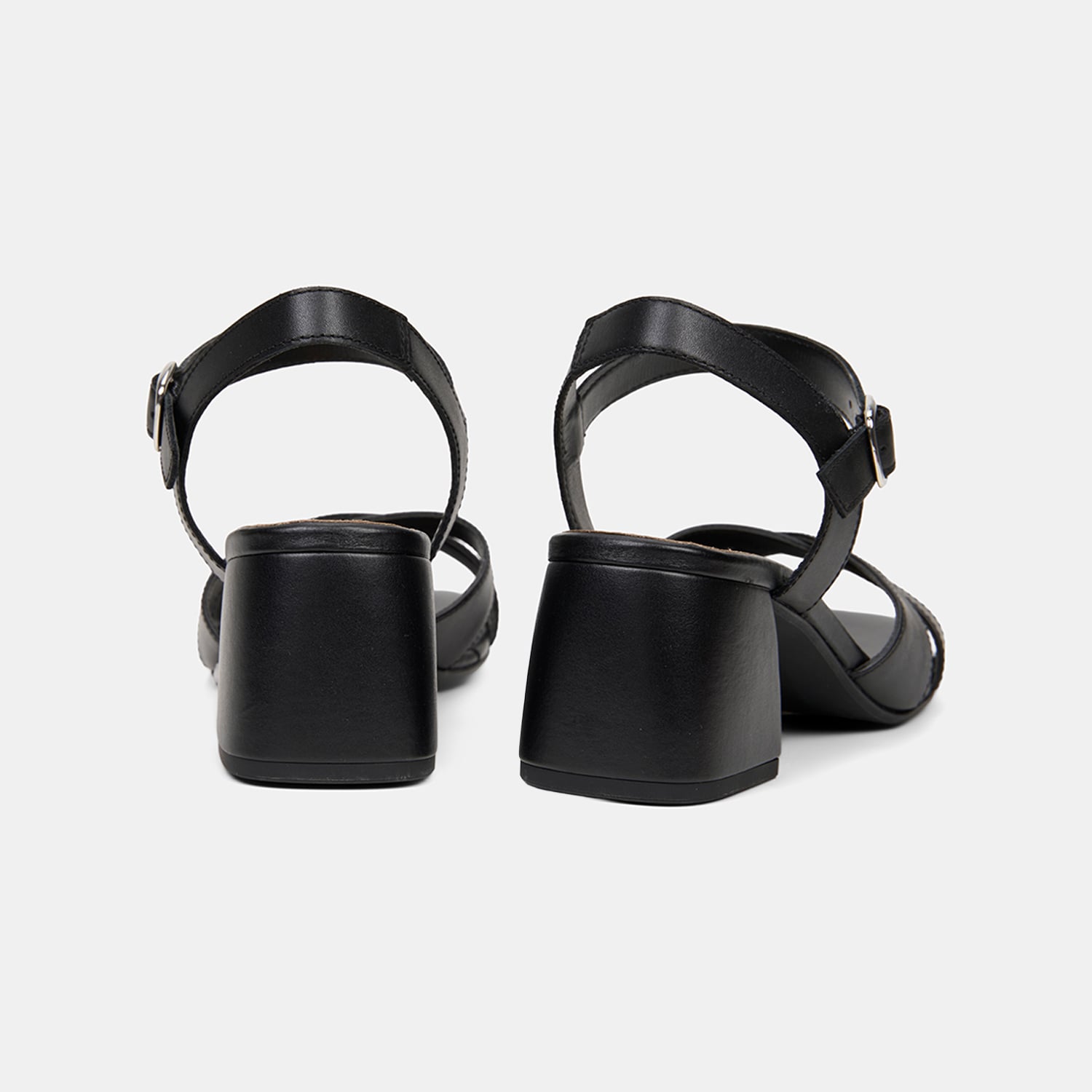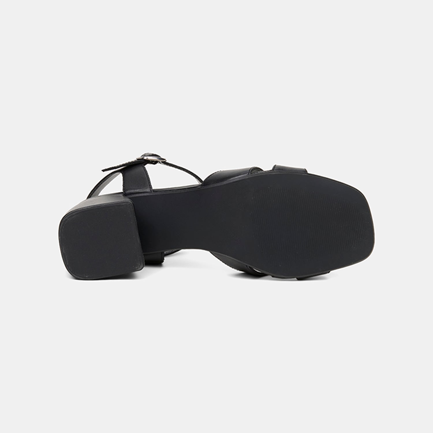 Kadın Siyah Ayarlanabilir Metal Tokalı Topuklu Deri Sandalet