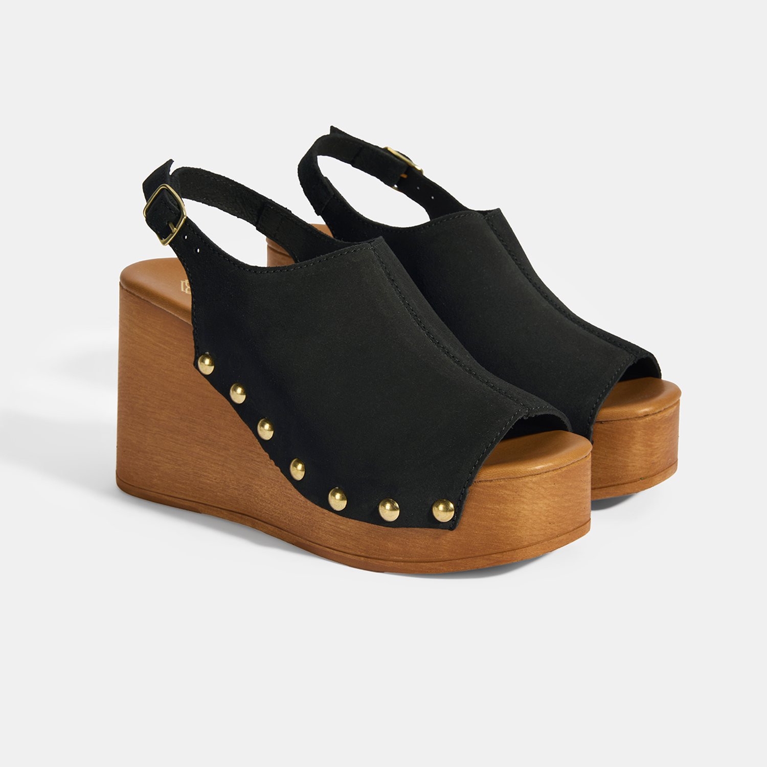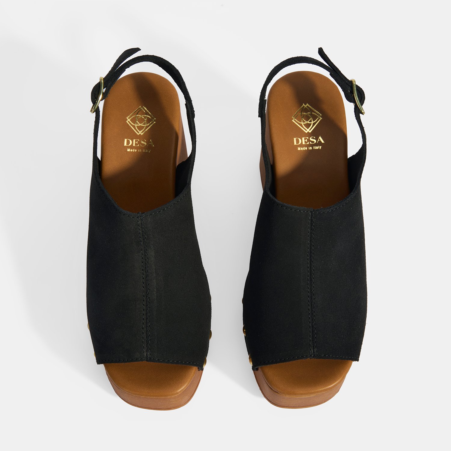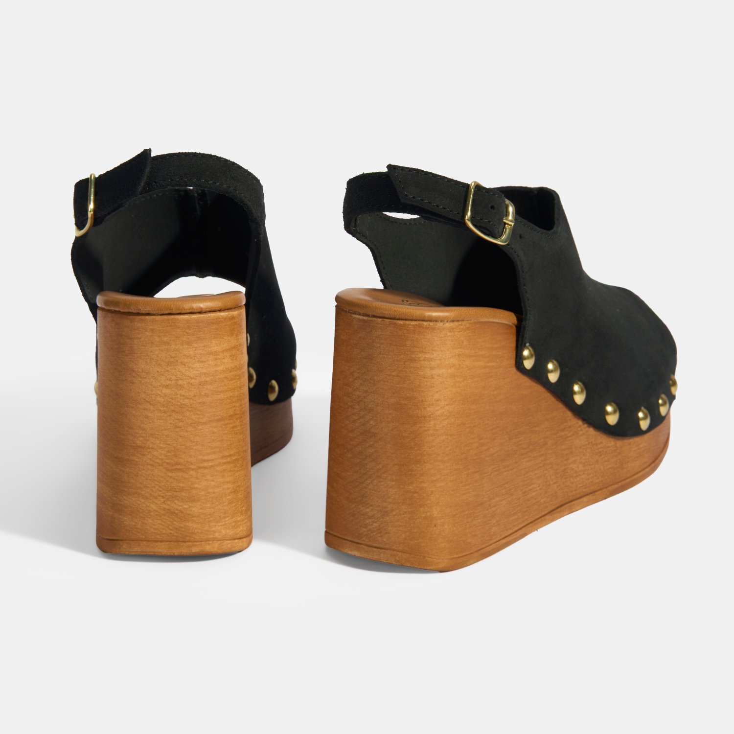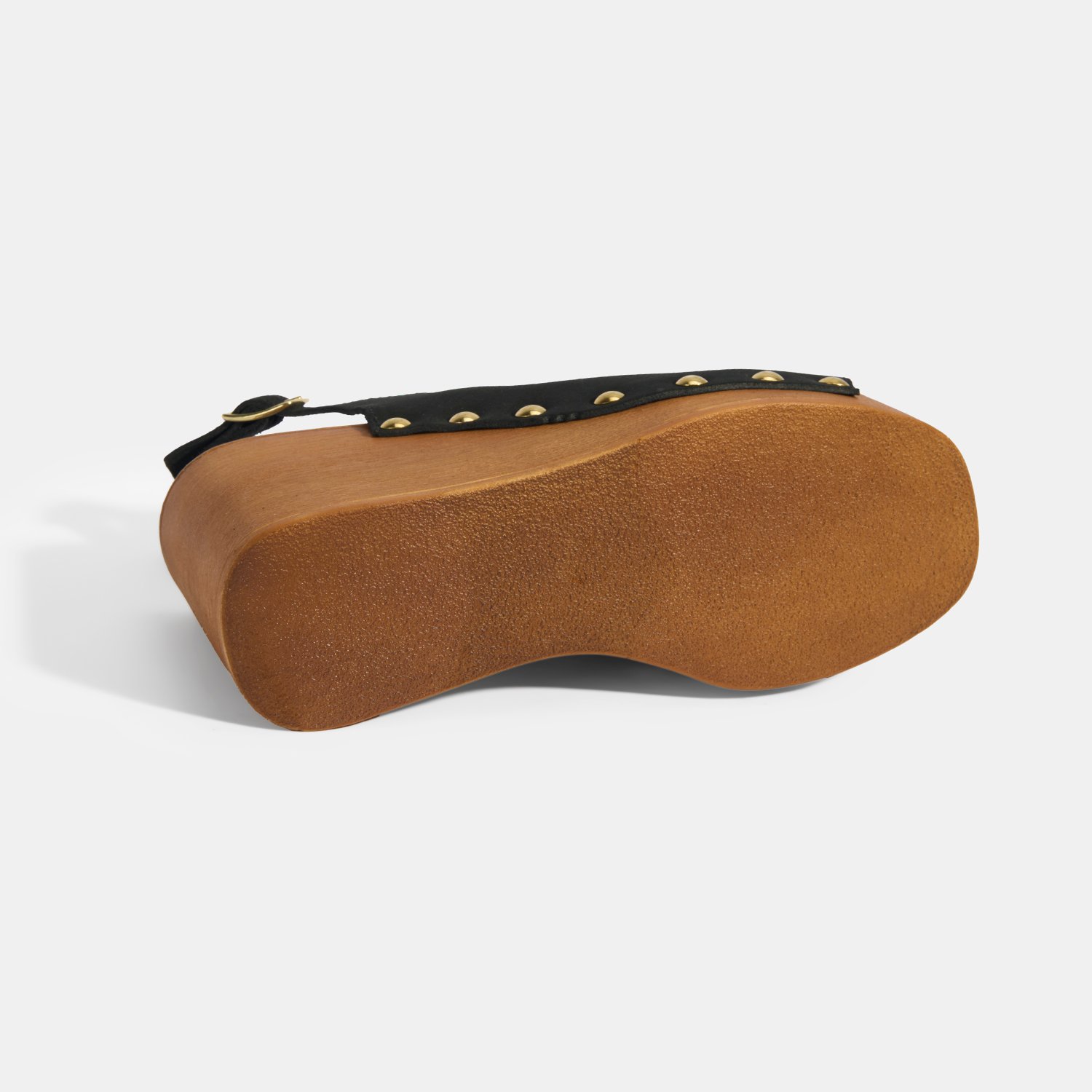 Kadın Siyah Ayarlanabilir Toka Detaylı Süet Dolgu Topuklu Sandalet