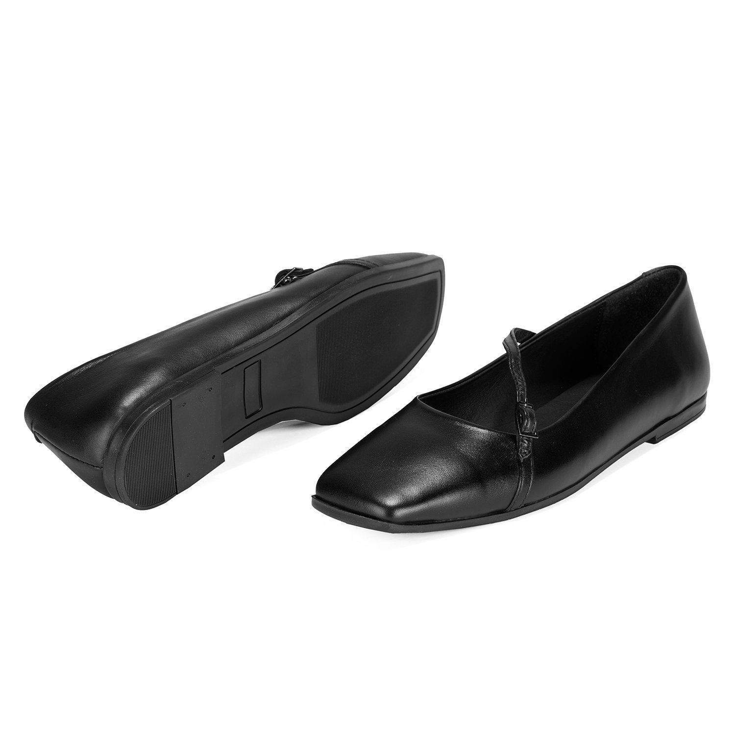 Kadın Siyah Ayarlanabilir Tokalı Deri Babet