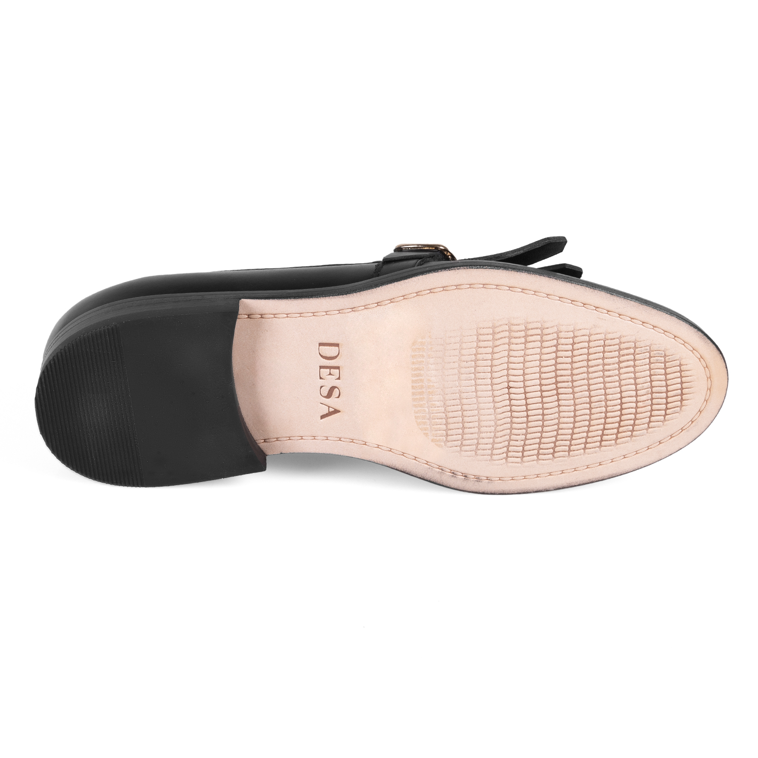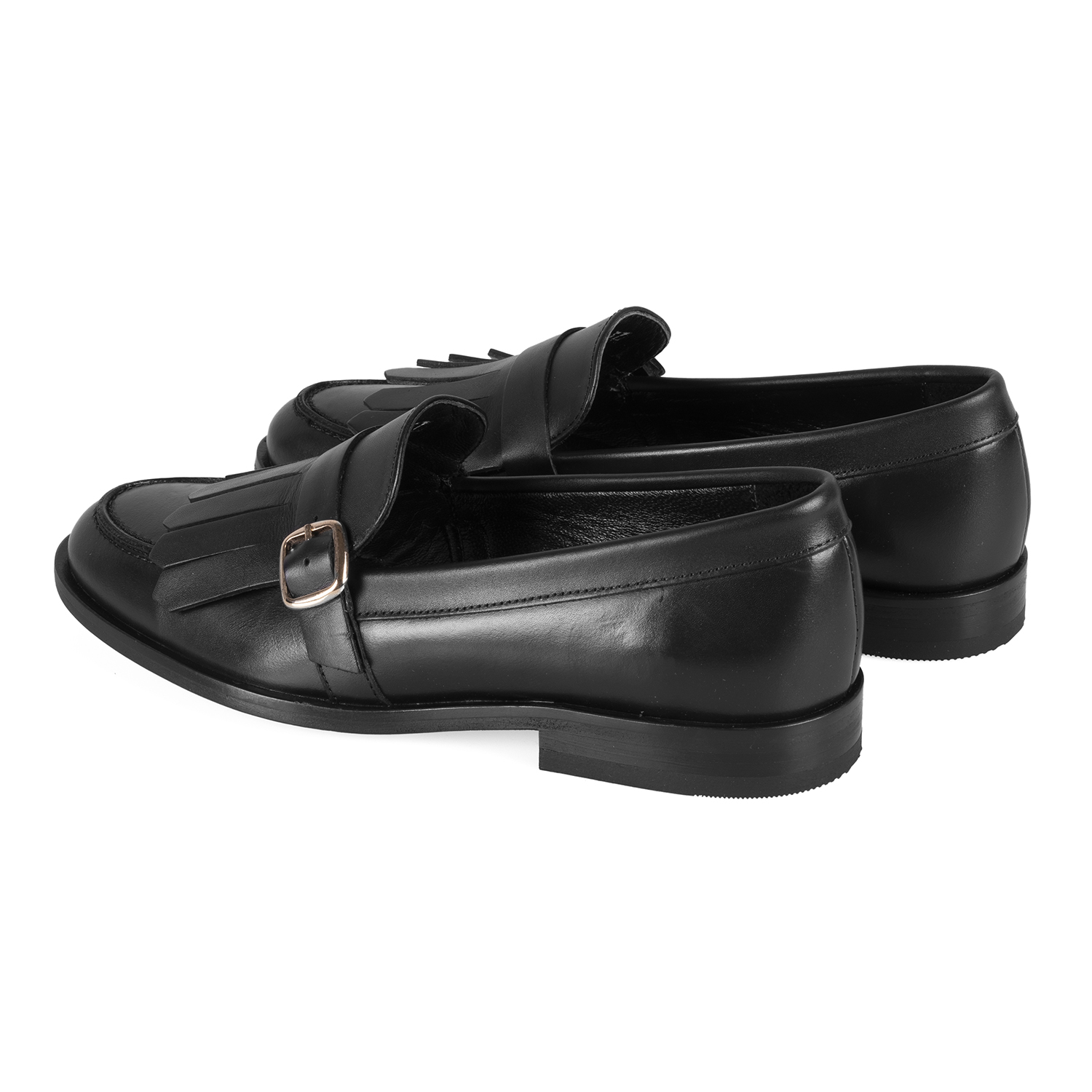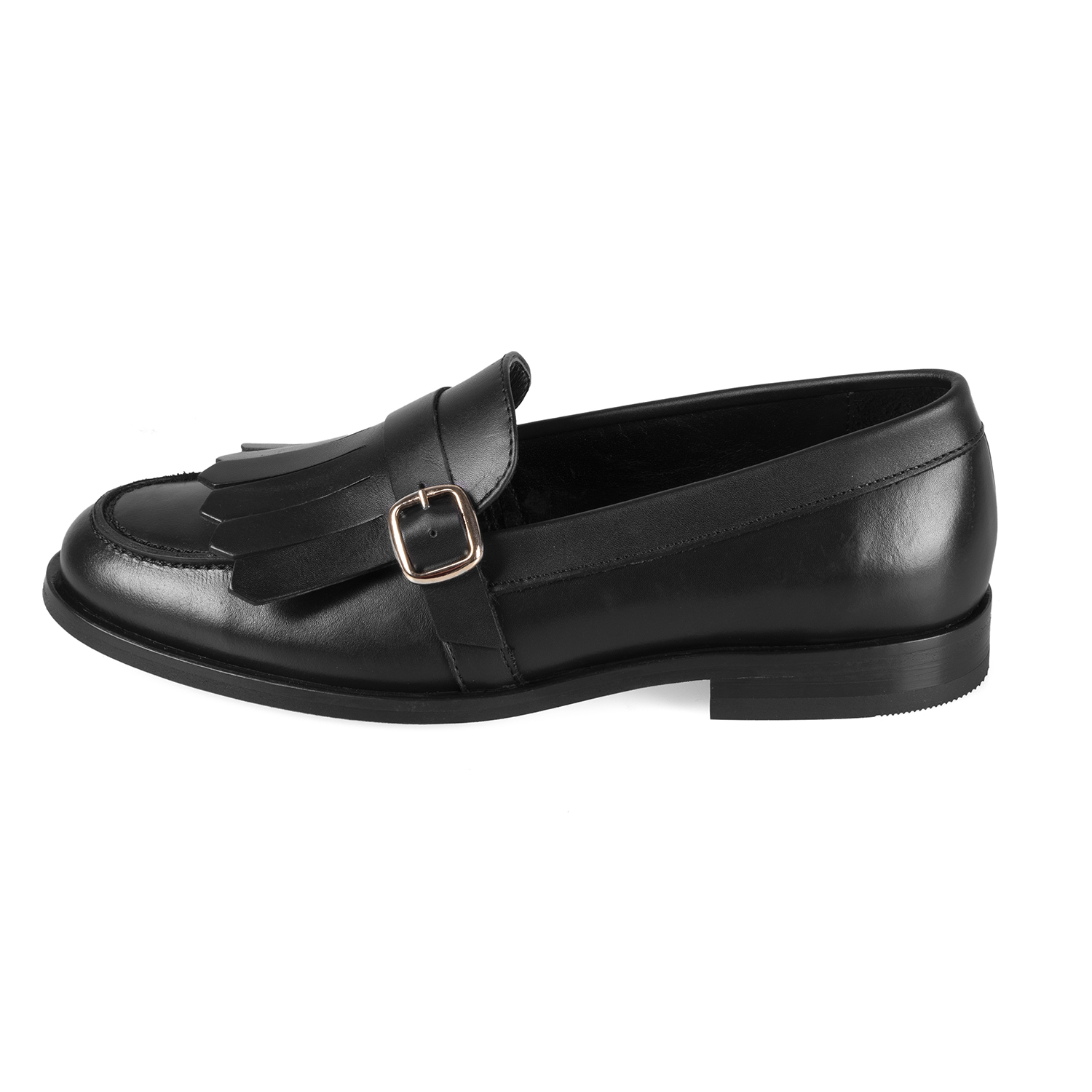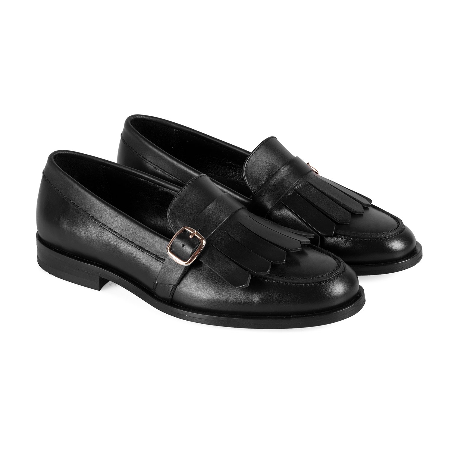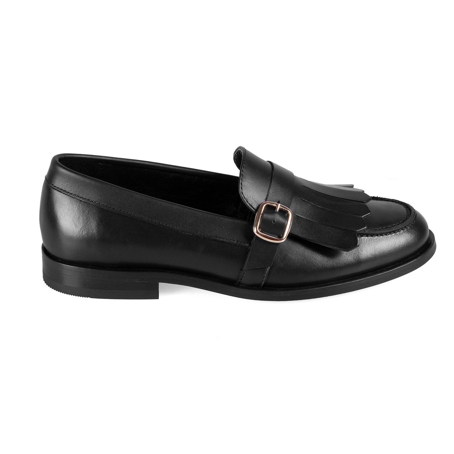 Kadın Siyah Ayarlanabilir Tokalı Deri Loafer