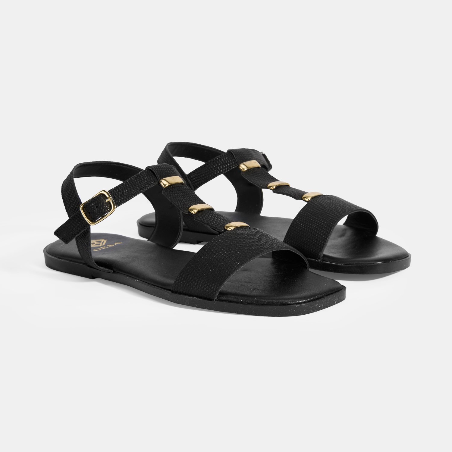 Kadın Siyah Ayarlanabilir Tokalı Deri Sandalet