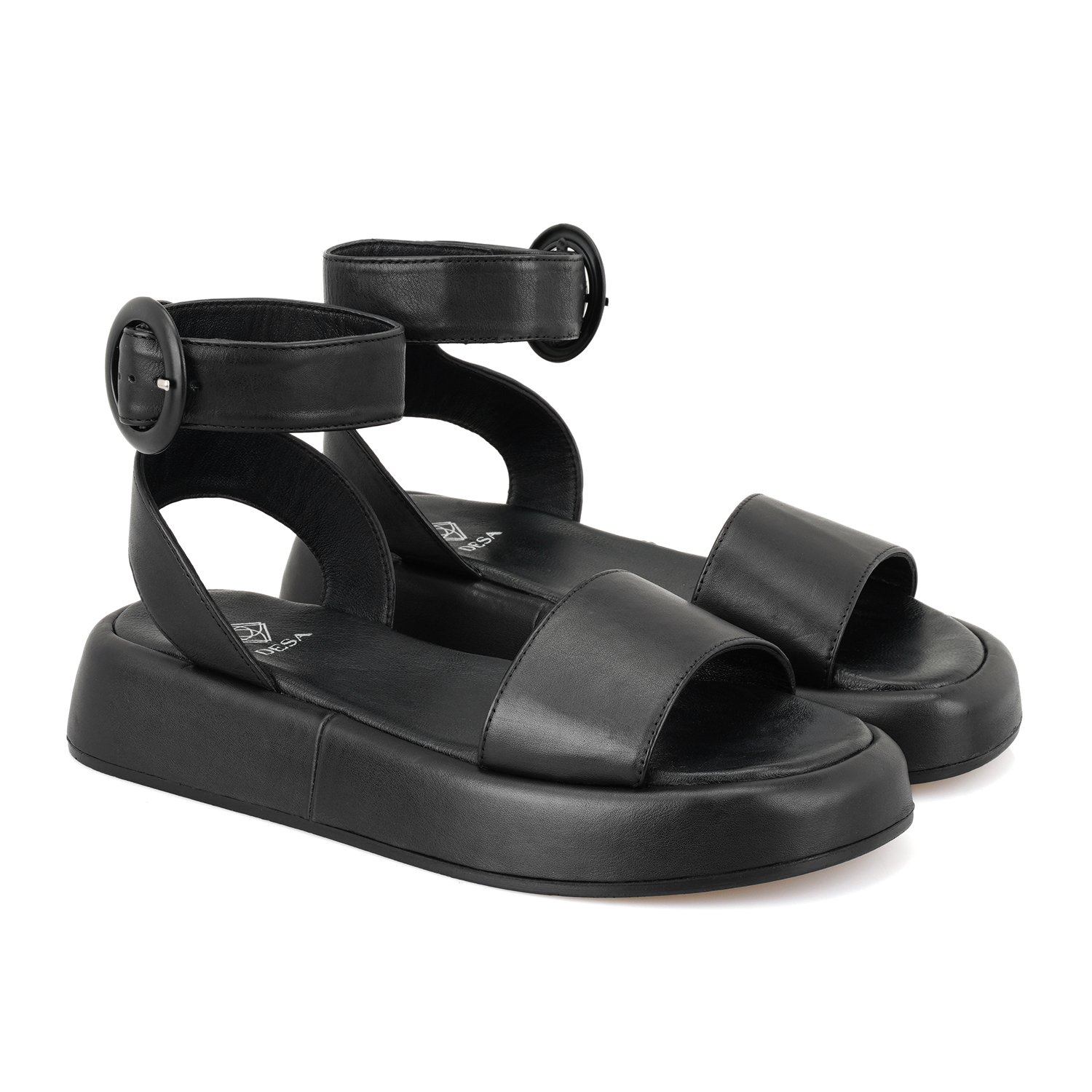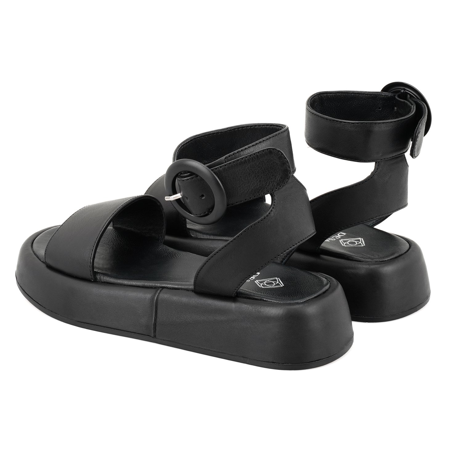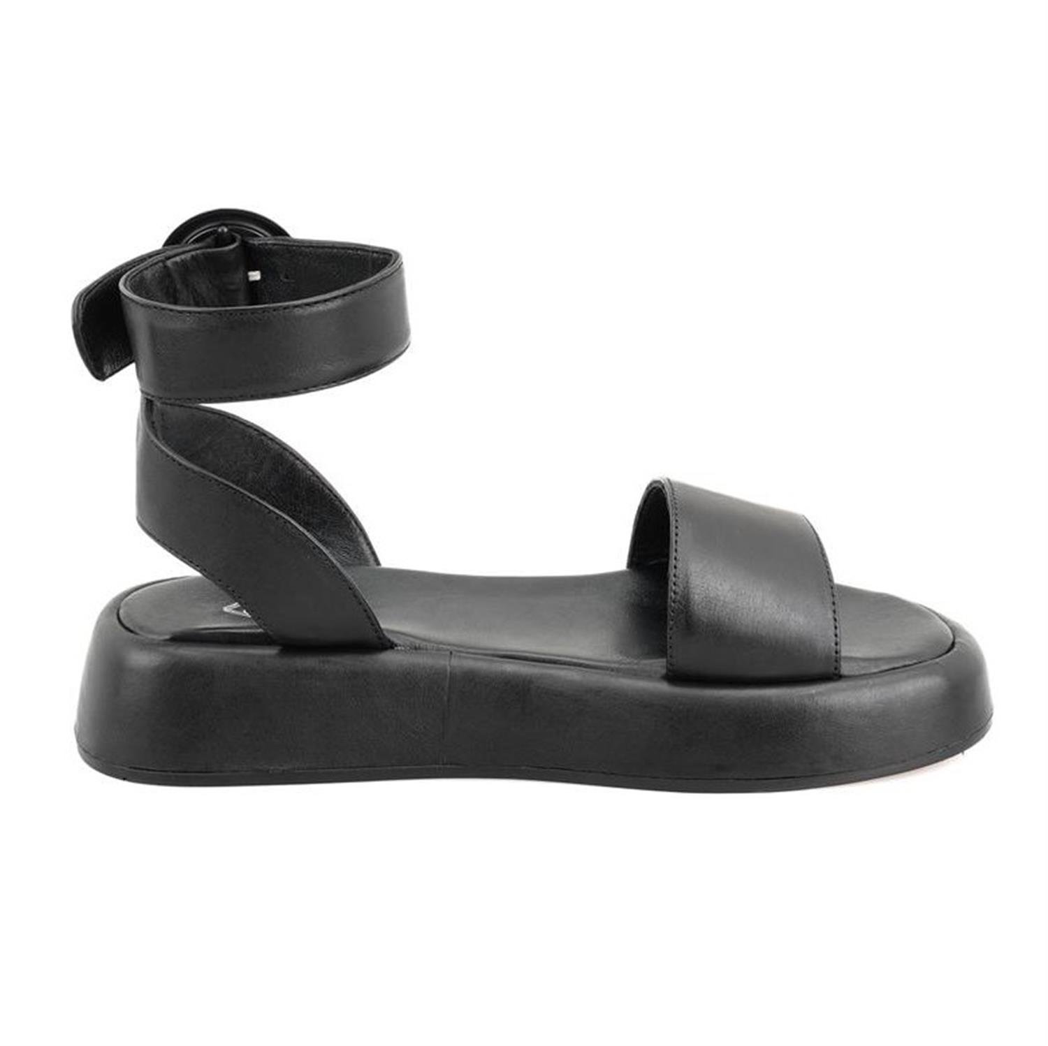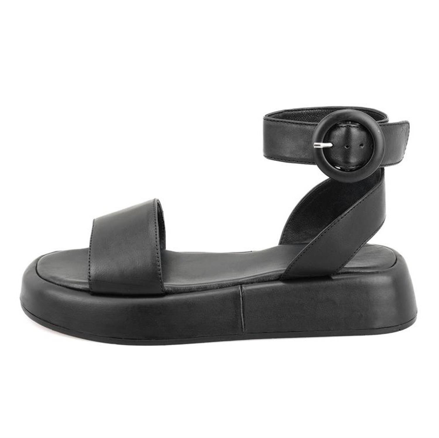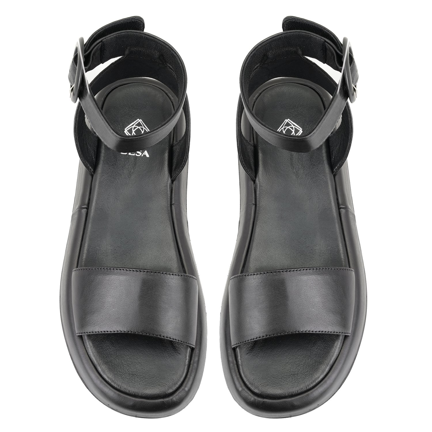 Kadın Siyah Ayarlanabilir Tokalı Deri Sandalet