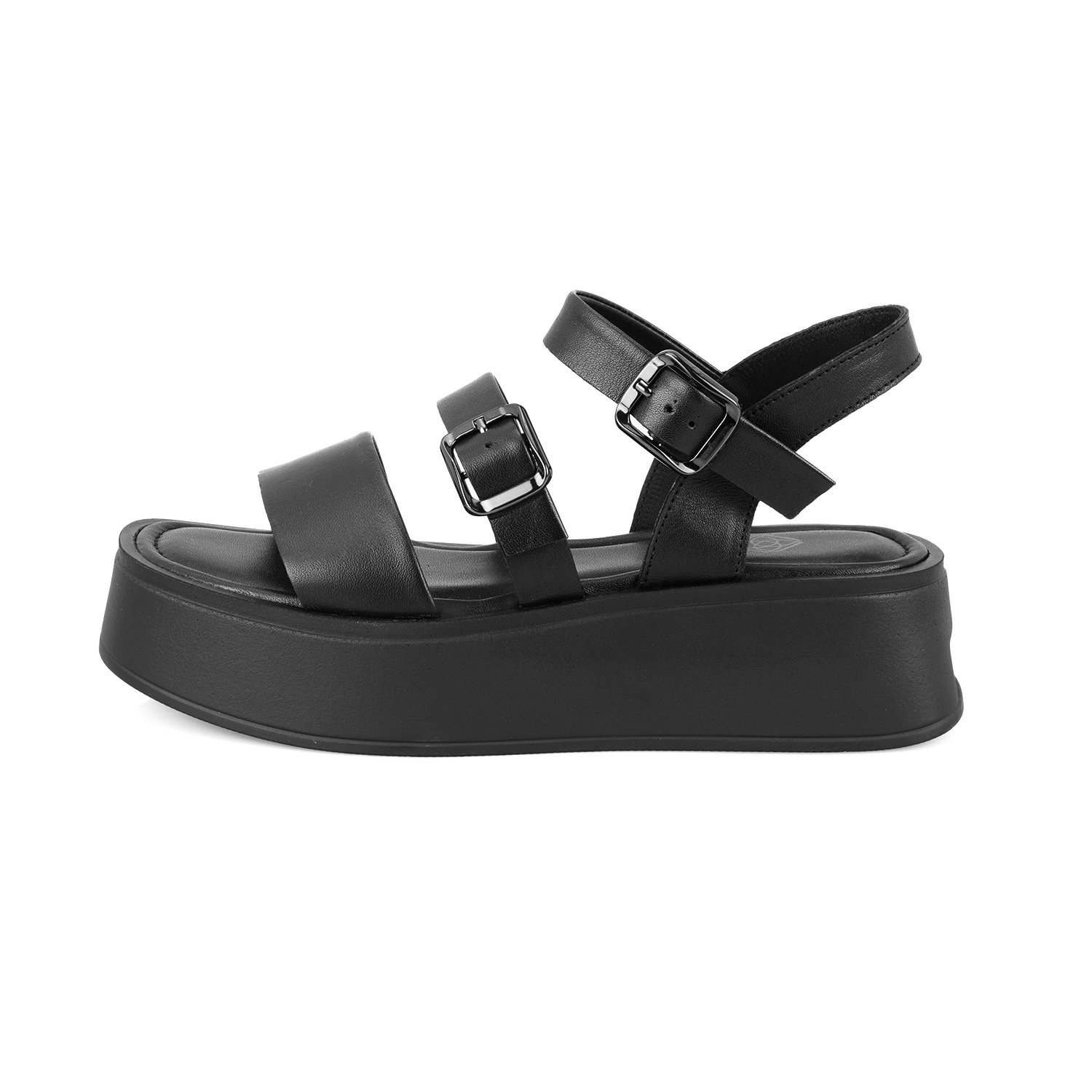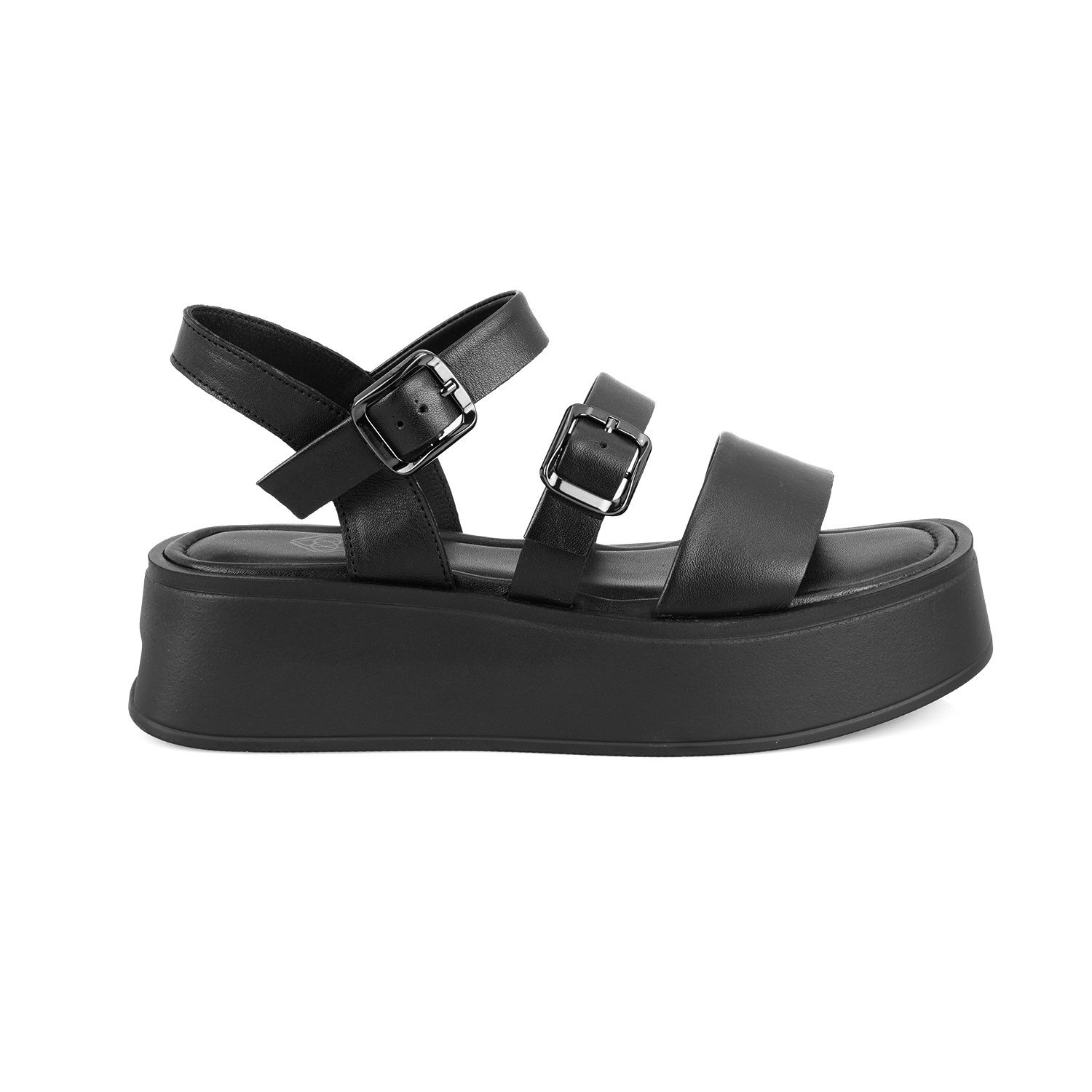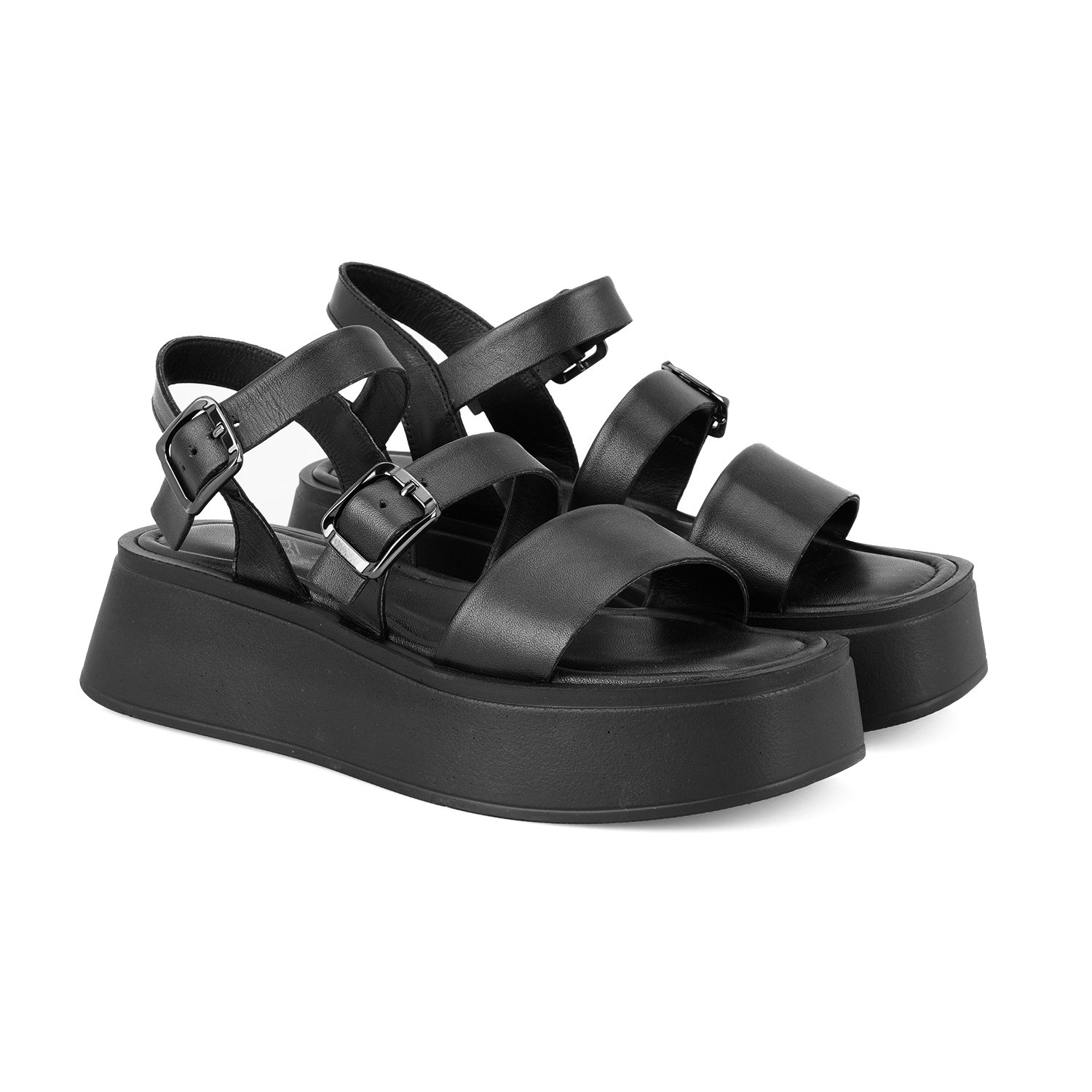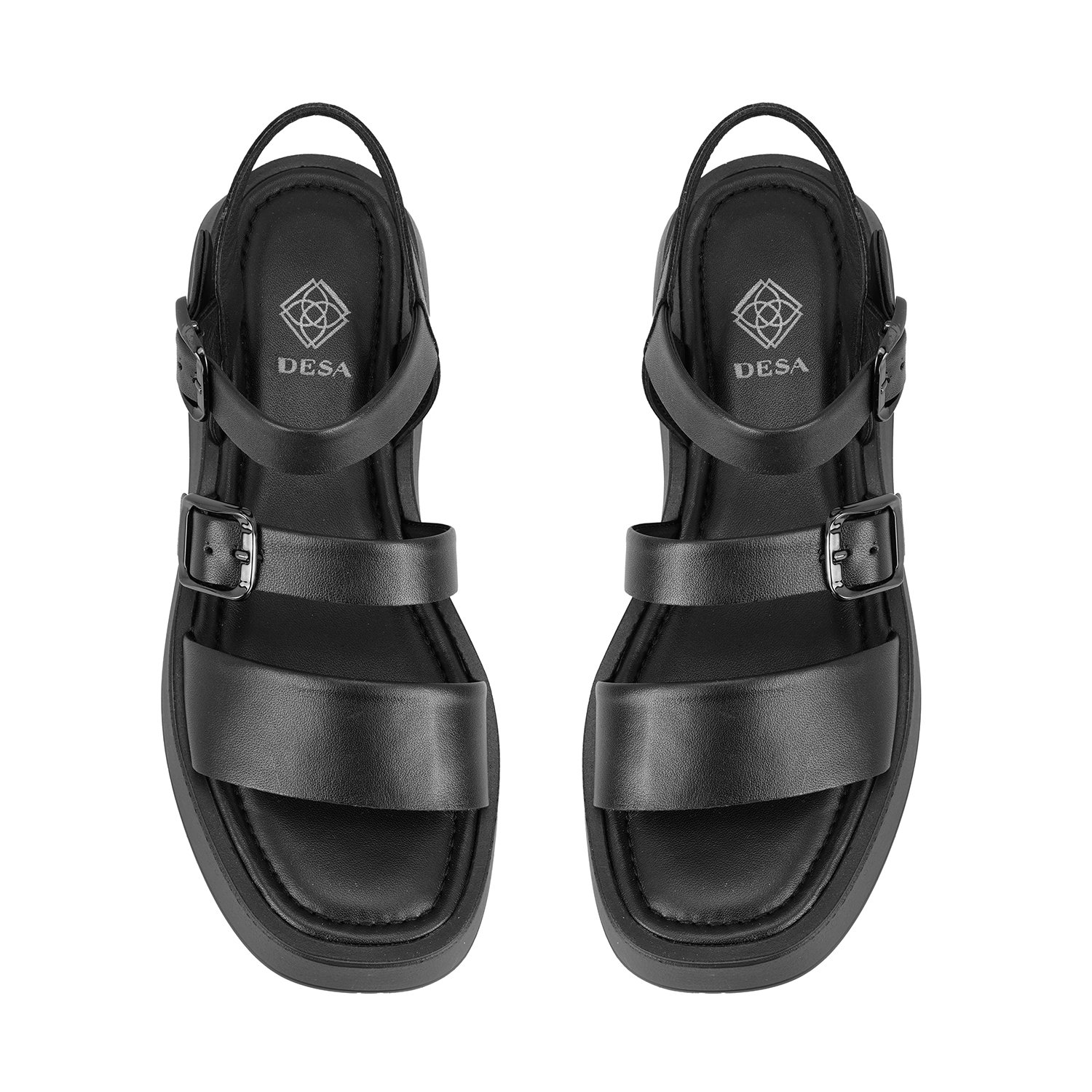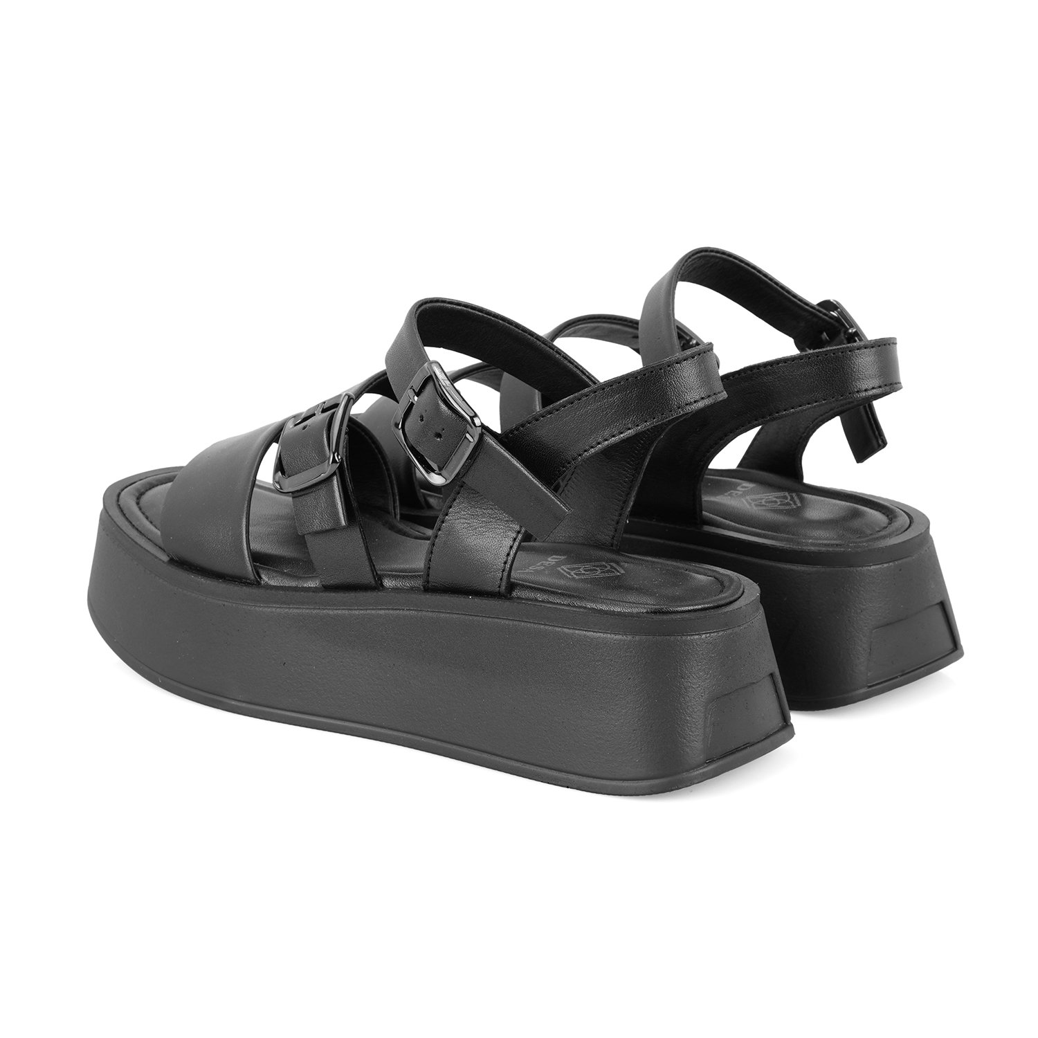 Kadın Siyah Ayarlanabilir Tokalı Deri Sandalet