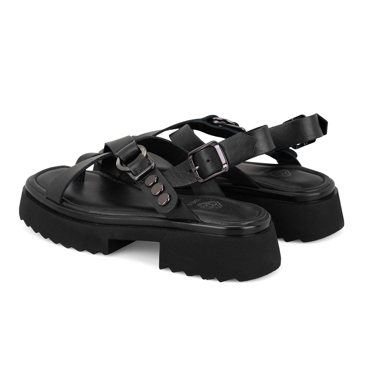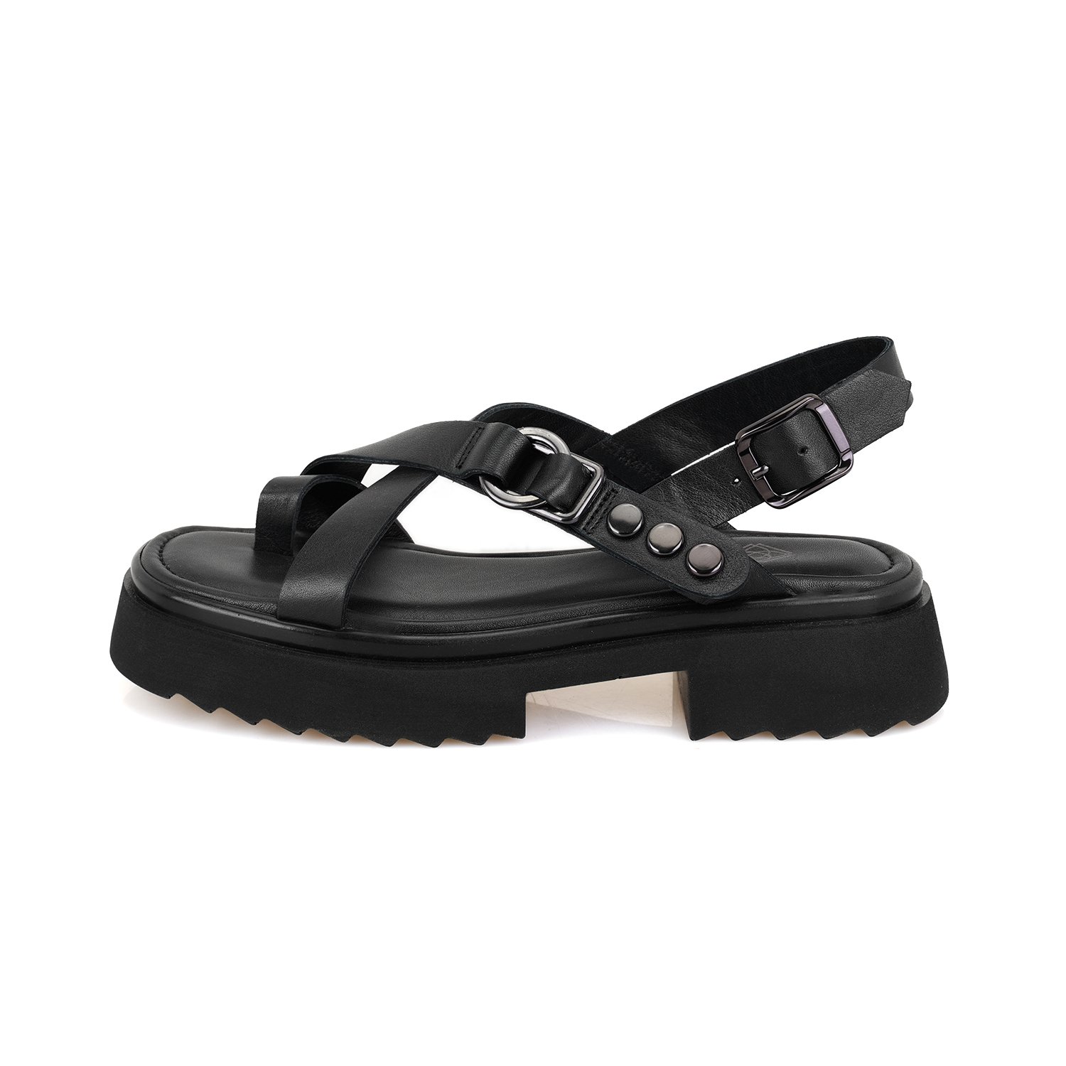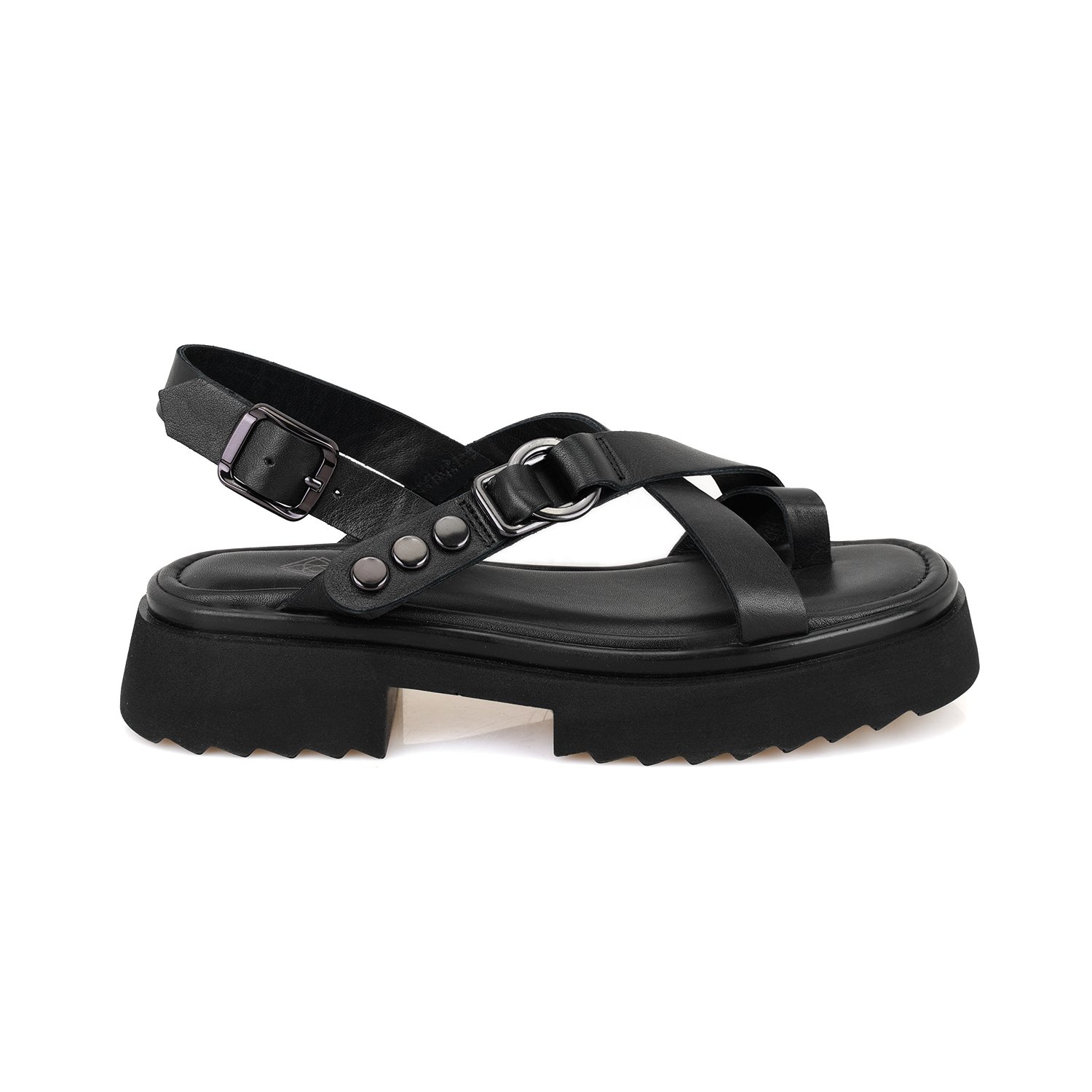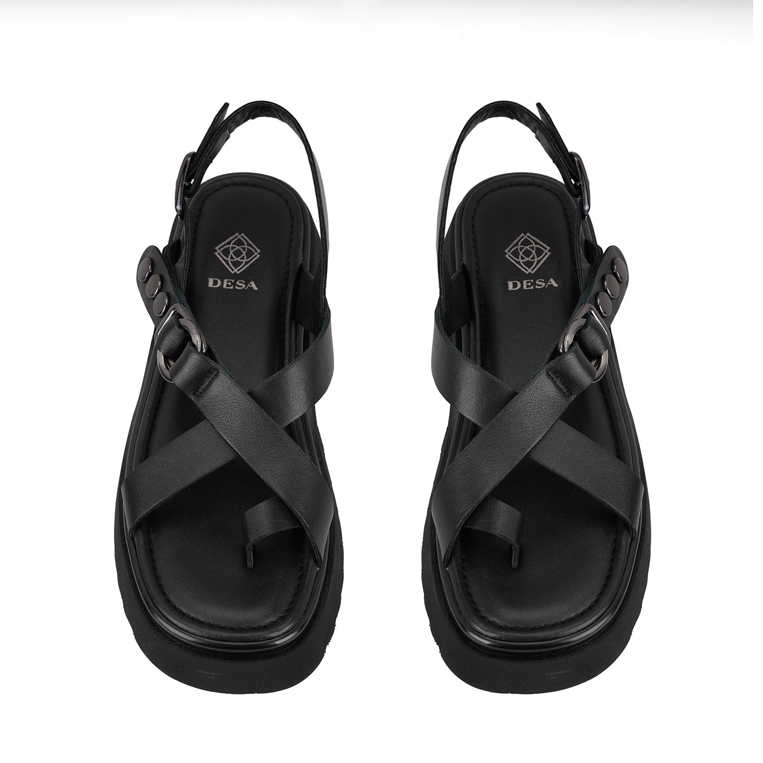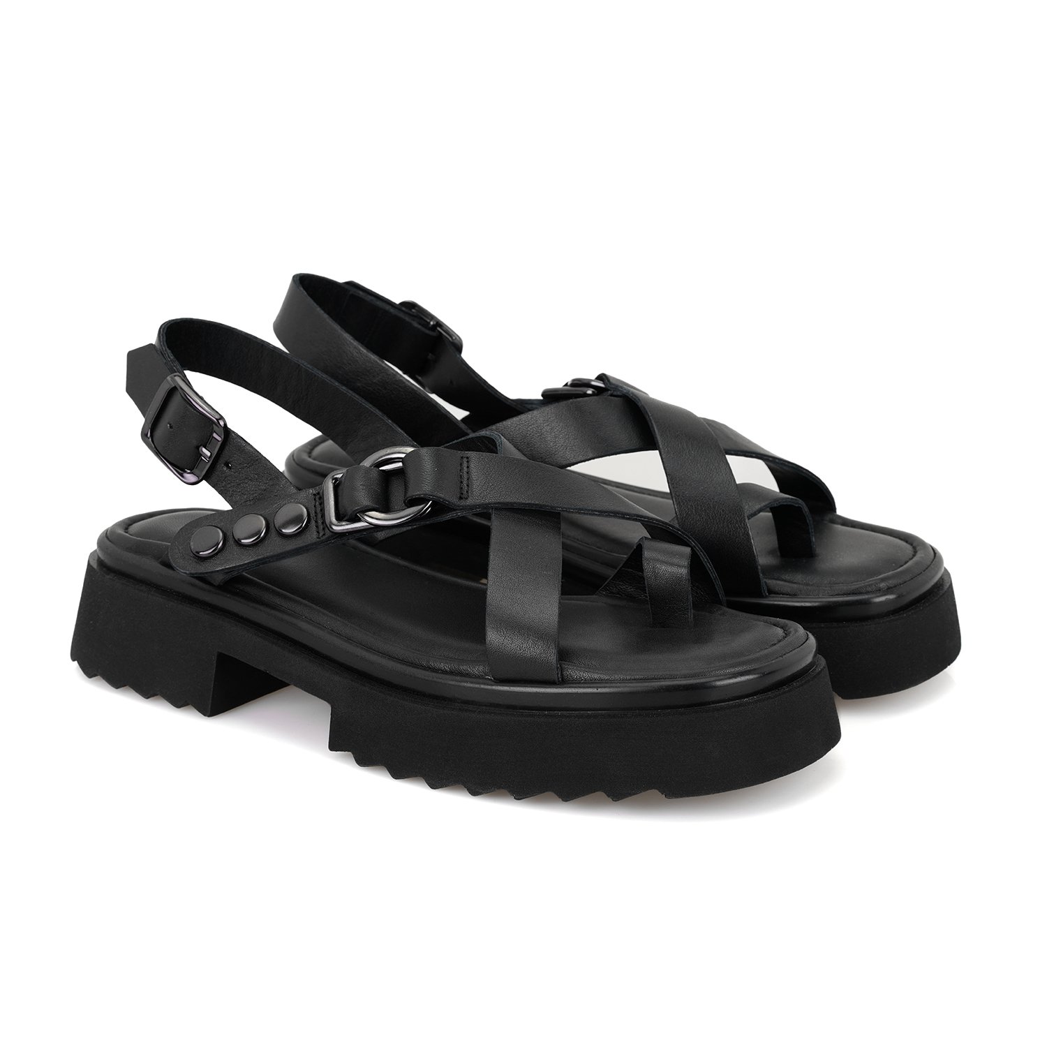 Kadın Siyah Ayarlanabilir Tokalı Deri Sandalet