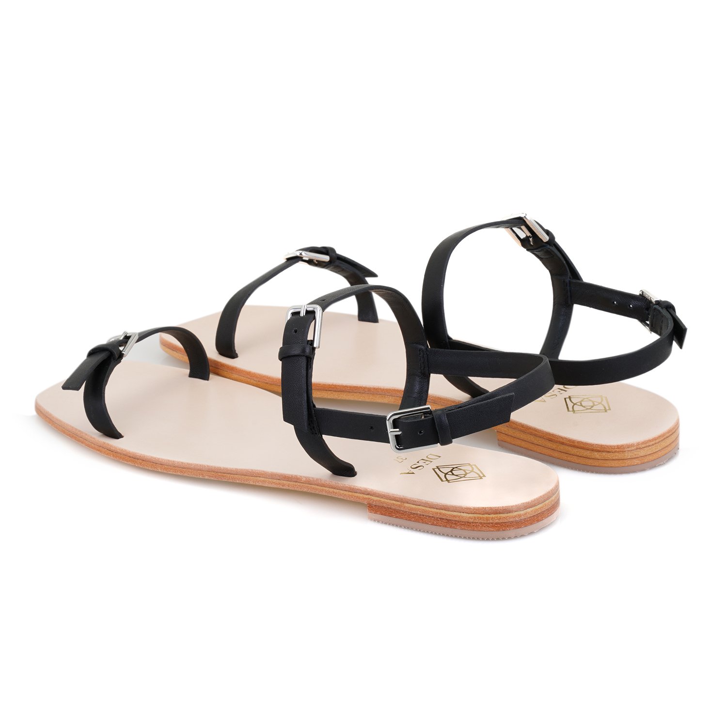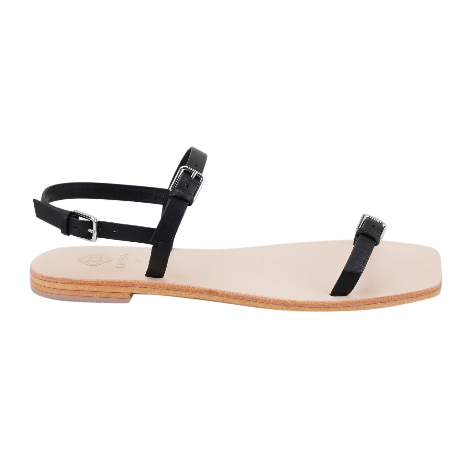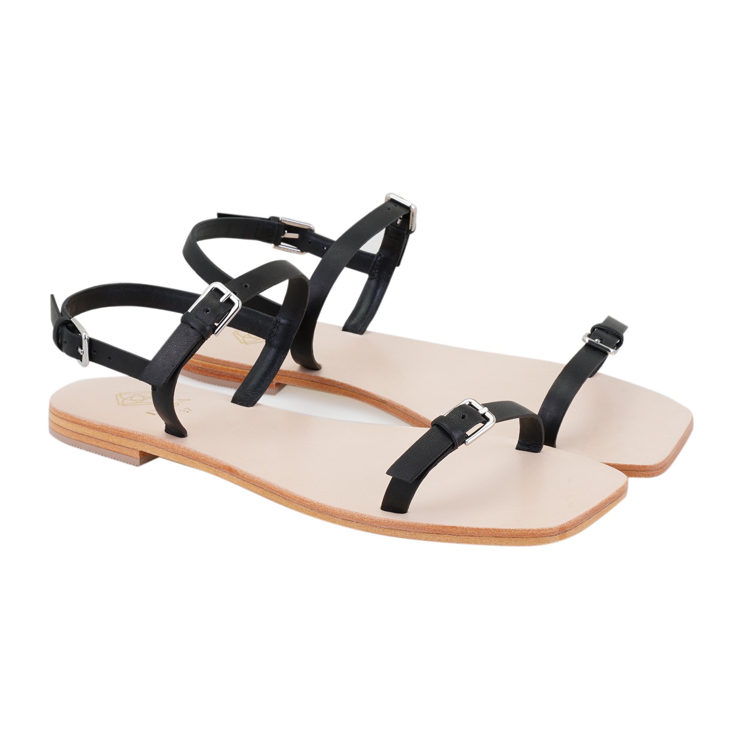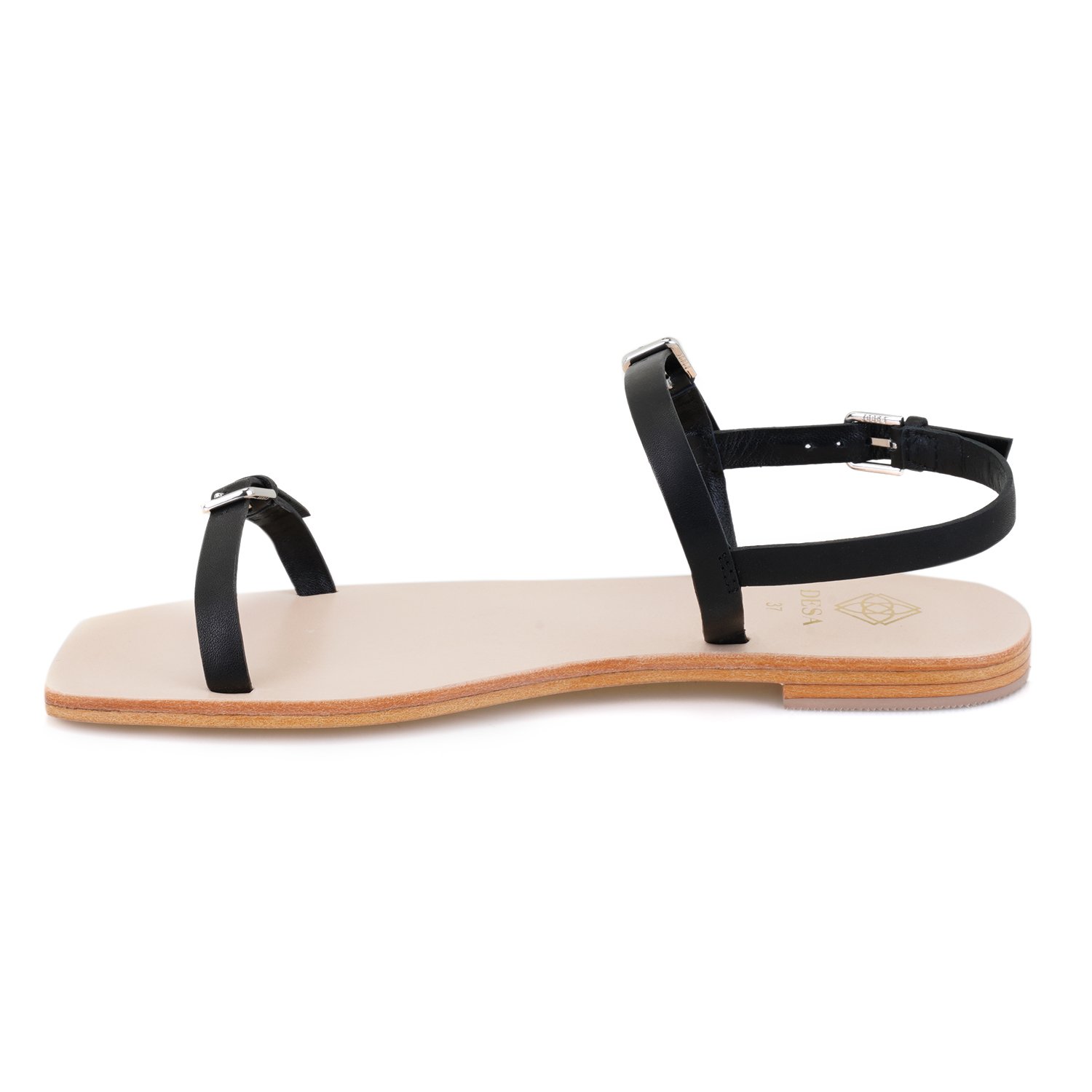 Kadın Siyah Ayarlanabilir Tokalı Deri Sandalet