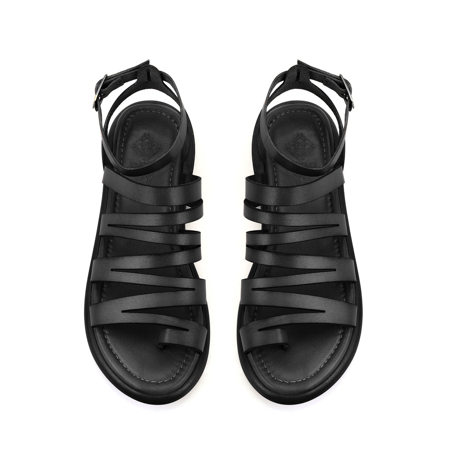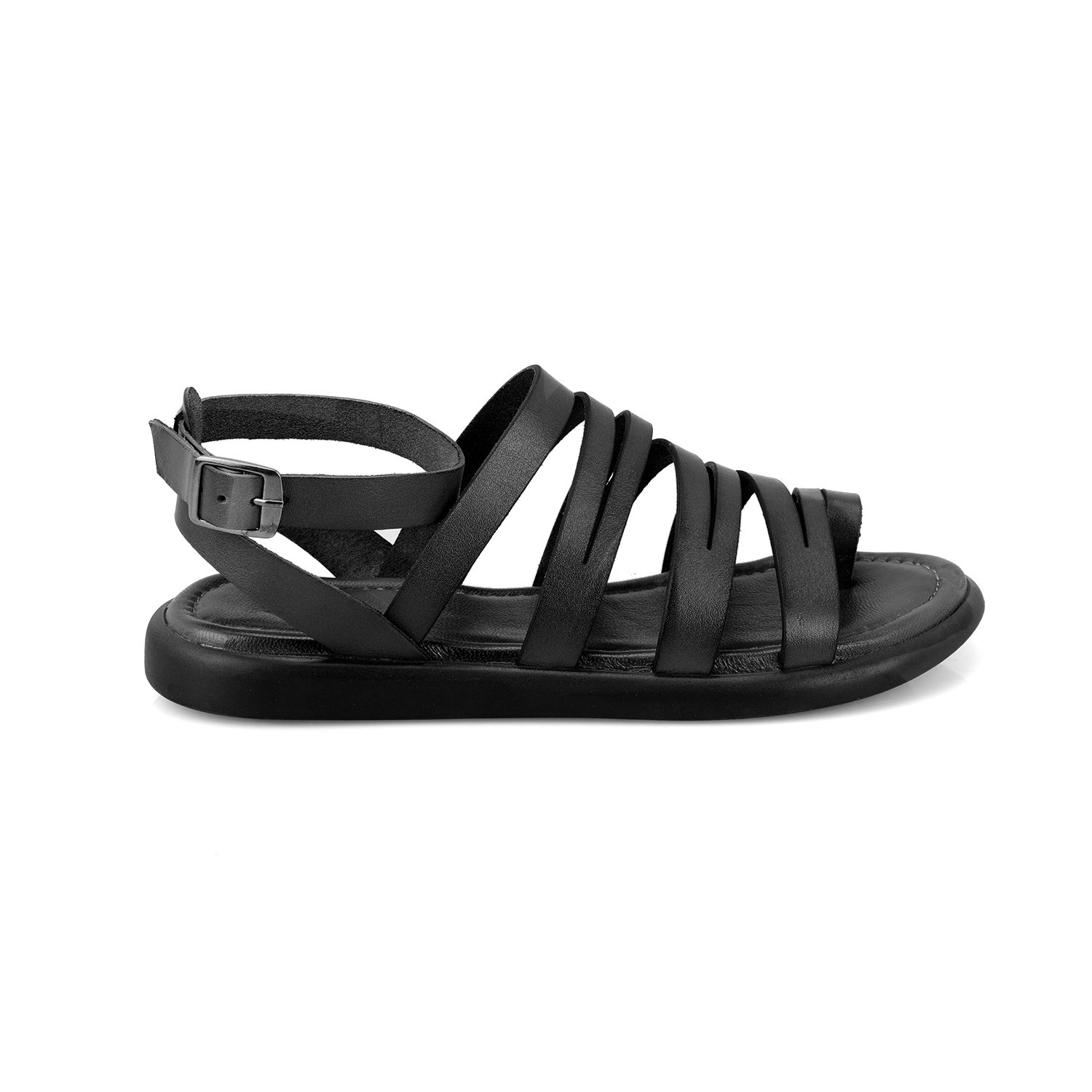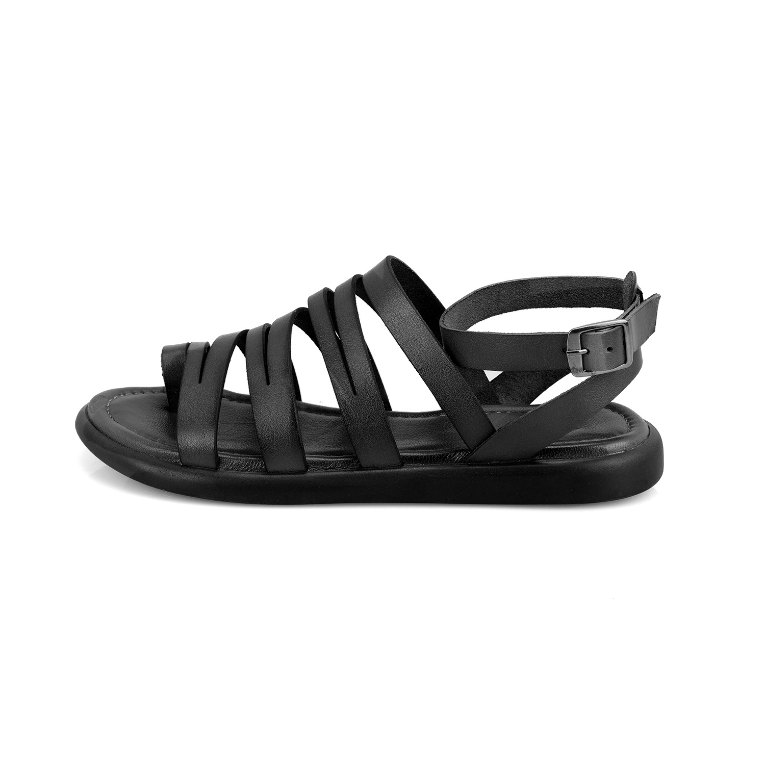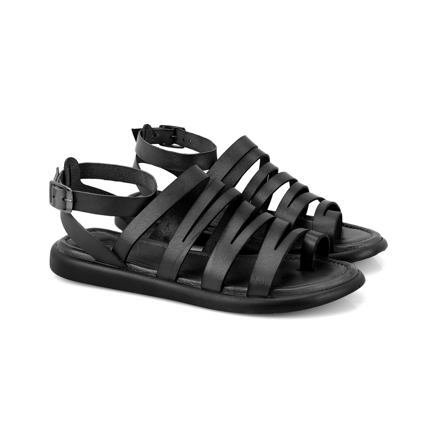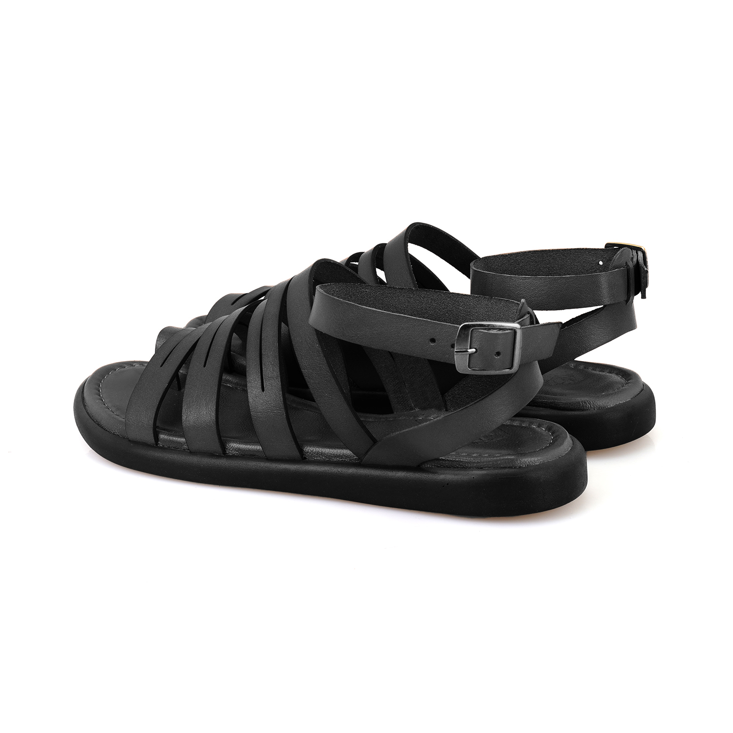 Kadın Siyah Ayarlanabilir Tokalı Deri Sandalet