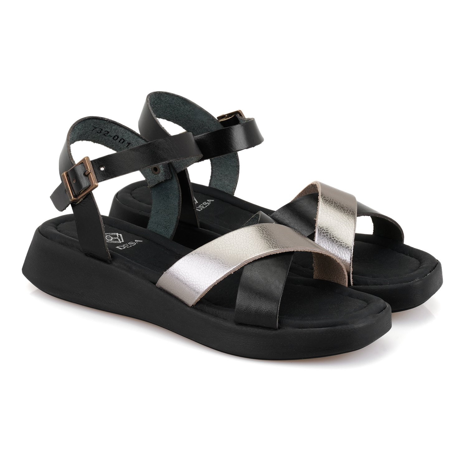 %100 deri, deri iç astarlı, deri iç tabanlı, ayarlanabilir metal tokalı, pu tabanlı, kadın sandalet.