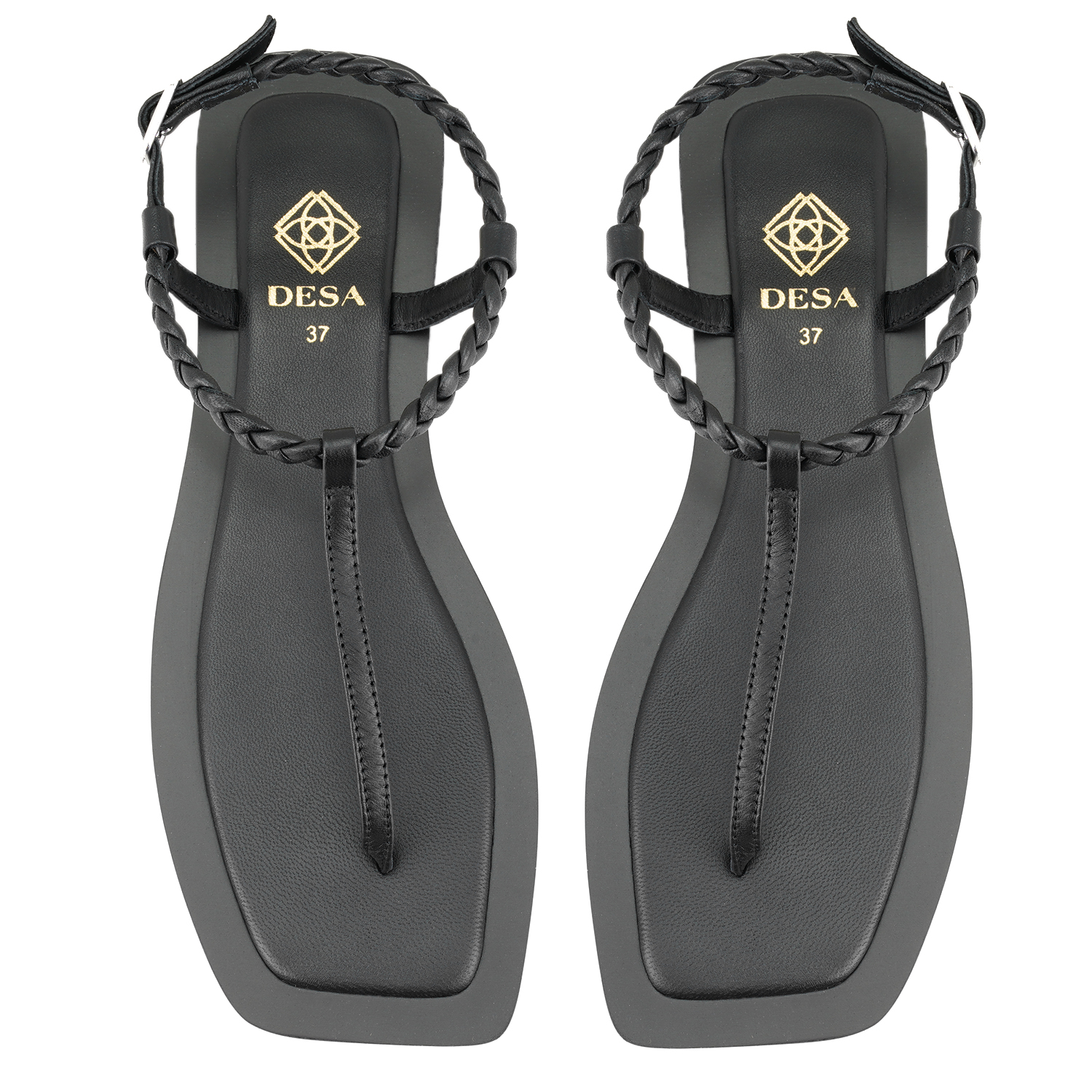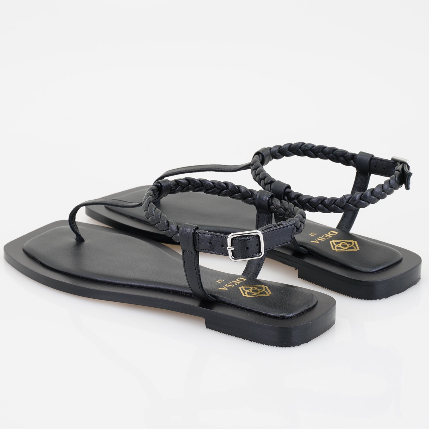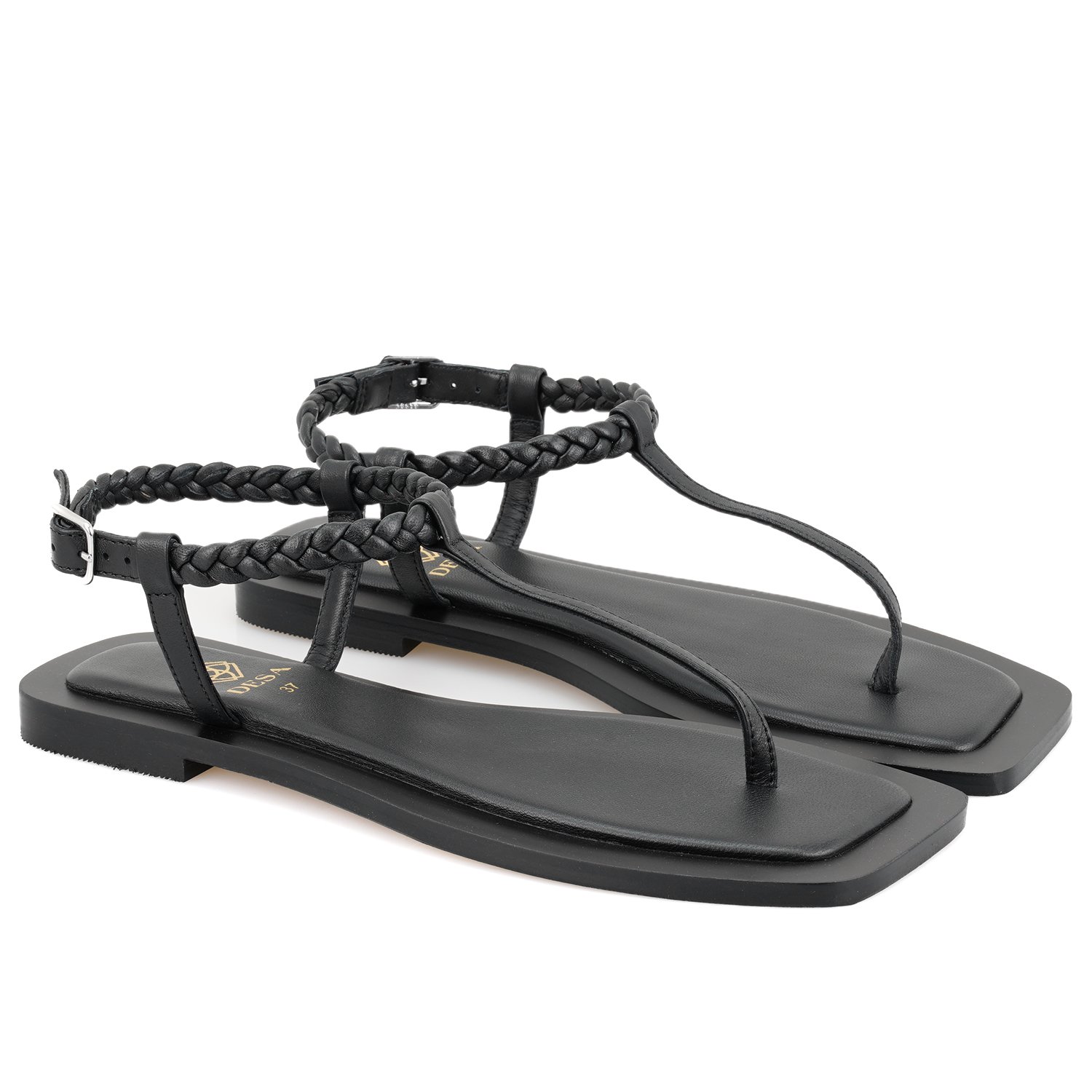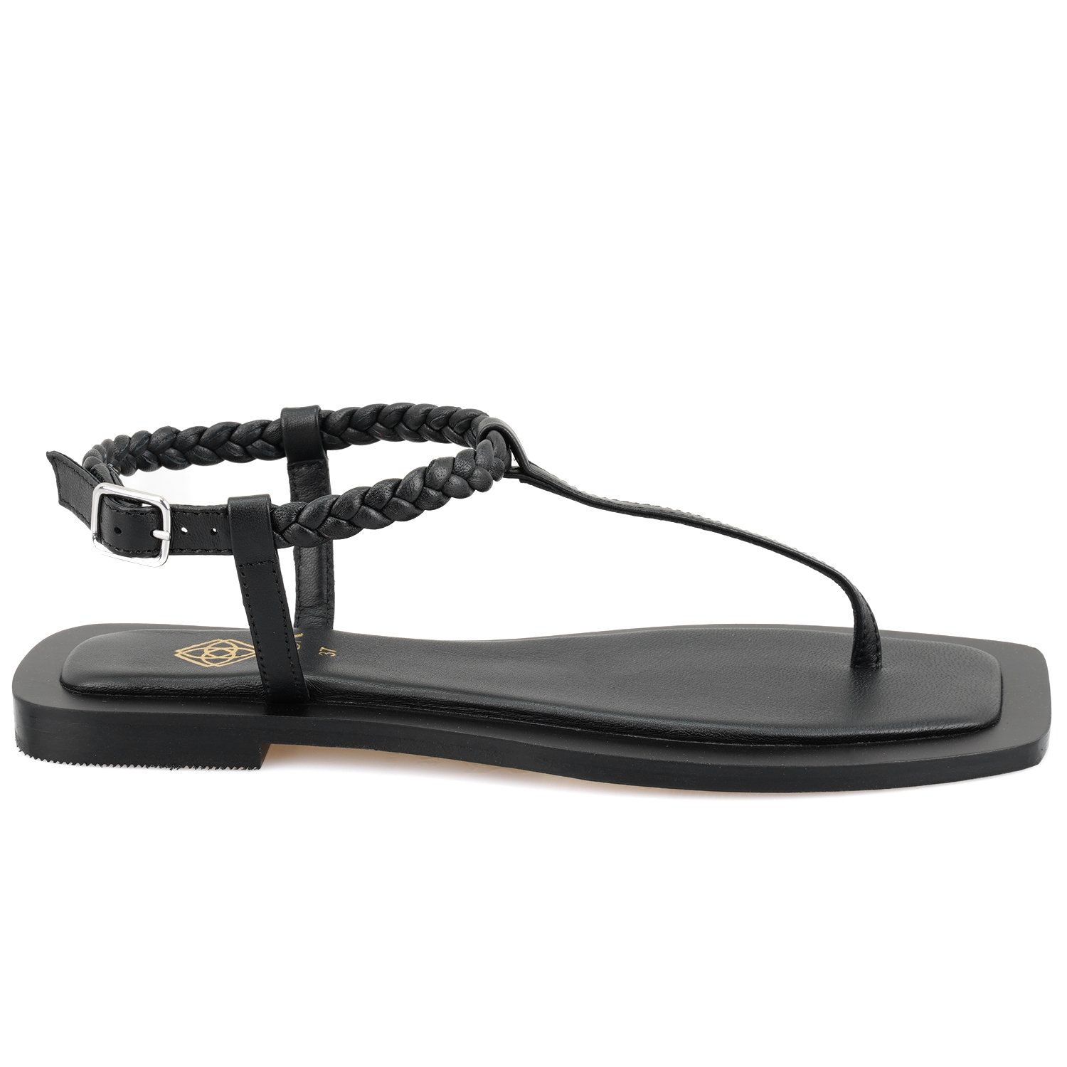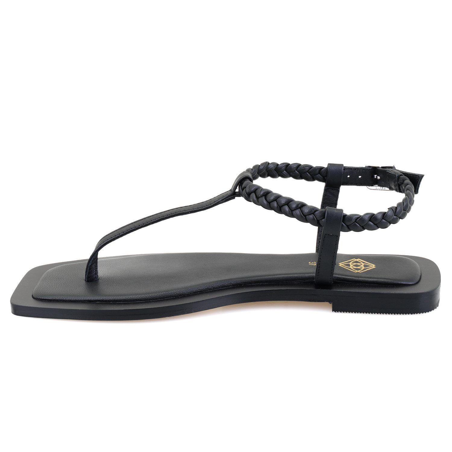 Kadın Siyah Ayarlanabilir Tokalı Deri Sandalet