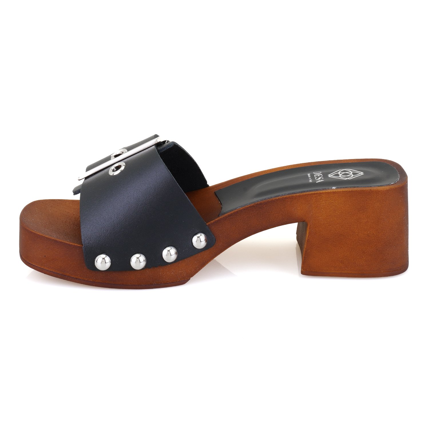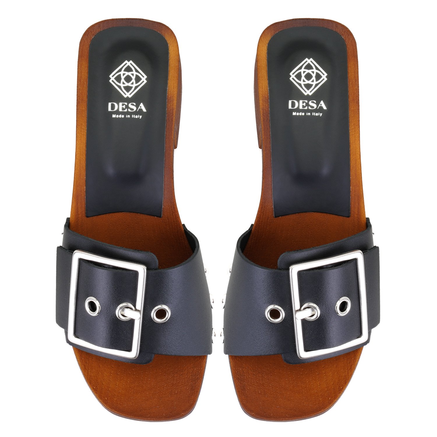 Kadın Siyah Ayarlanabilir Tokalı Deri Terlik