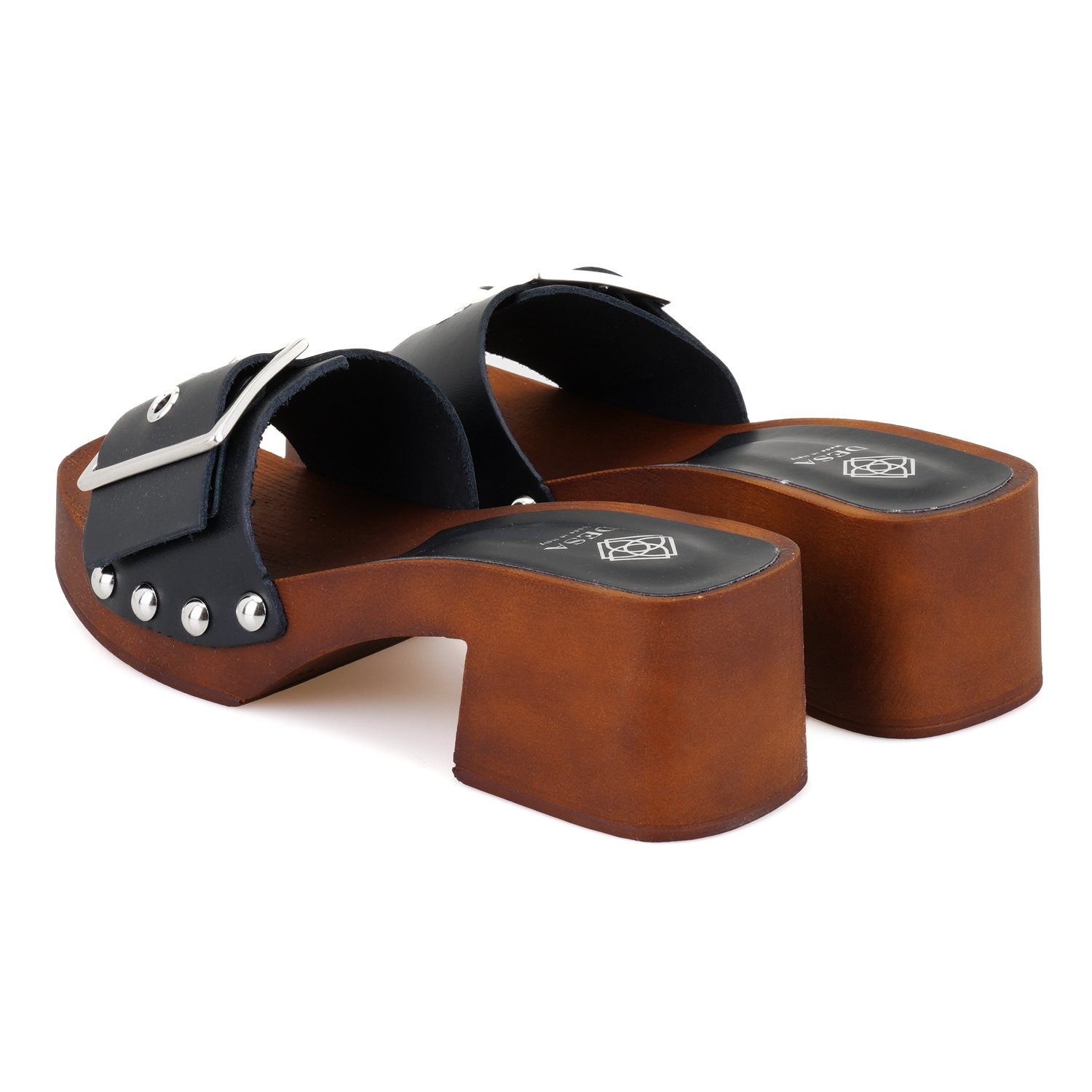 %100 vegetal deri, astarsız, deri iç tabanlı, ayarlanabilir metal toka detaylı, kadın terlik.