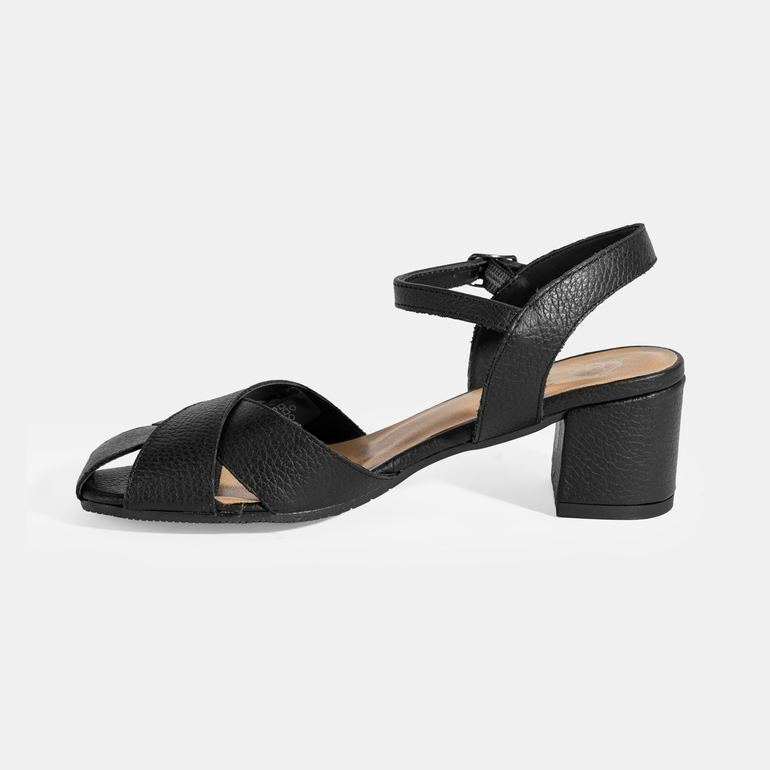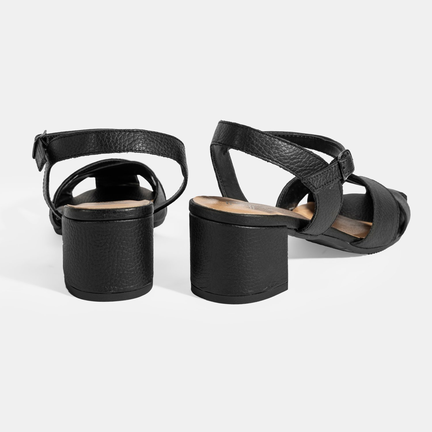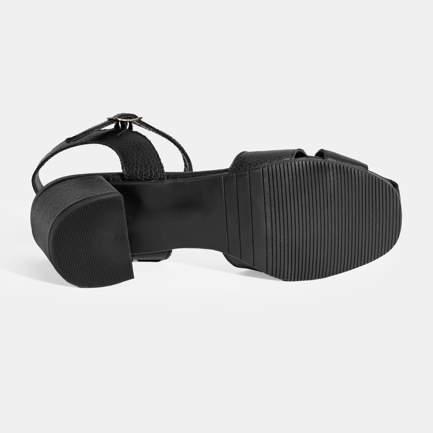 Kadın Siyah Ayarlanabilir Tokalı Deri Topuklu Sandalet