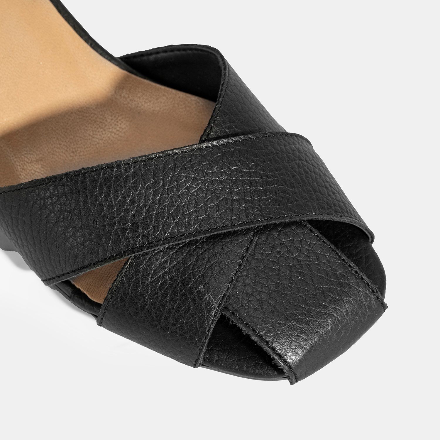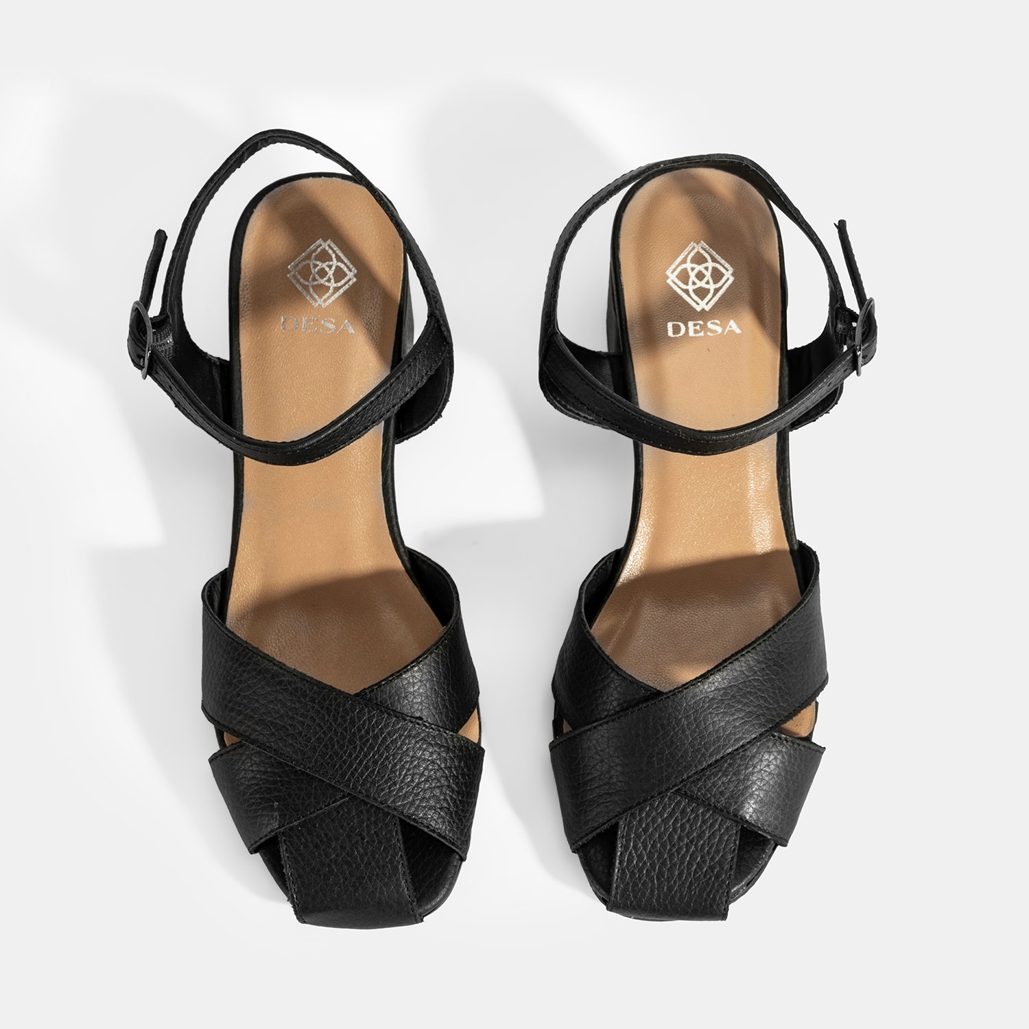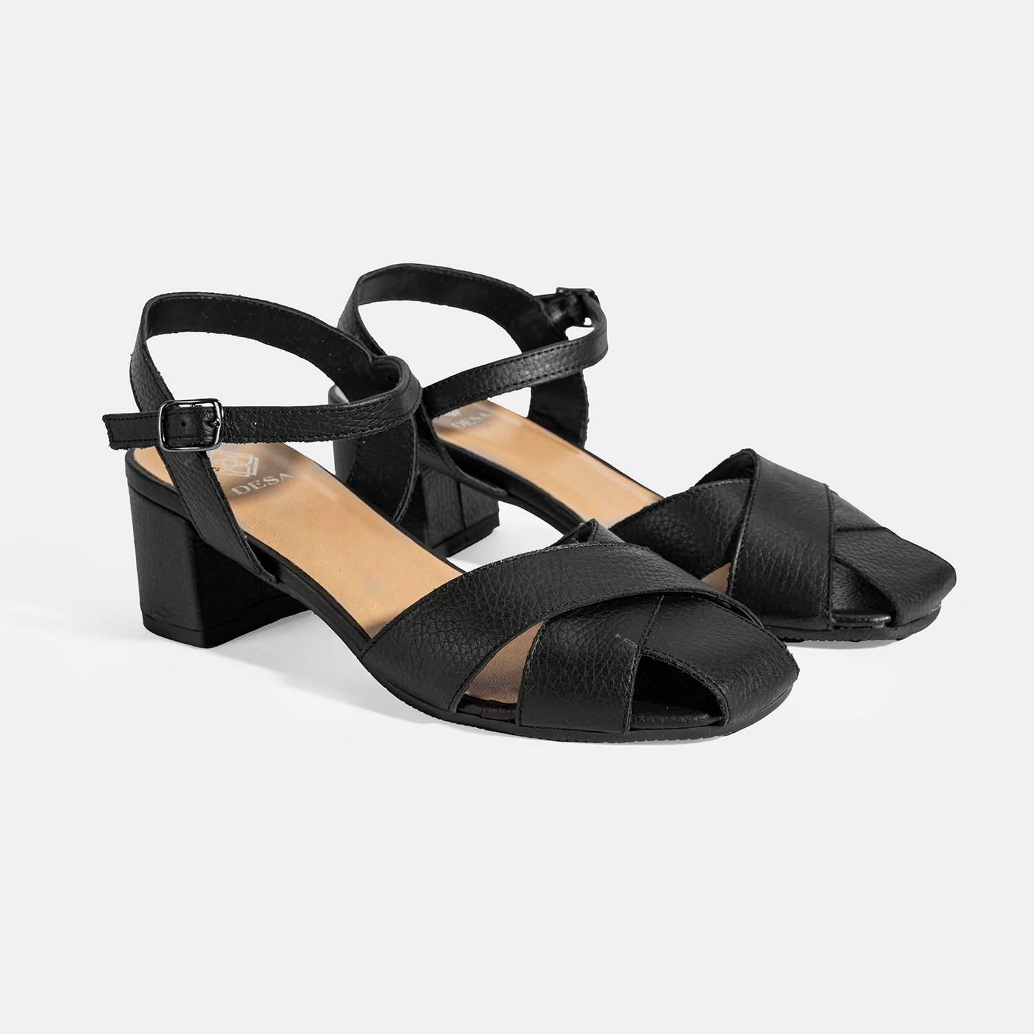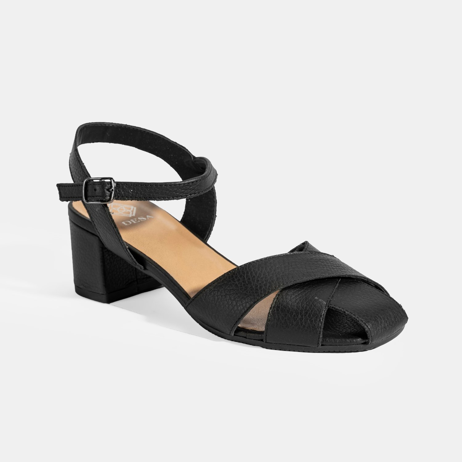 Kadın Siyah Ayarlanabilir Tokalı Deri Topuklu Sandalet