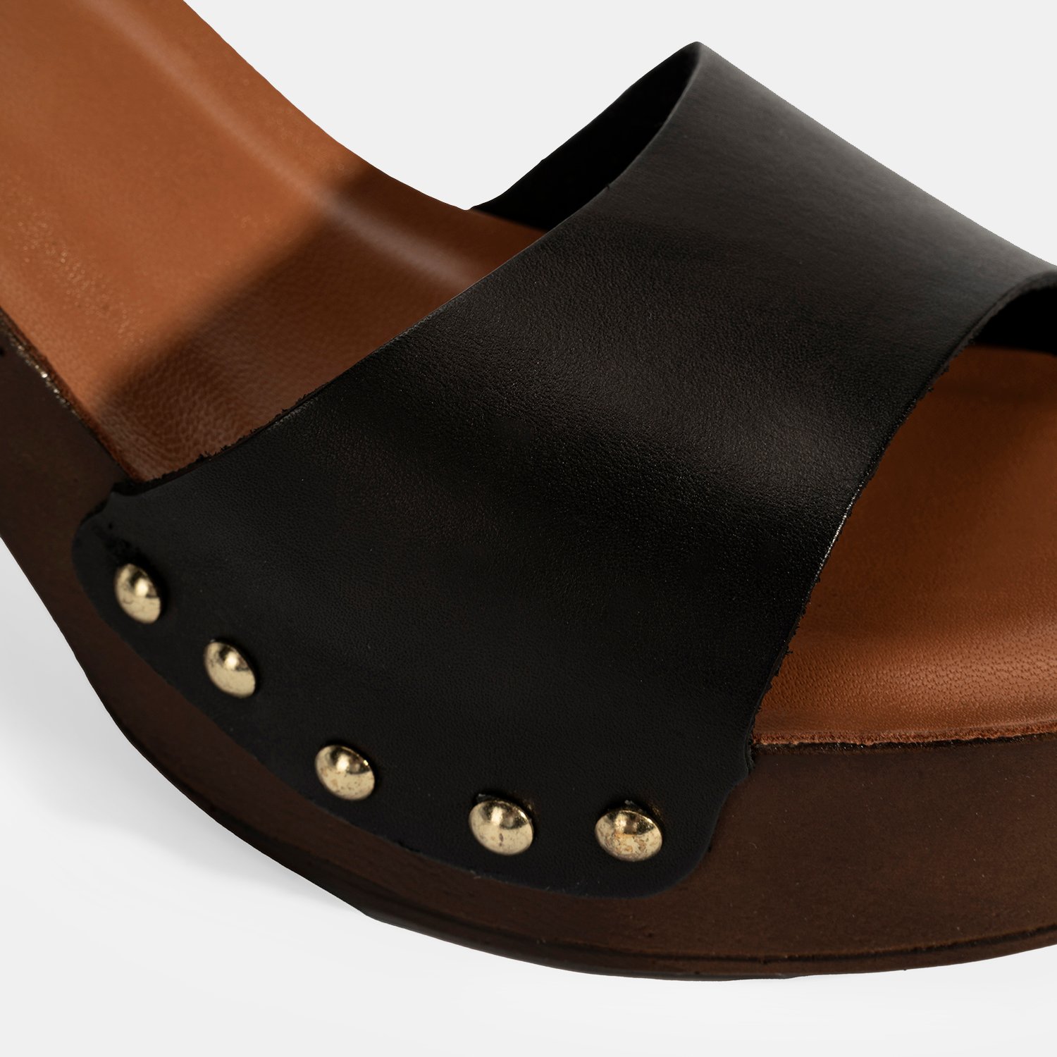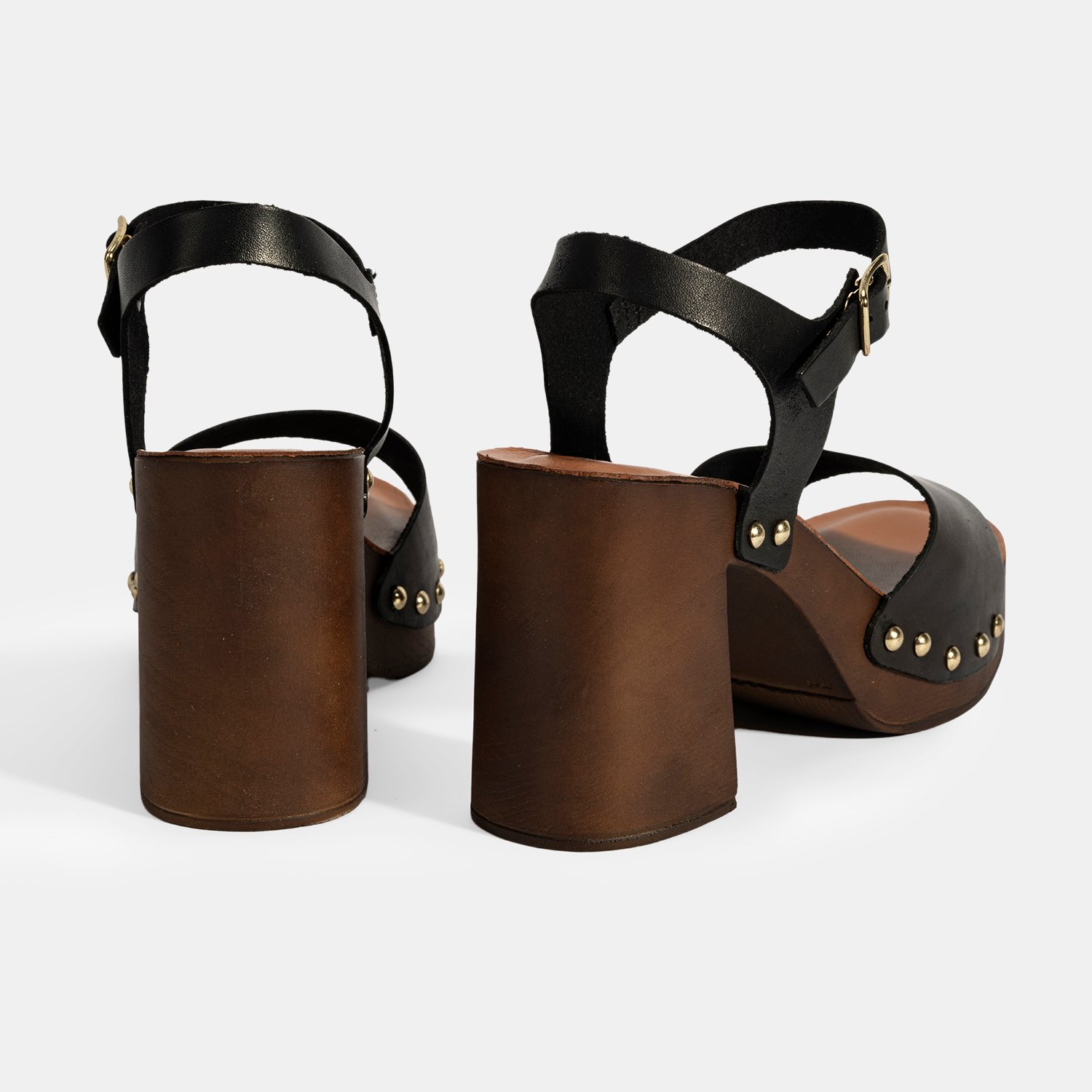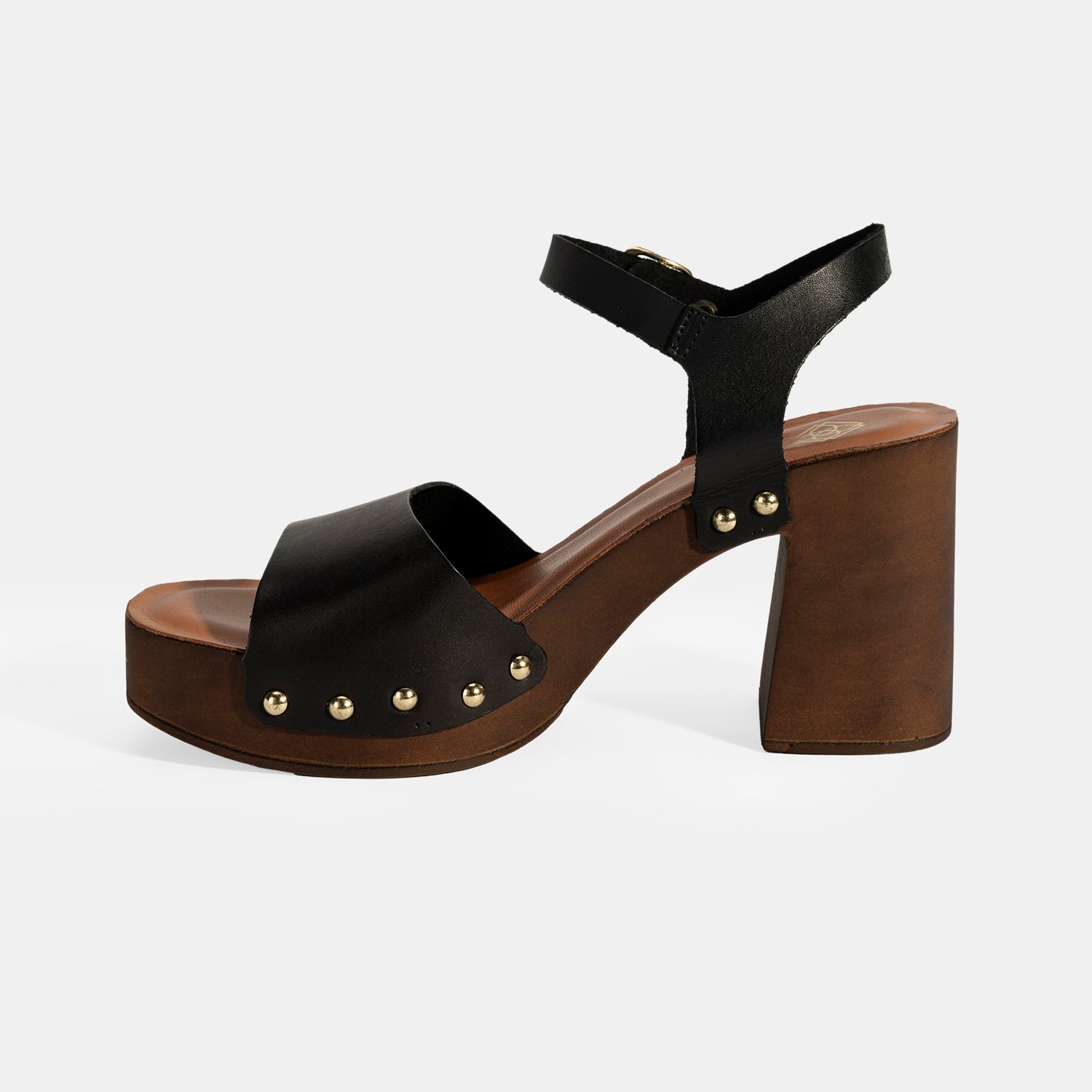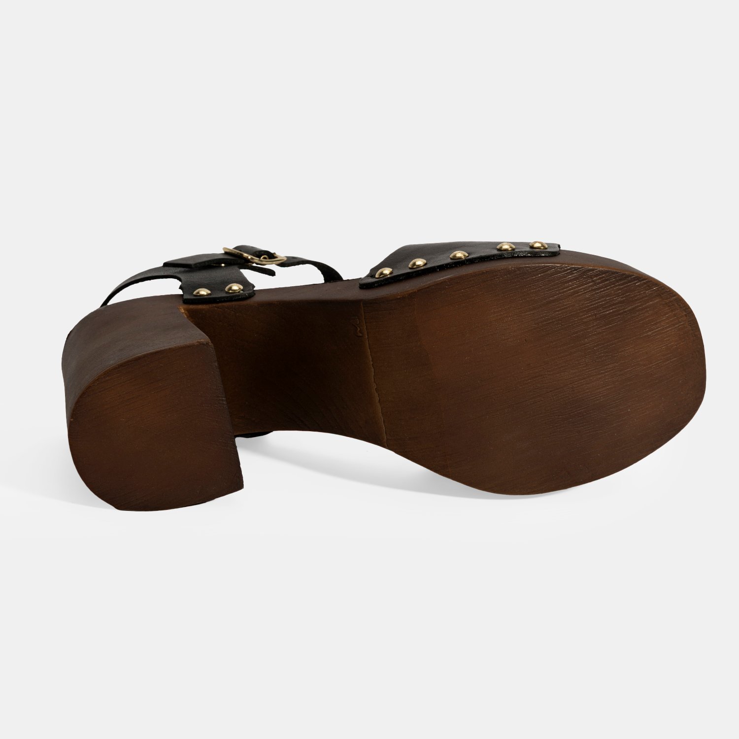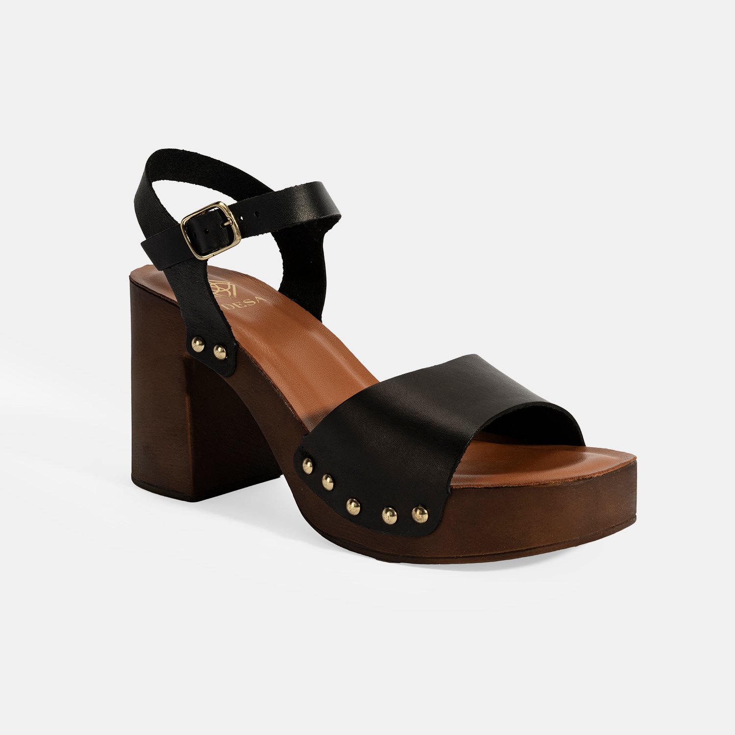 Kadın Siyah Ayarlanabilir Tokalı Deri Topuklu Sandalet