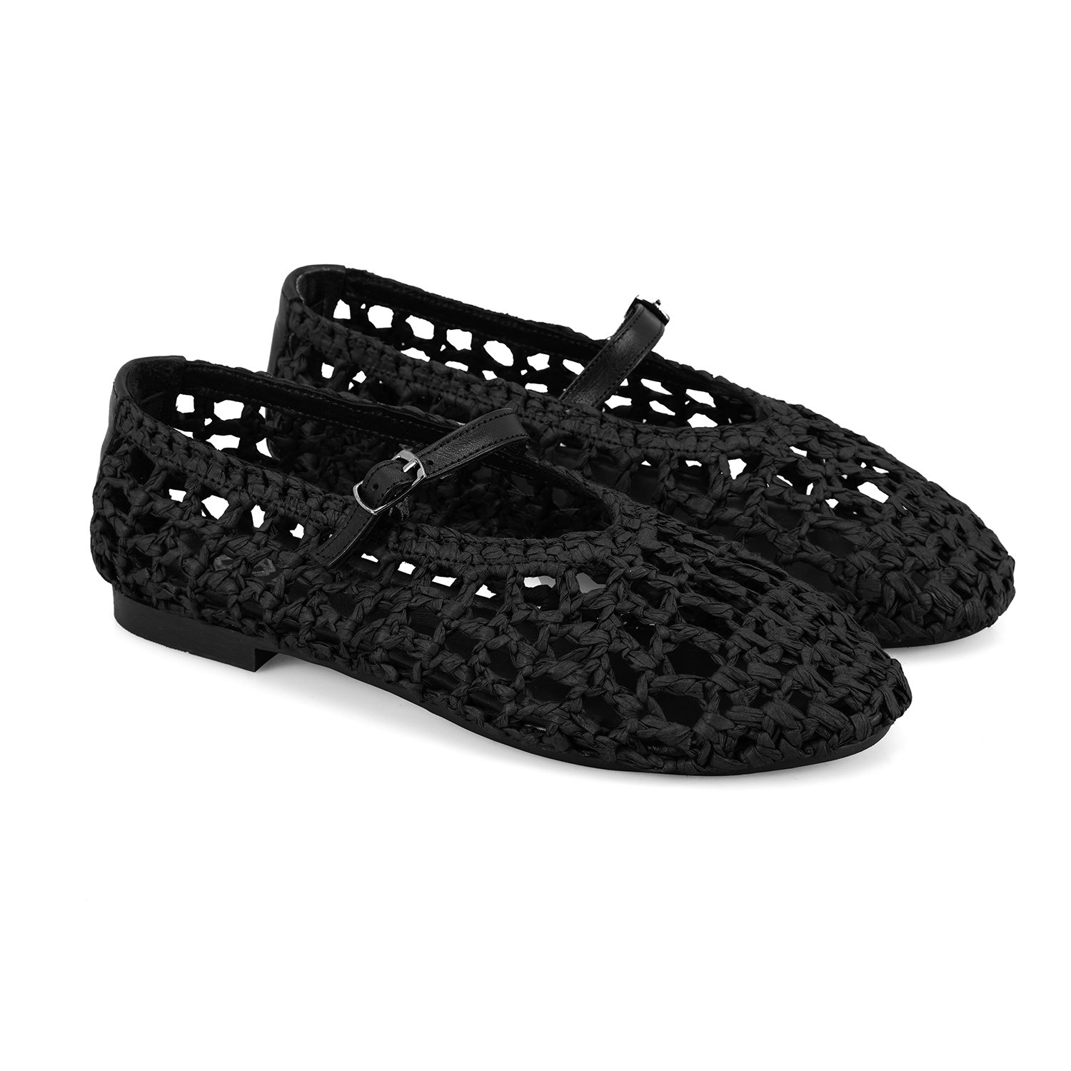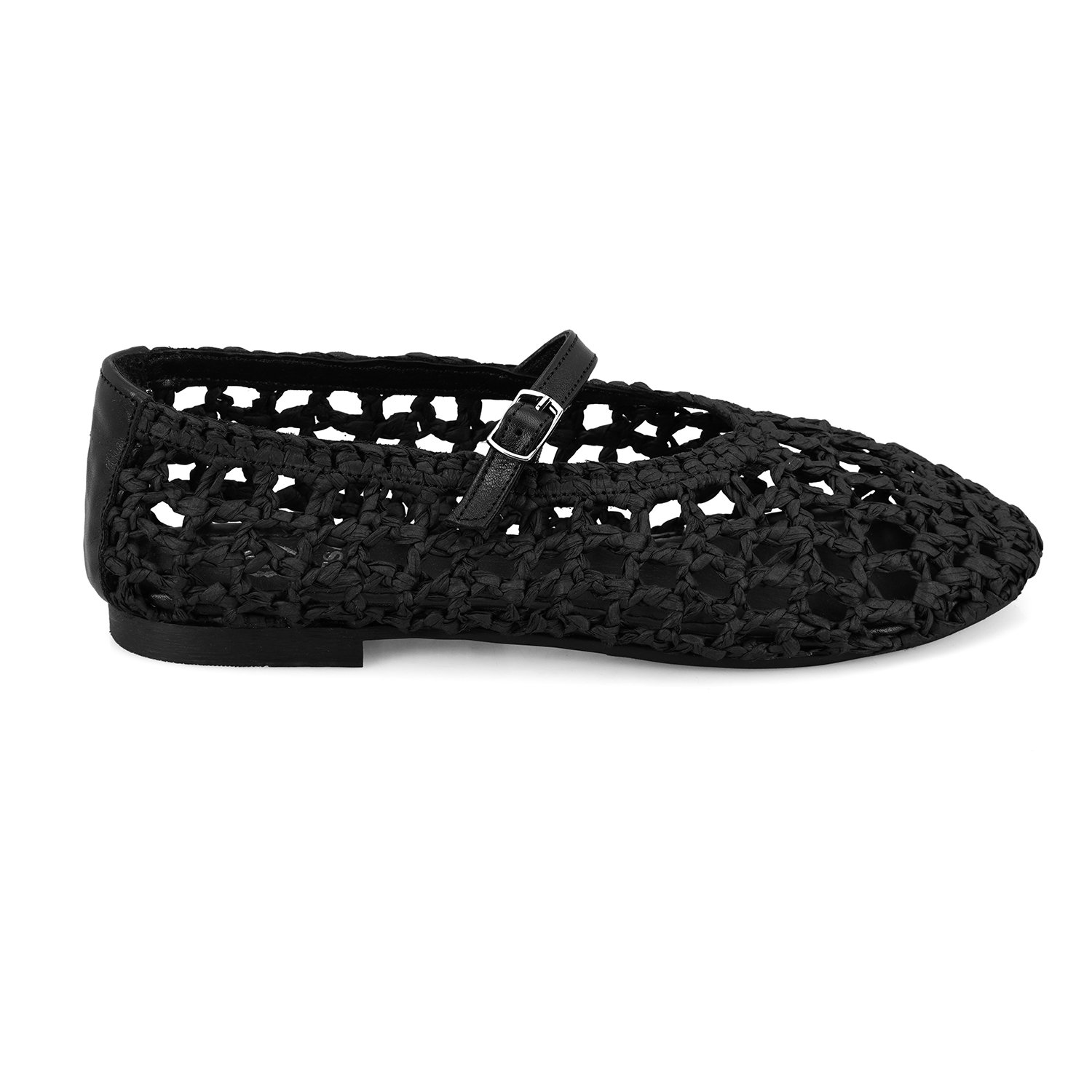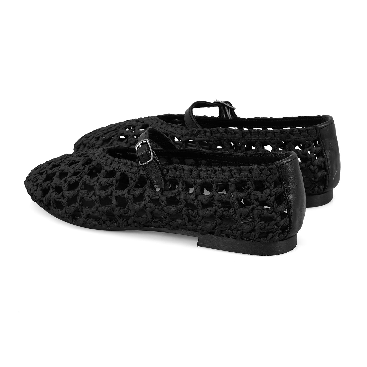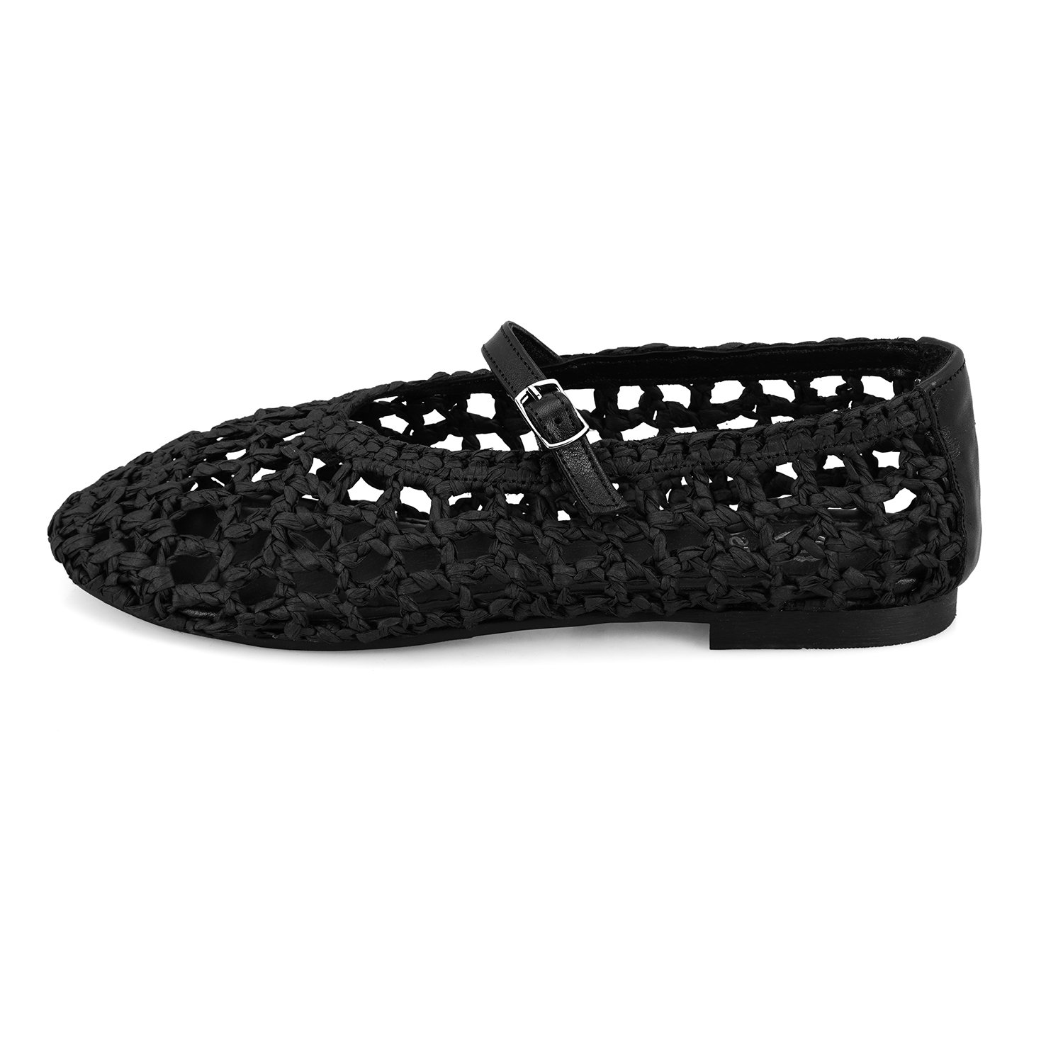 Kadın Siyah Ayarlanabilir Tokalı Hasır Babet