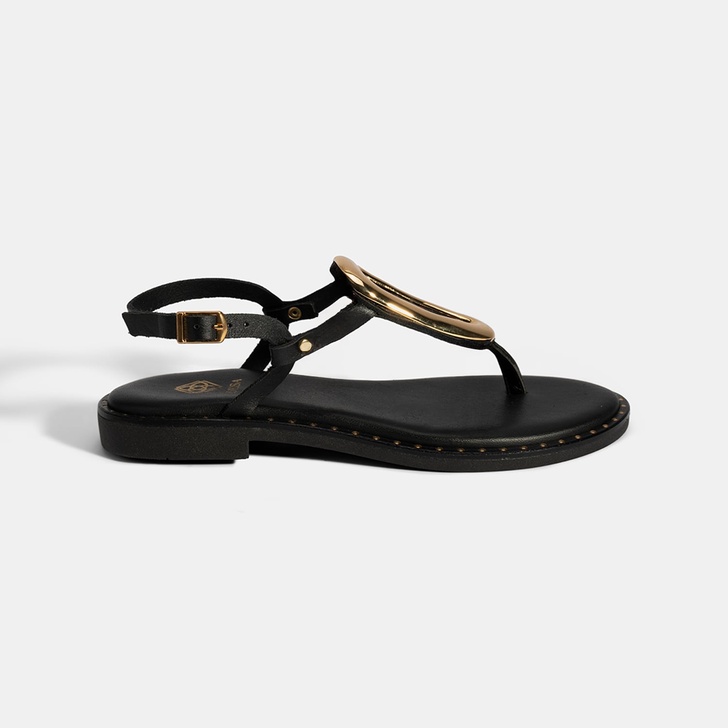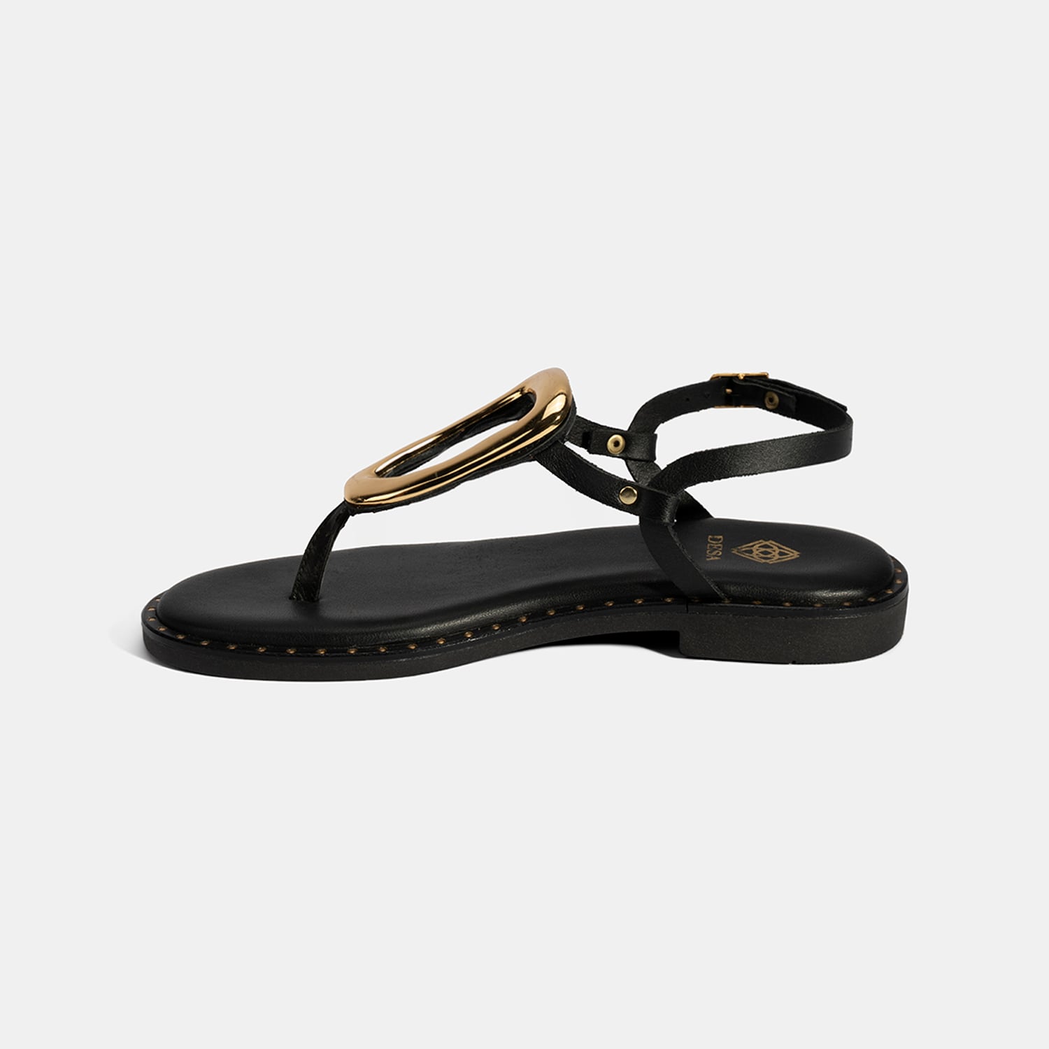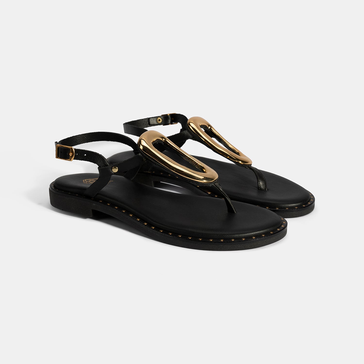 Kadın Siyah Ayarlanabilir Tokalı Parmak Arası Deri Terlik