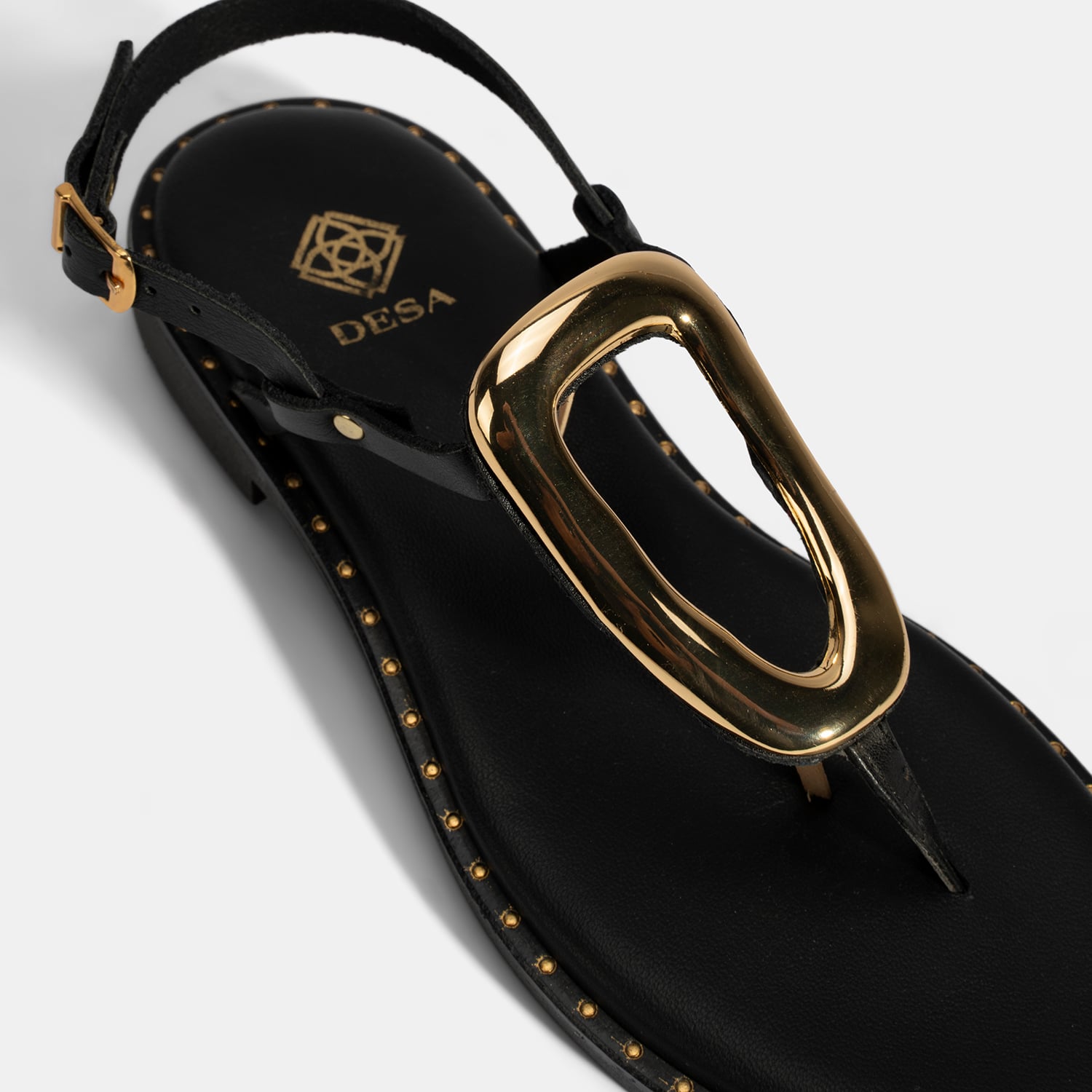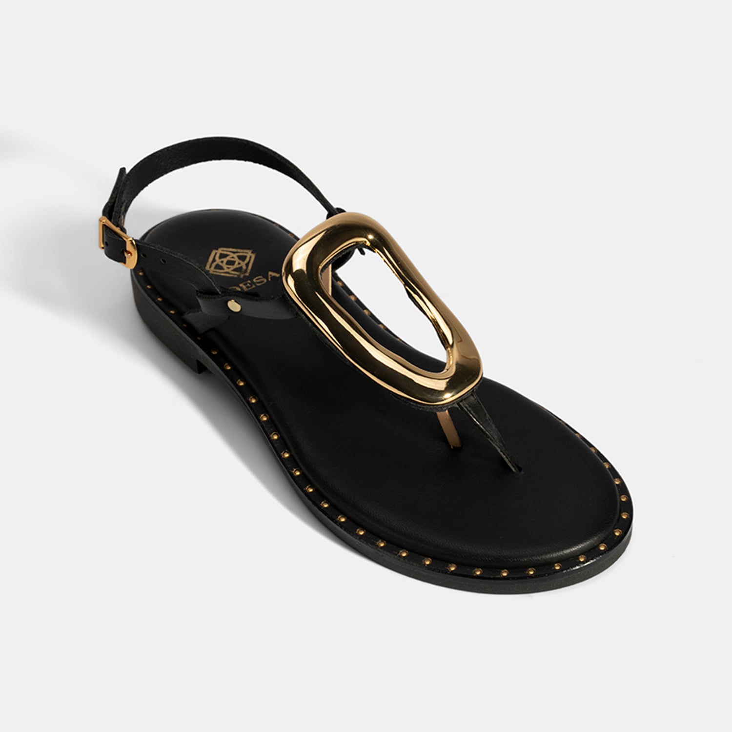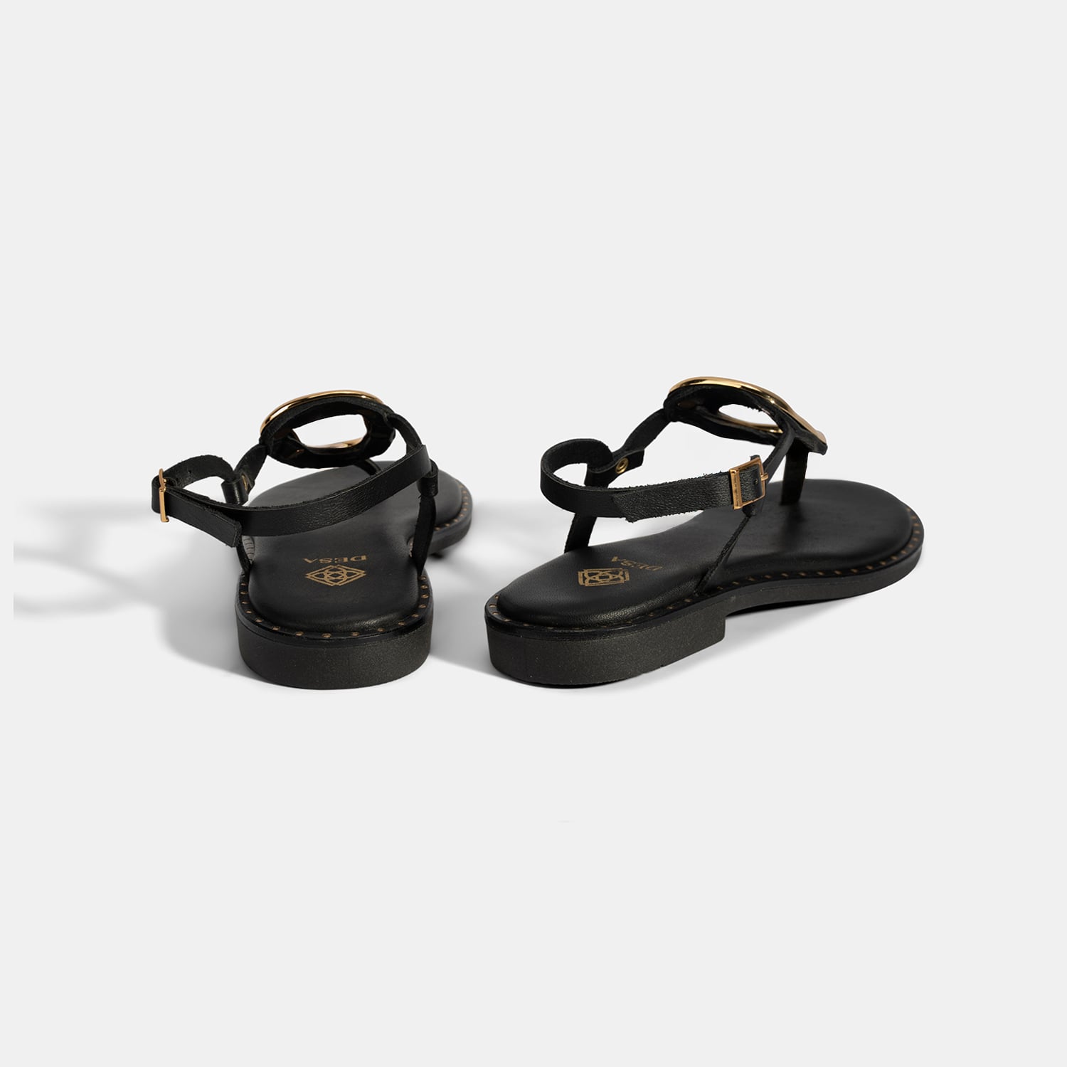 Kadın Siyah Ayarlanabilir Tokalı Parmak Arası Deri Terlik