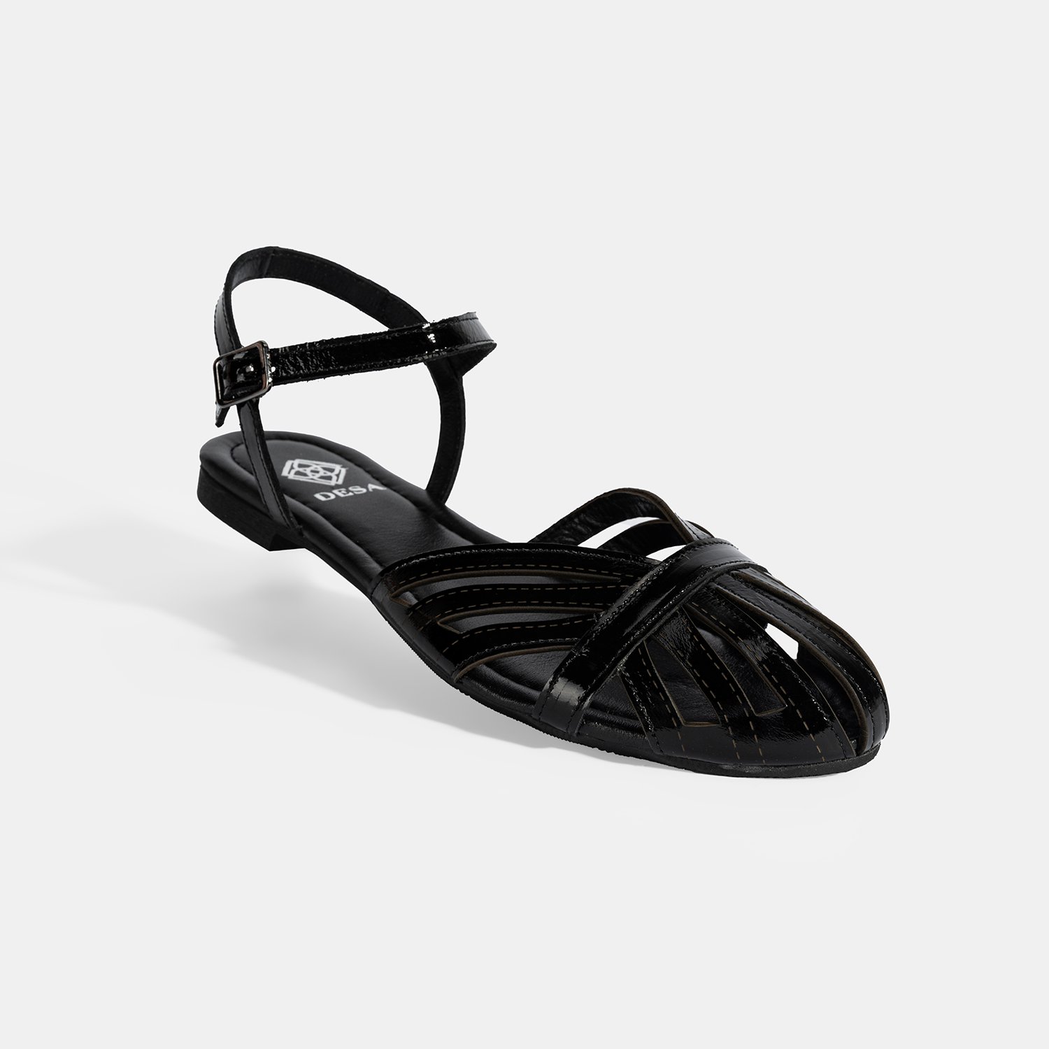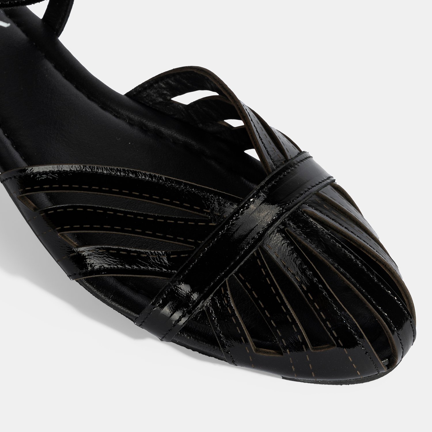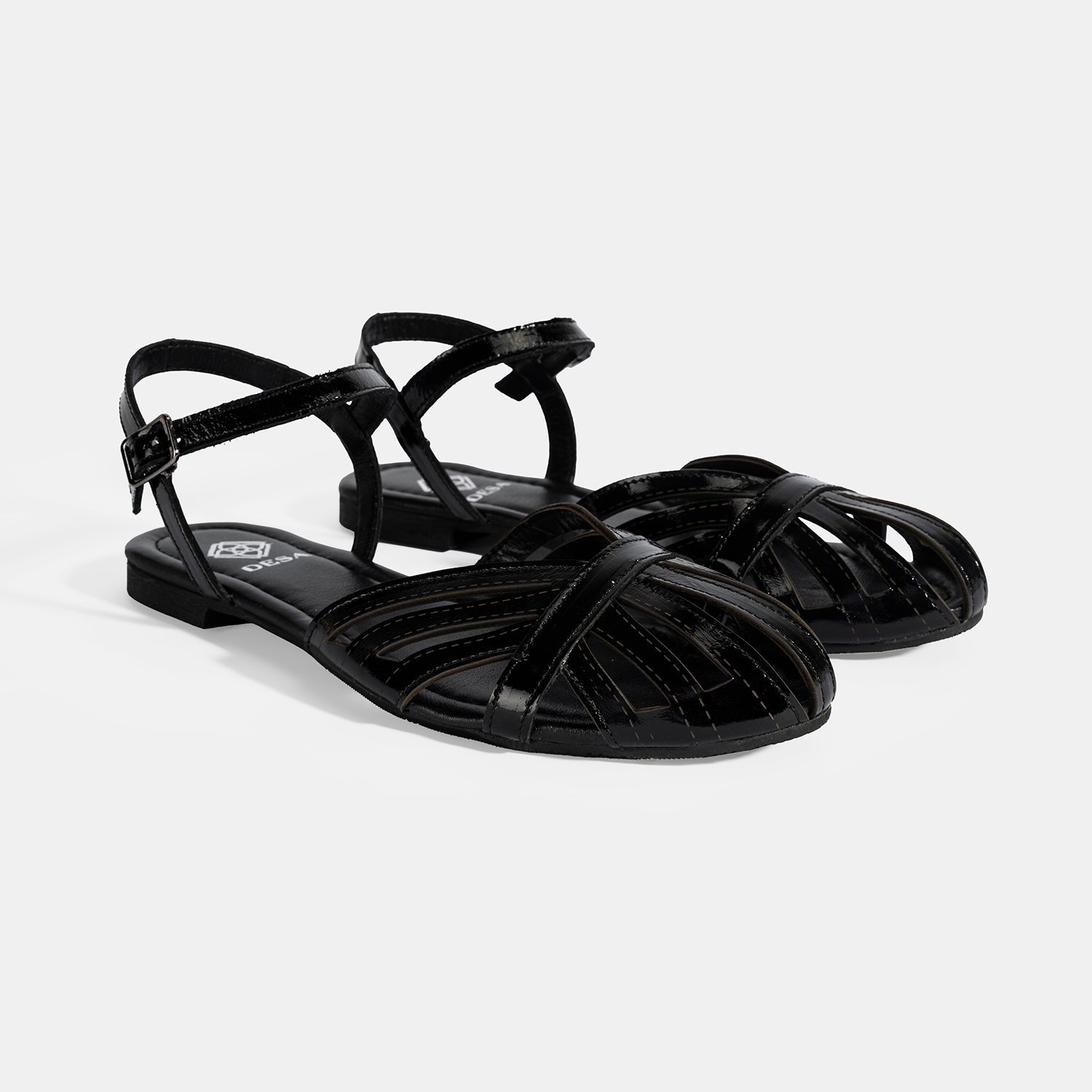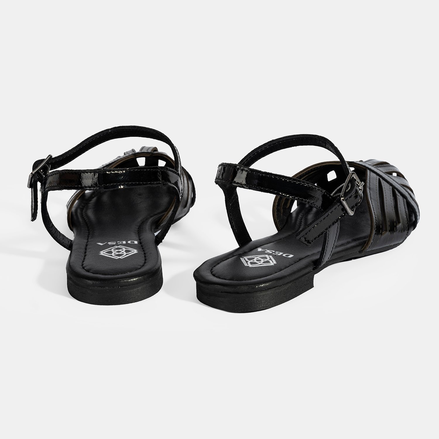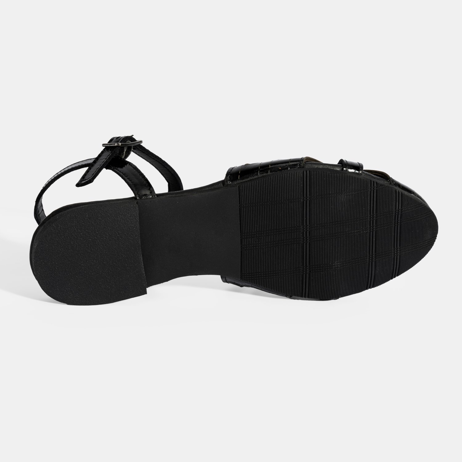 Kadın Siyah Ayarlanabilir Tokalı Rugan Sandalet