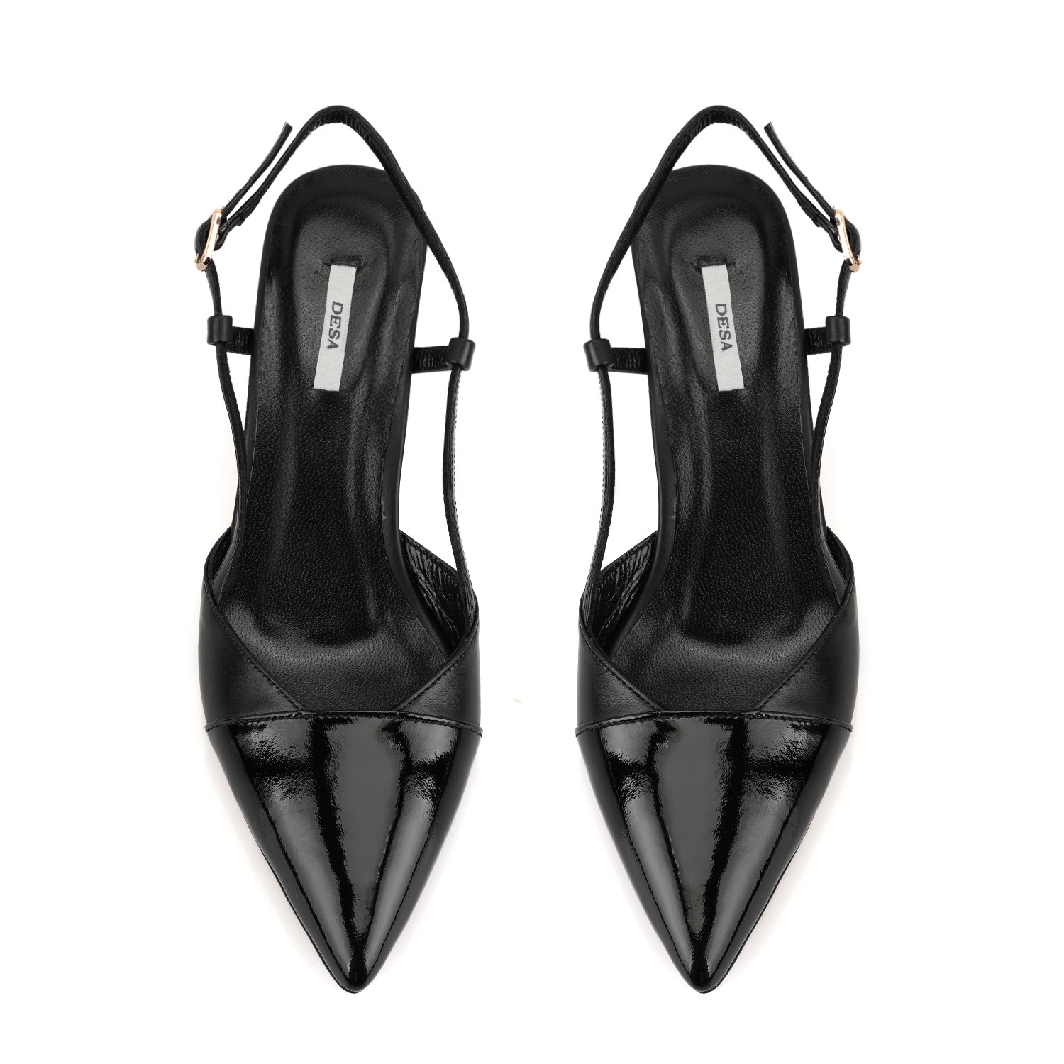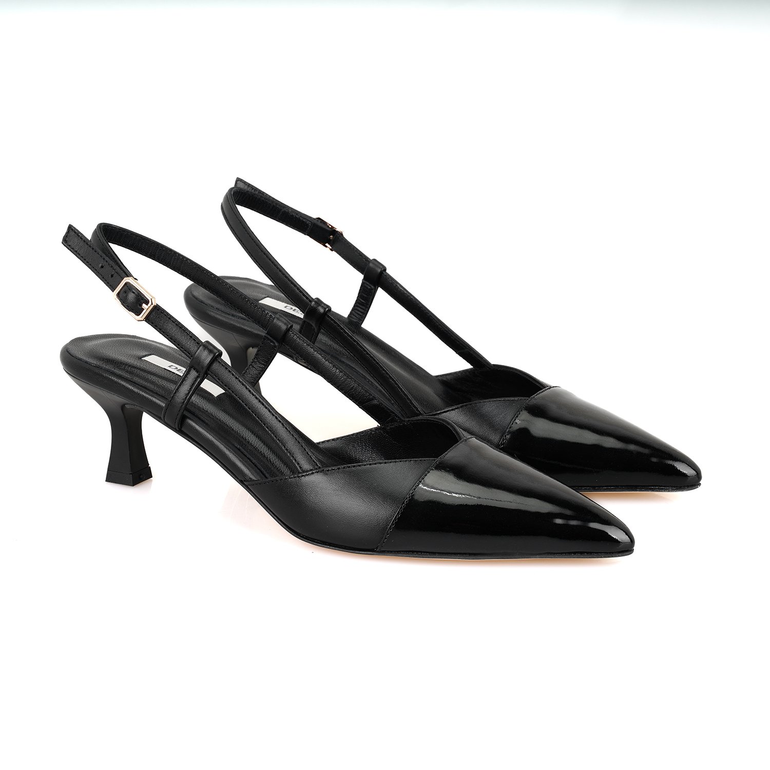 Kadın Siyah Ayarlanabilir Tokalı Topuklu Deri Abiye Ayakkabı