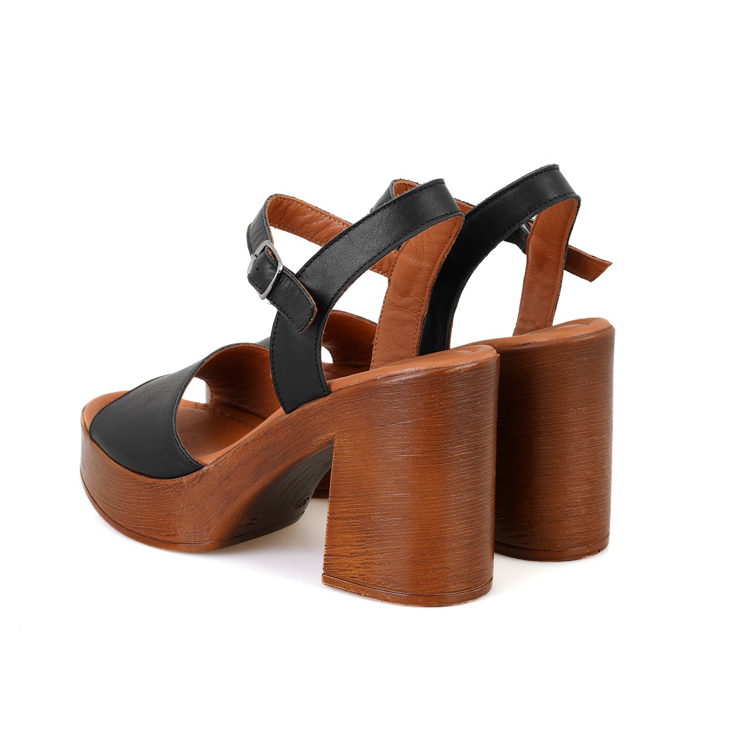 Kadın Siyah Ayarlanabilir Tokalı Topuklu Deri Sandalet