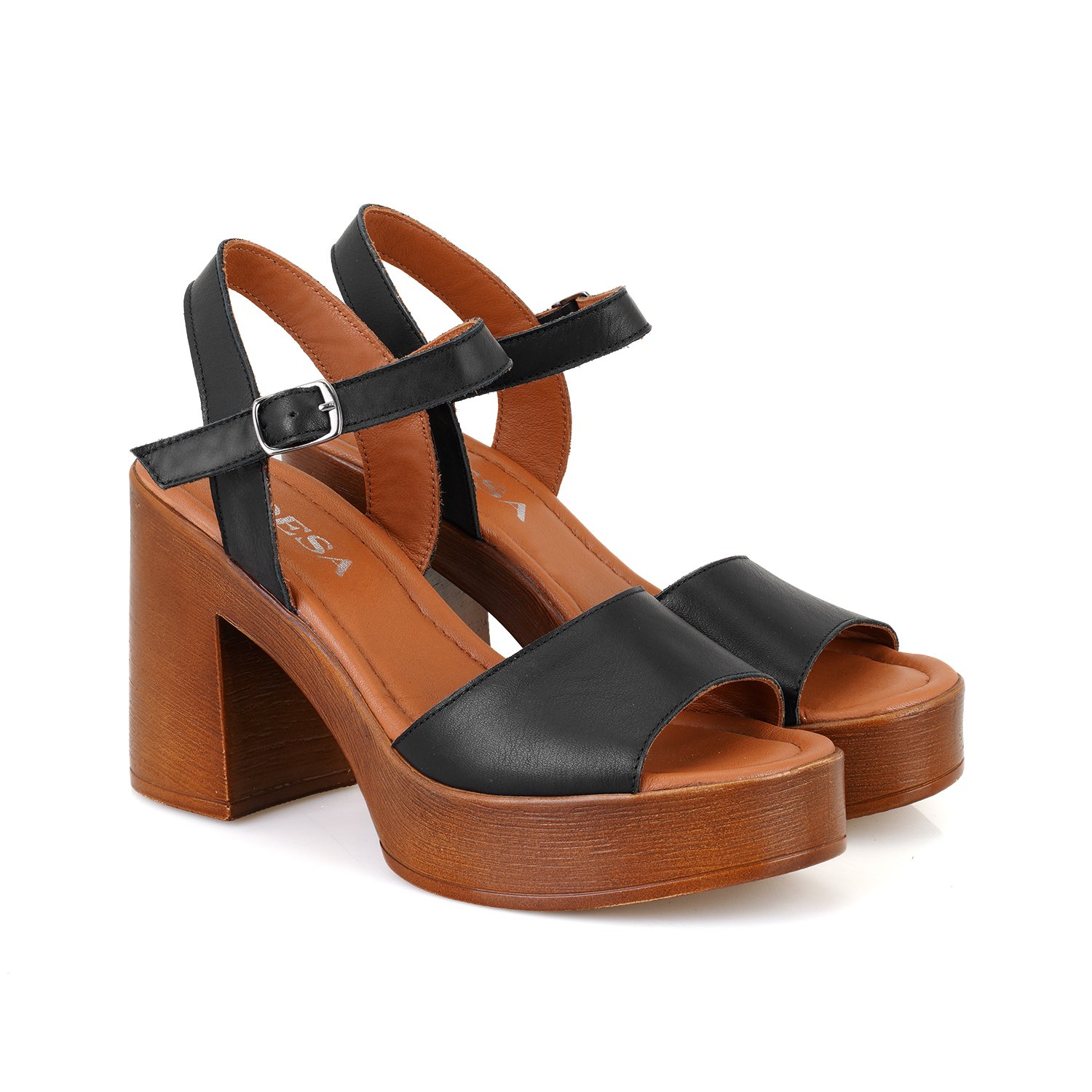 %100 deri, iç astarlı, mostra deri, poli taban, kadın topuklu deri sandalet.