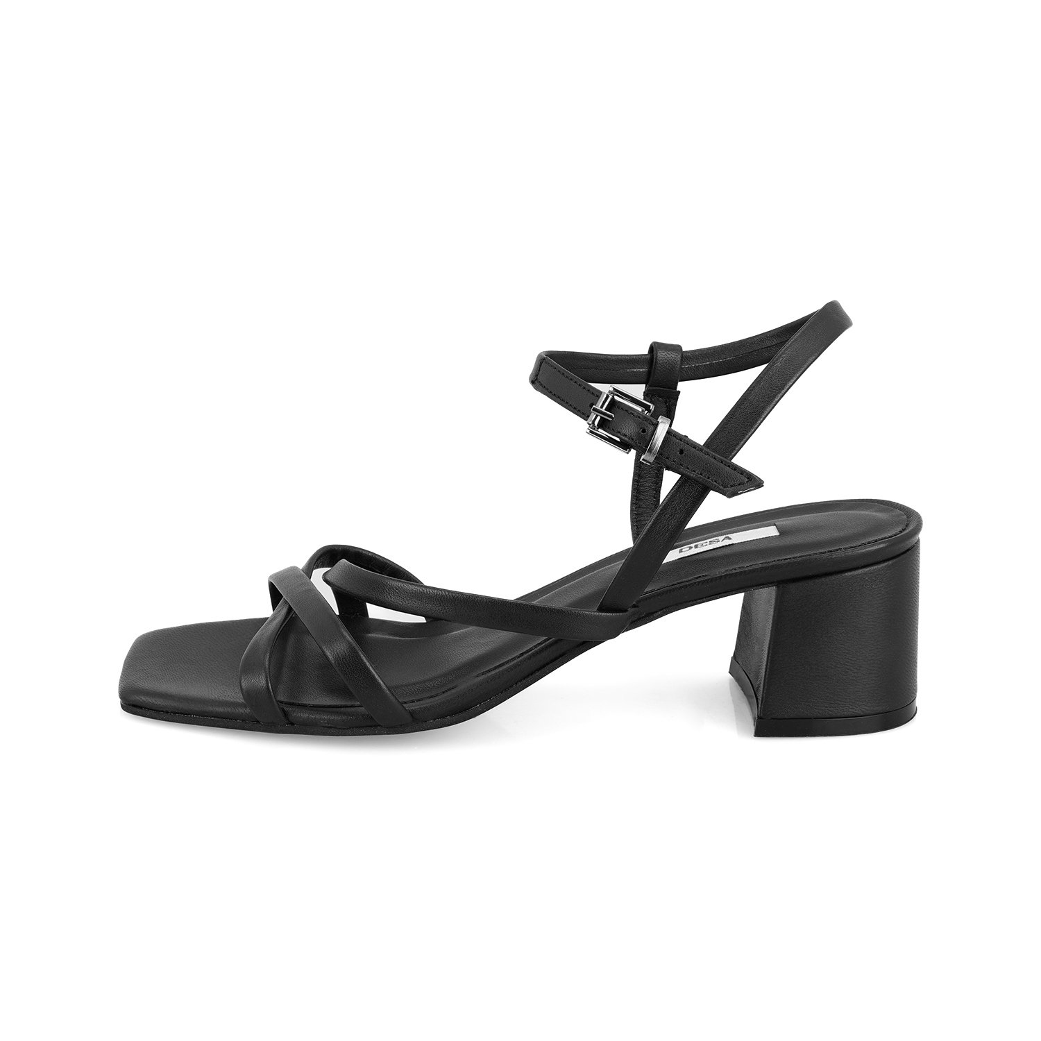 Kadın Siyah Ayarlanabilir Tokalı Topuklu Deri Sandalet