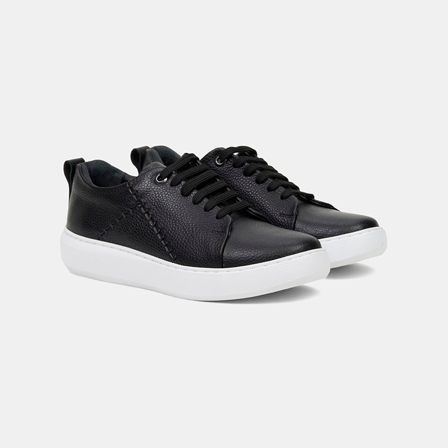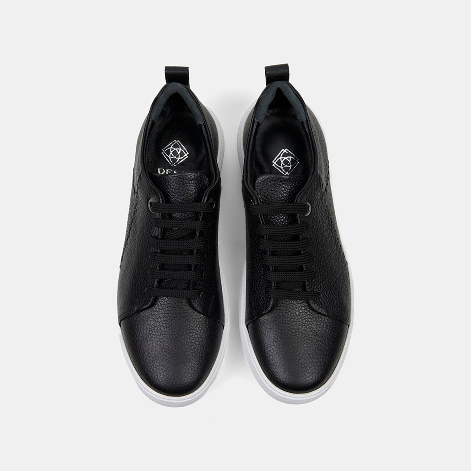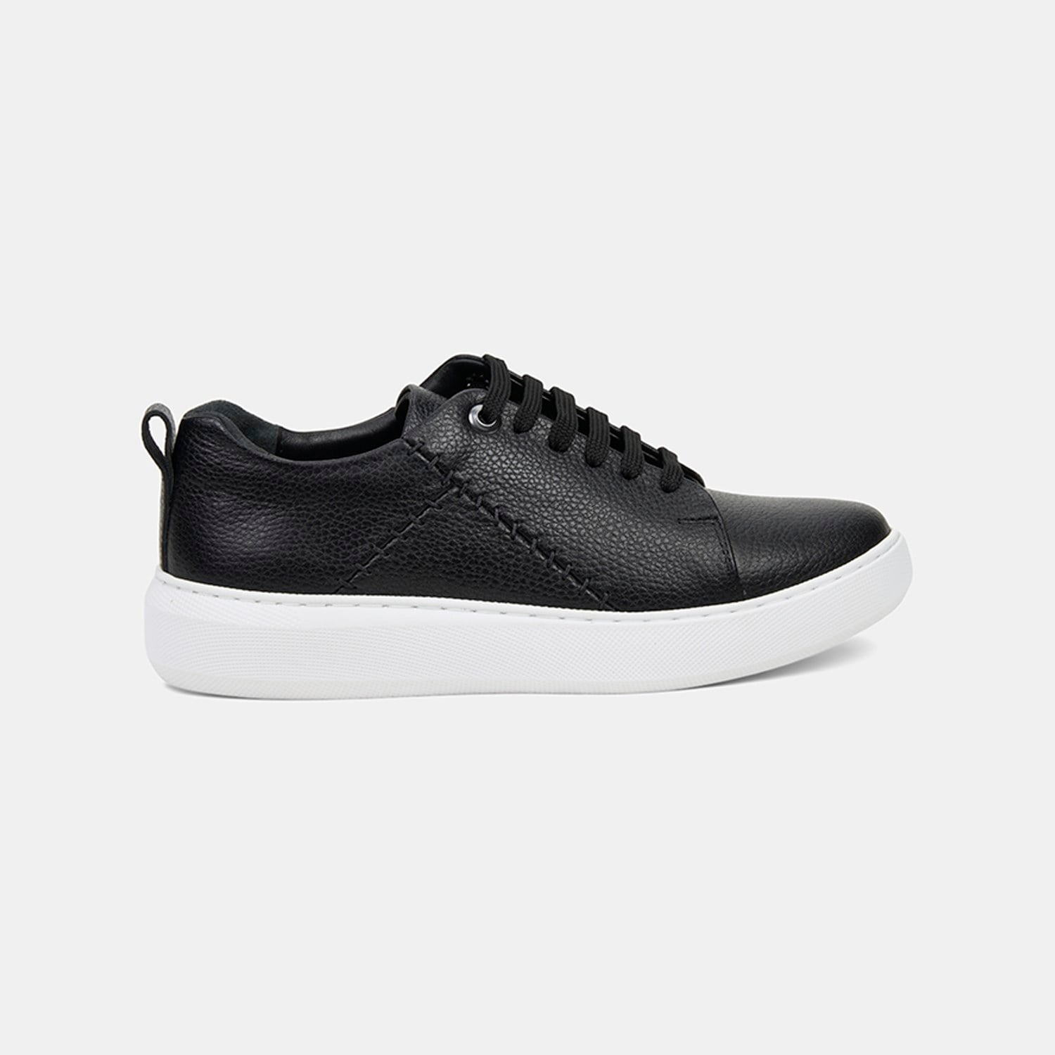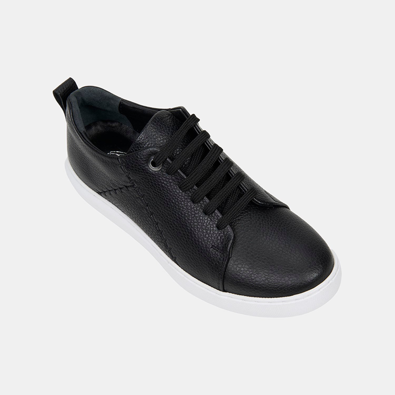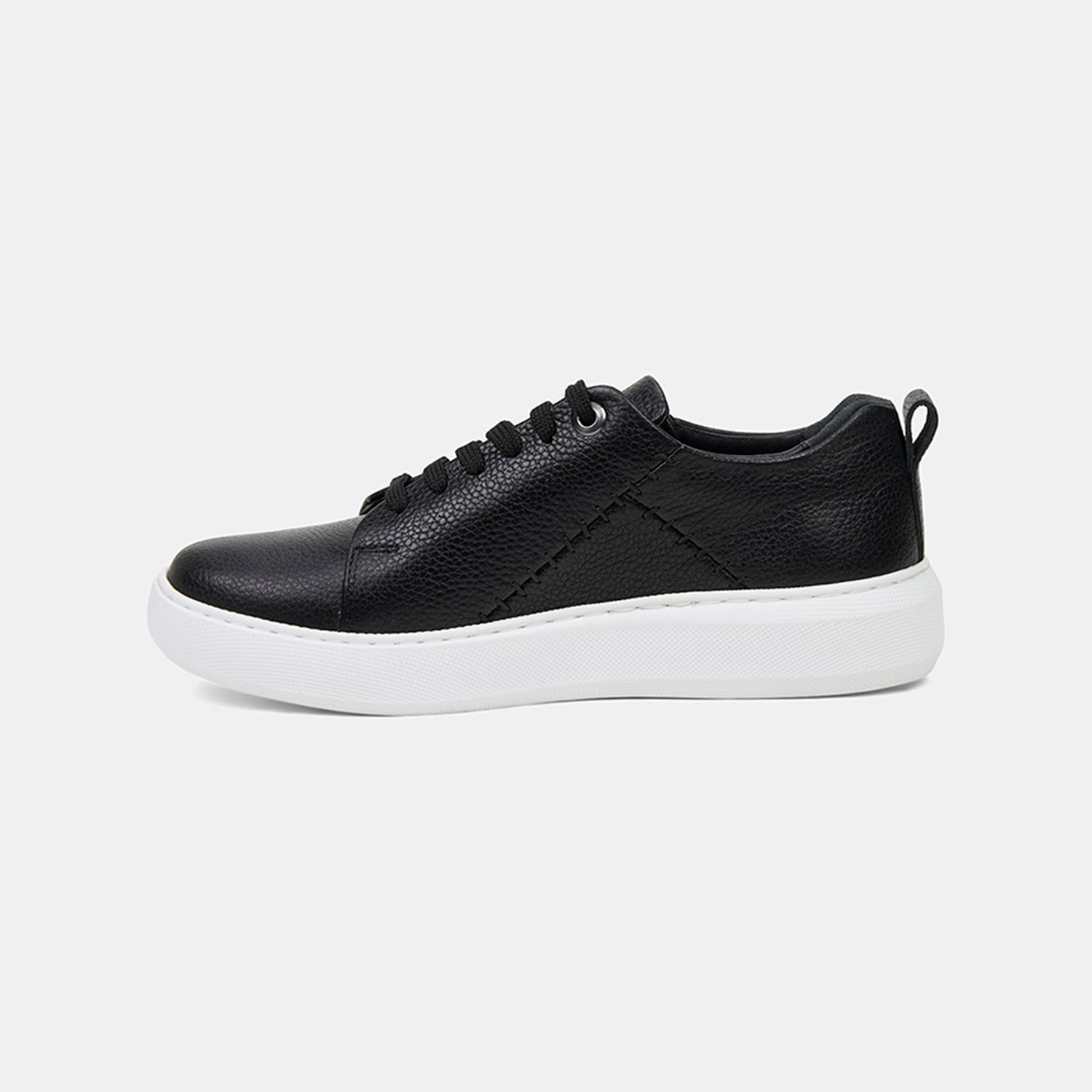 Kadın Siyah Bağcıklı Dikiş Detaylı Dokulu Deri Spor Ayakkabı