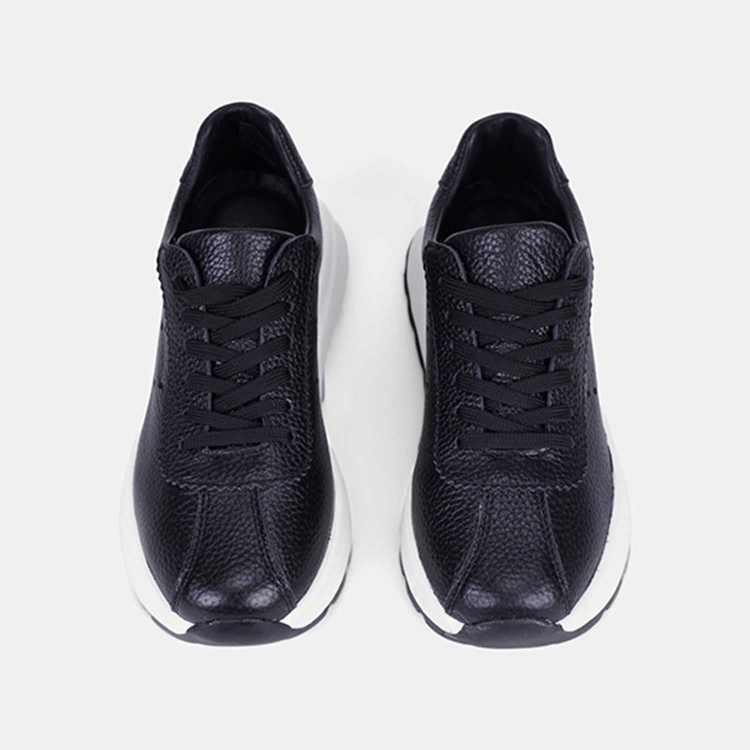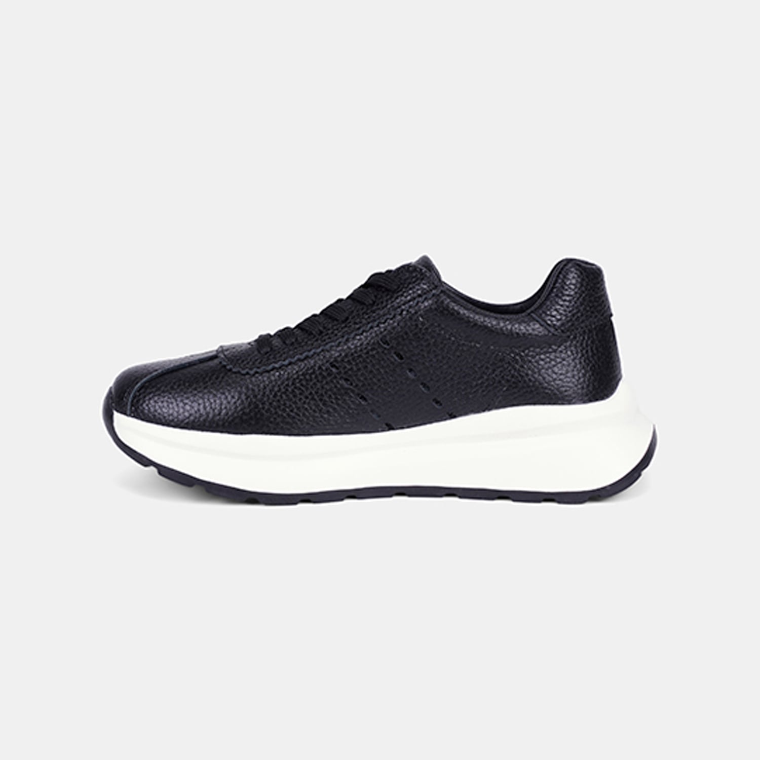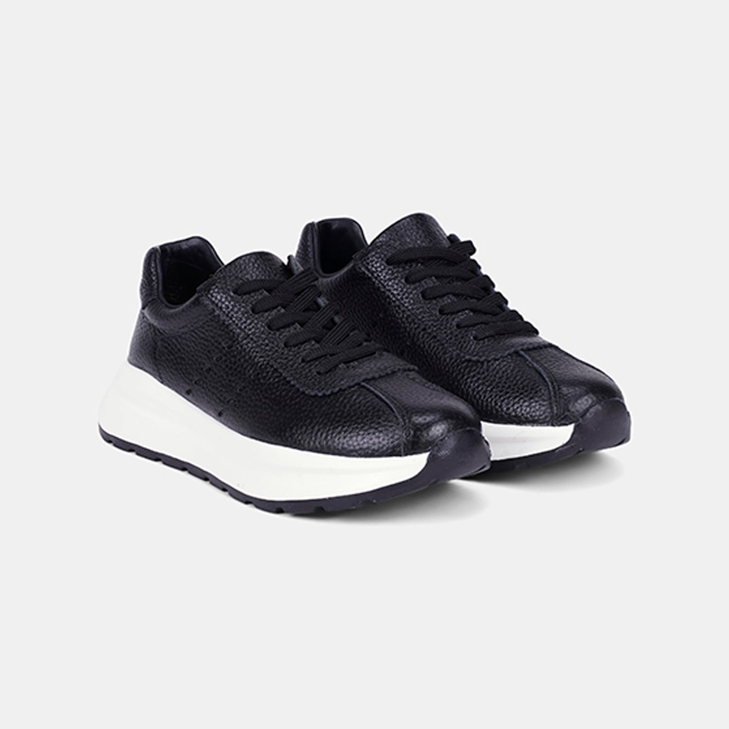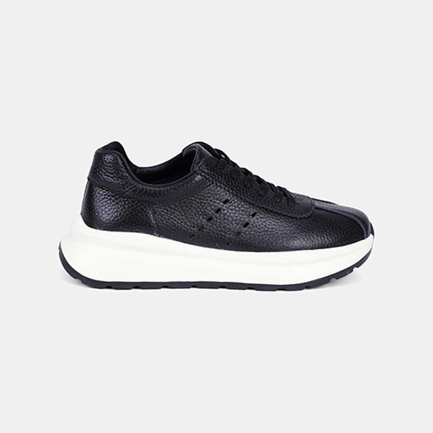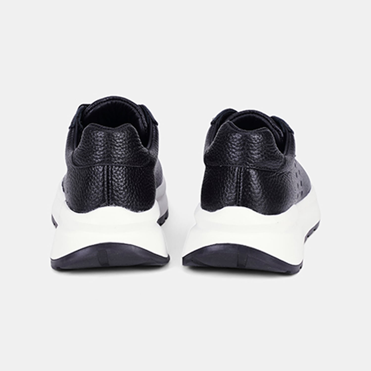 Kadın Siyah Bağcıklı Kalın Tabanlı Deri Sneaker