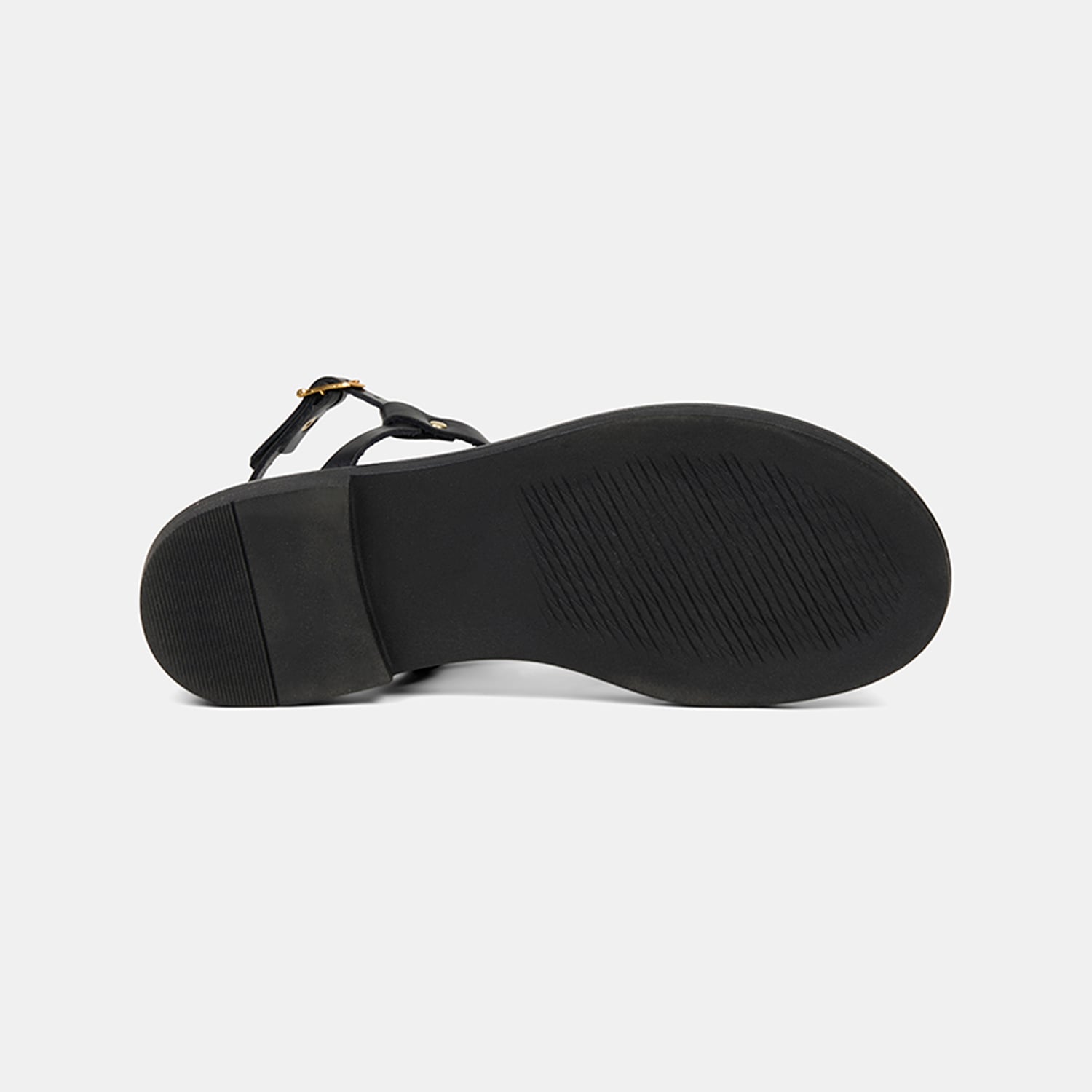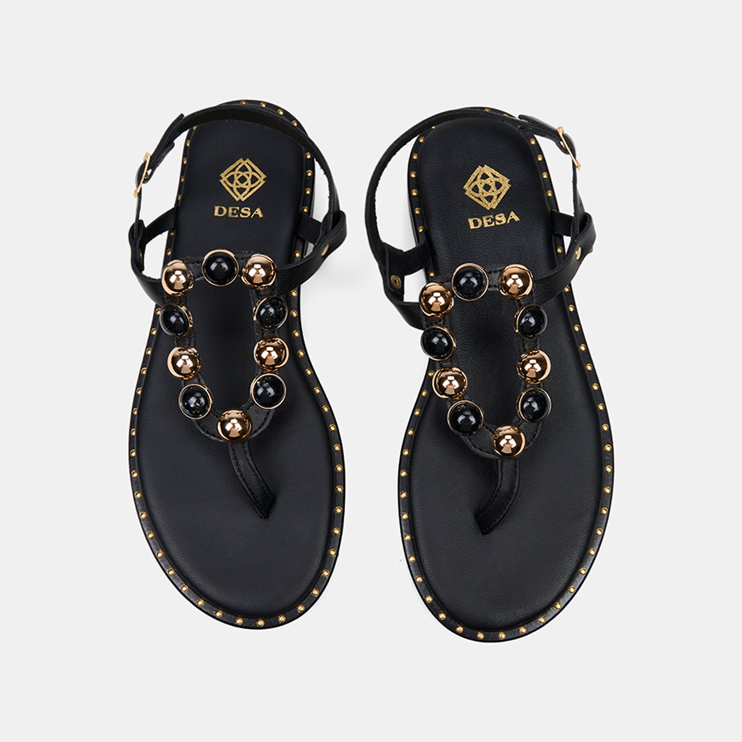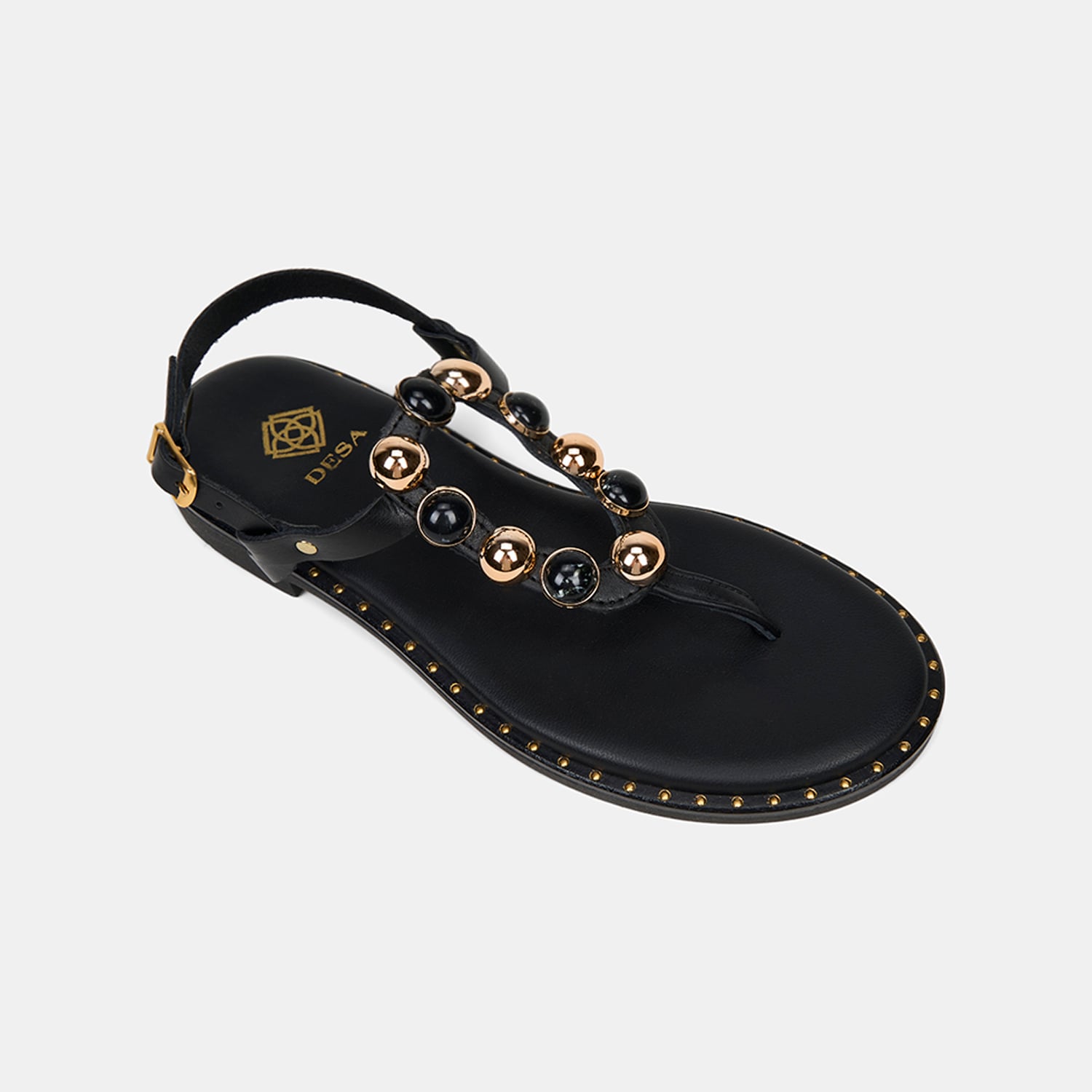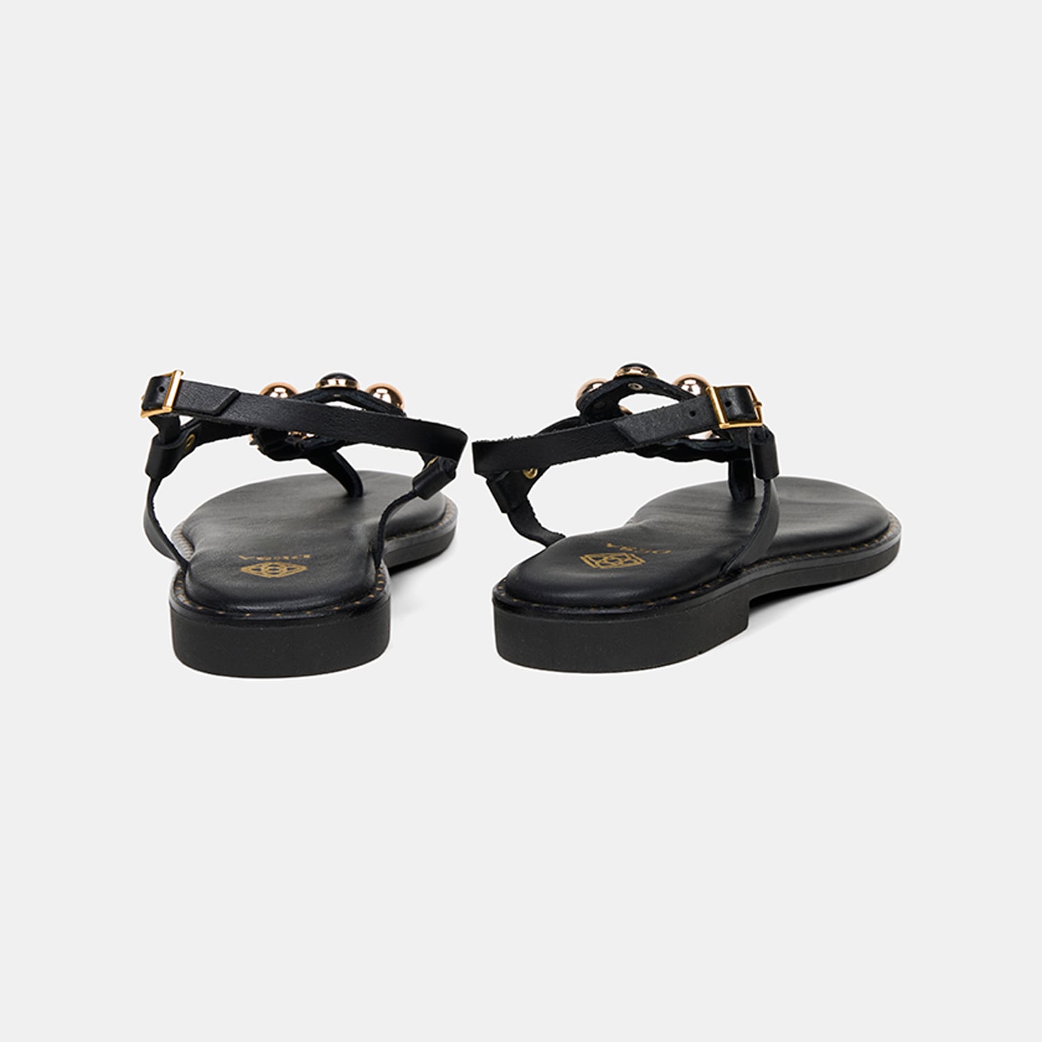 Kadın Siyah Boncuk Aksesuarlı Parmak Arası Deri Sandalet
