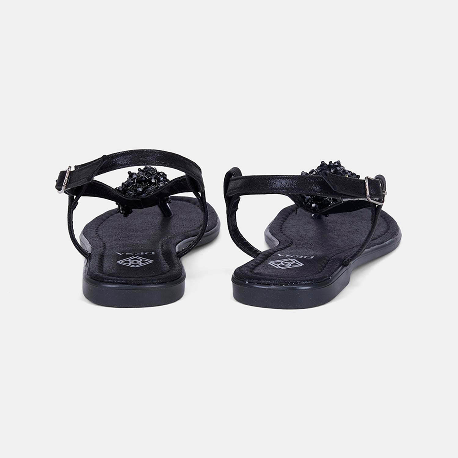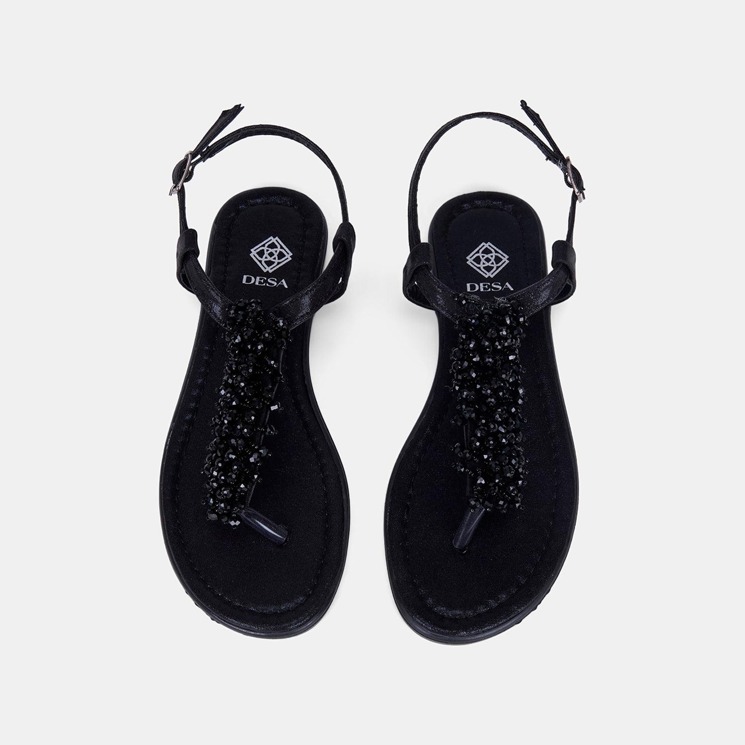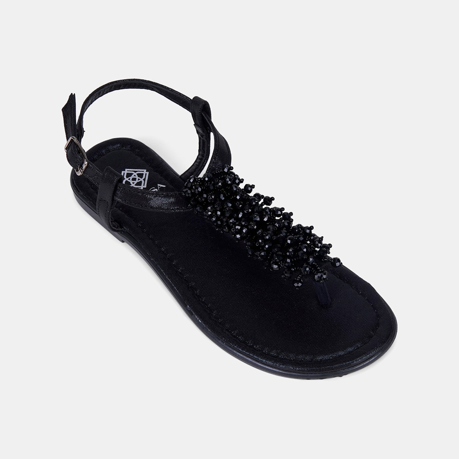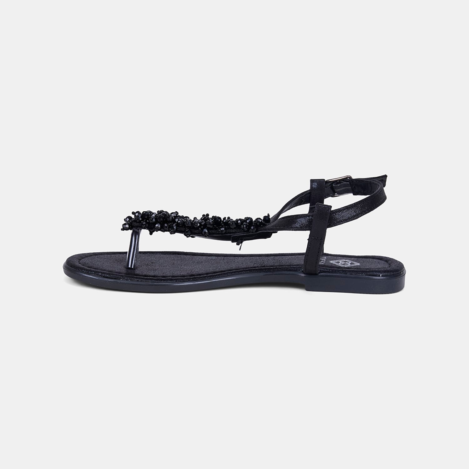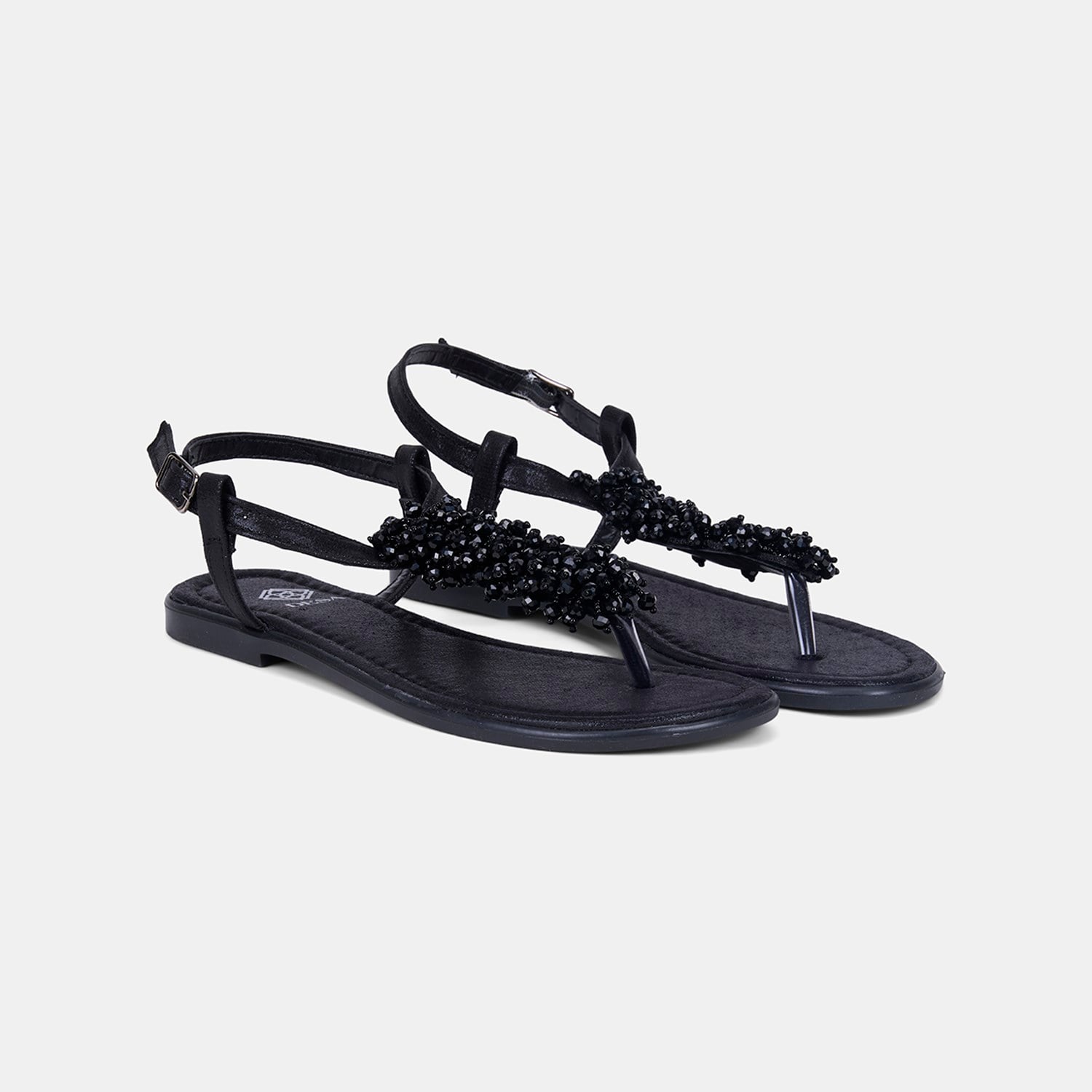 Kadın Siyah Boncuk İşlemeli Parmak Arası Sandalet