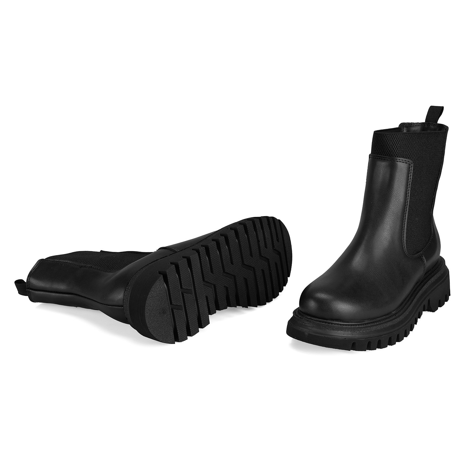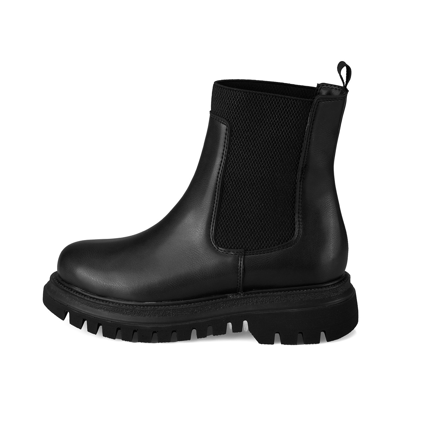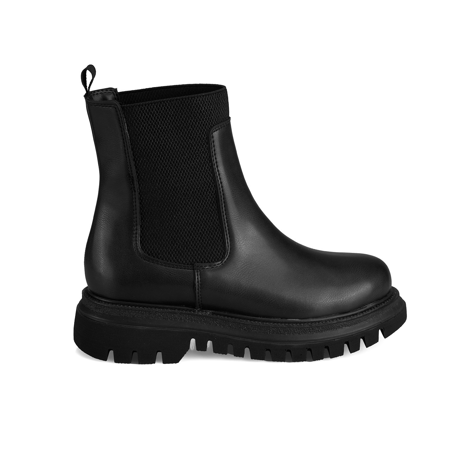 Pu materyalden üretilmiştir, tekstil astarlı, tekstil iç tabanlı, pu tabanlı, lastik detaylı, kadın chelsea bot.