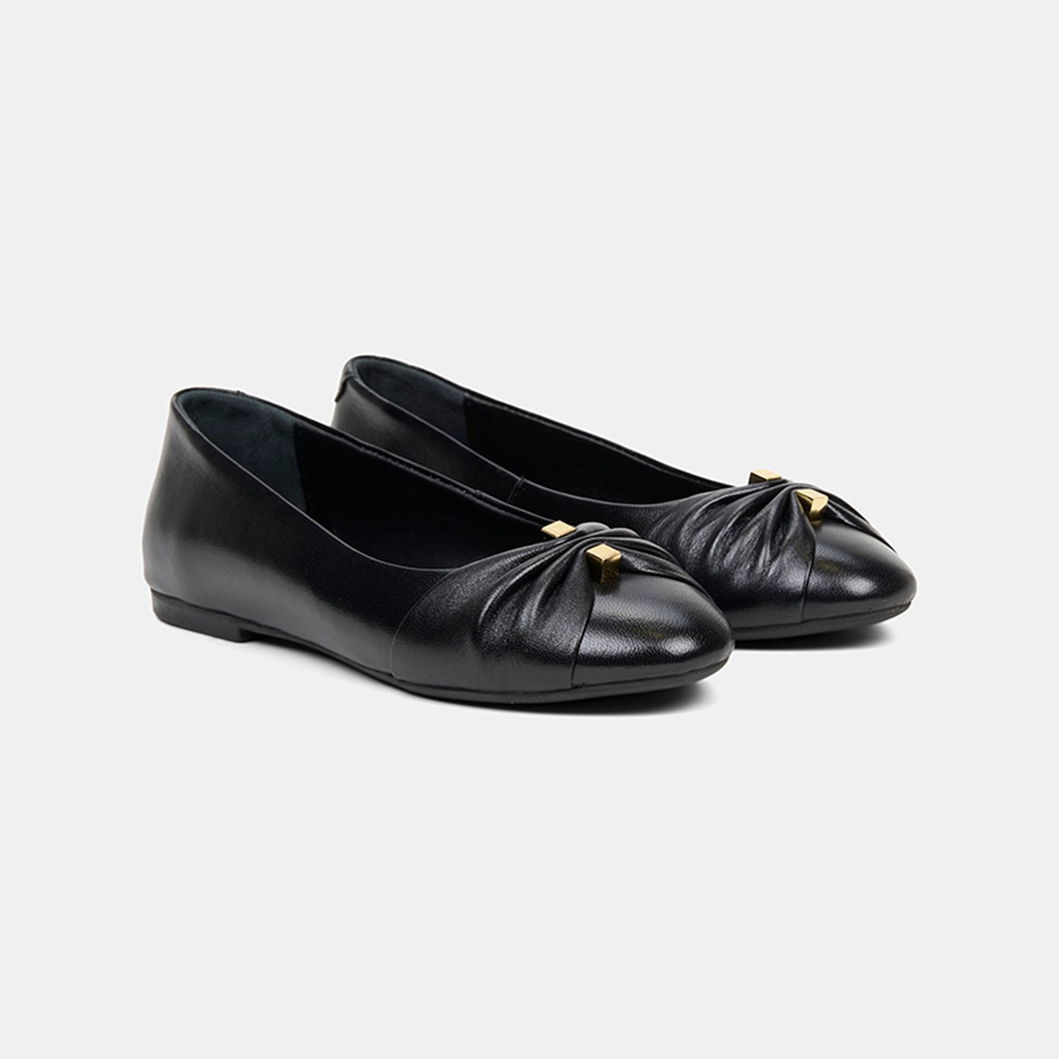 Kadın Siyah Büzgü Detaylı Deri Babet